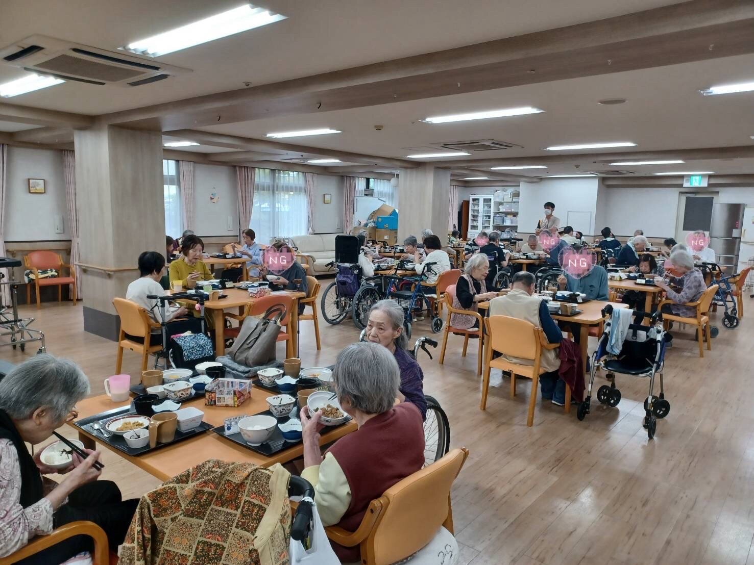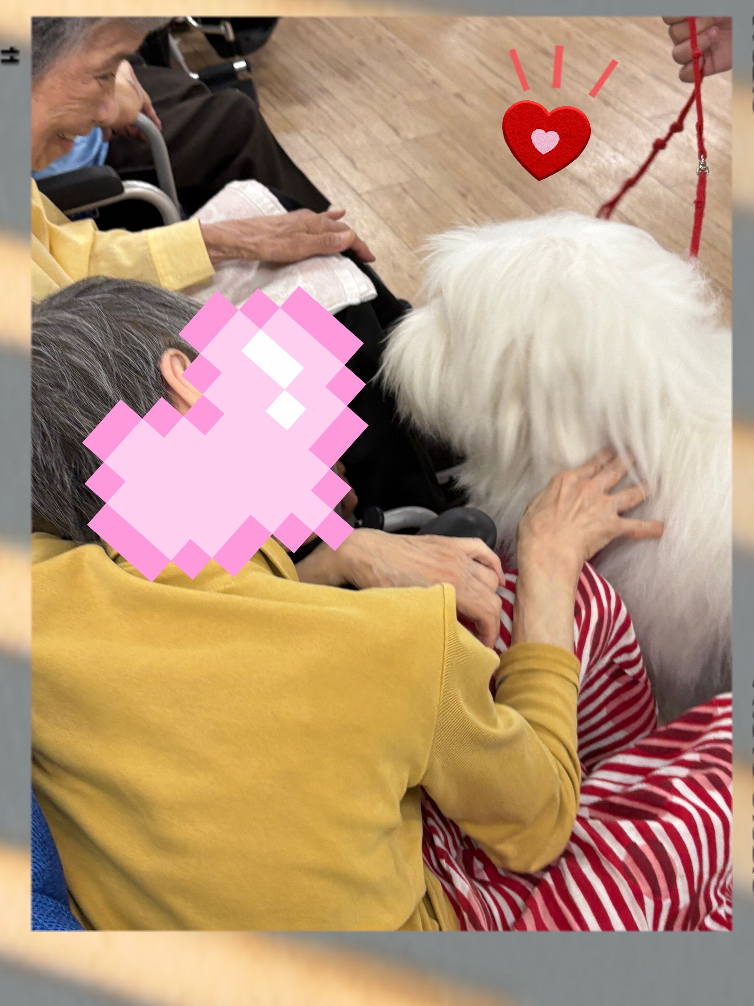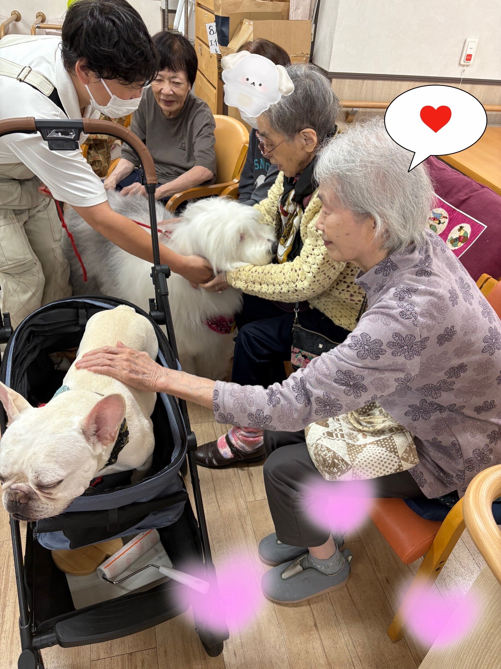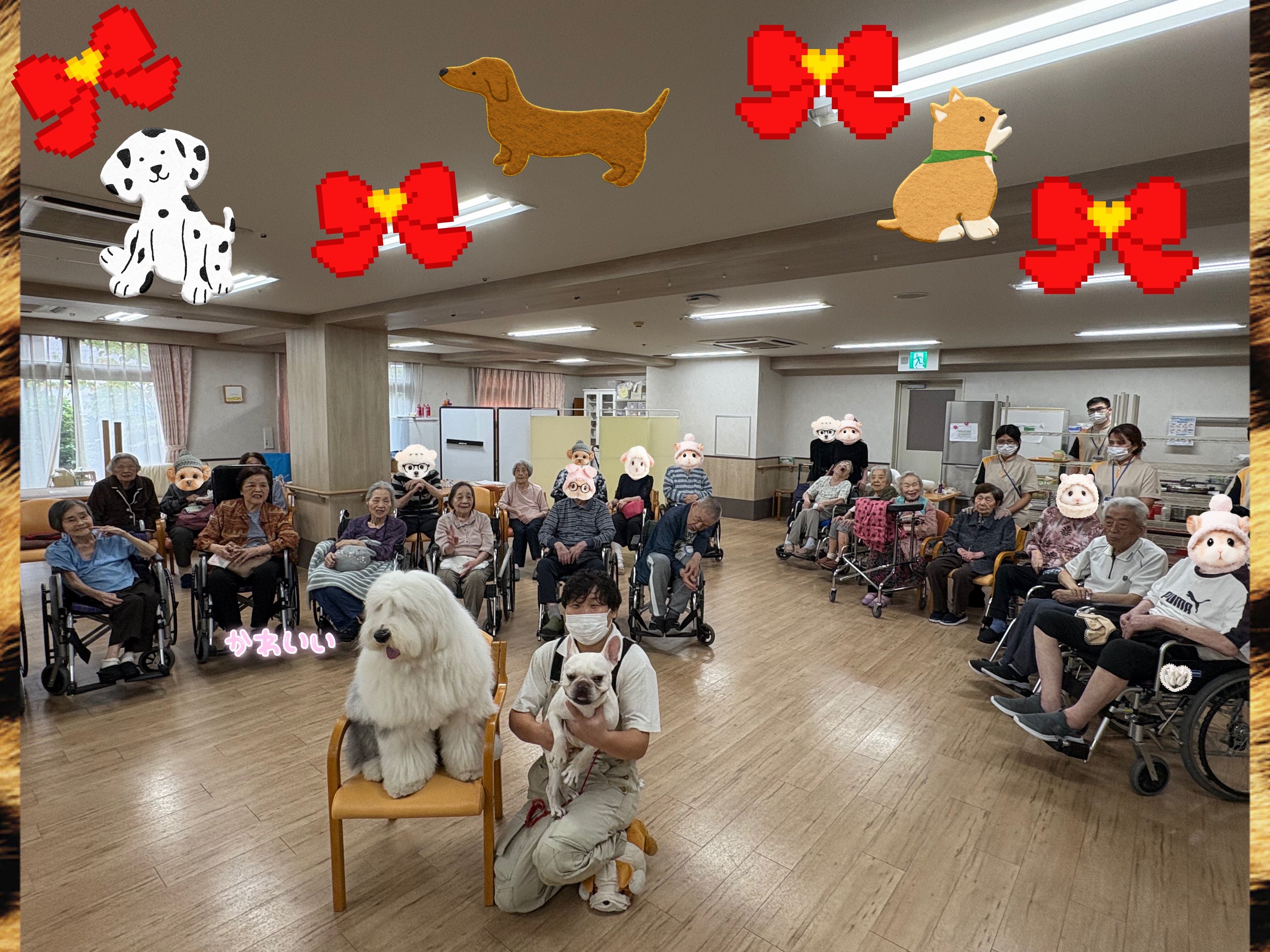 ご入居者のみなさんも職員も、わんちゃんたちの登場に自然と笑顔があふれました ෆ⸒⸒⸜( ˶'ᵕ'˶)⸝
