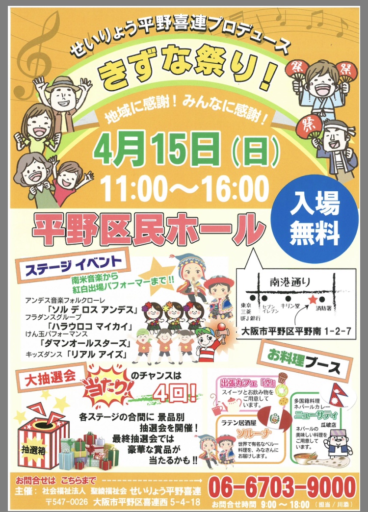 さて、去る4月15日に平野区民ホールにてせいりょ平野喜連きずな祭りが