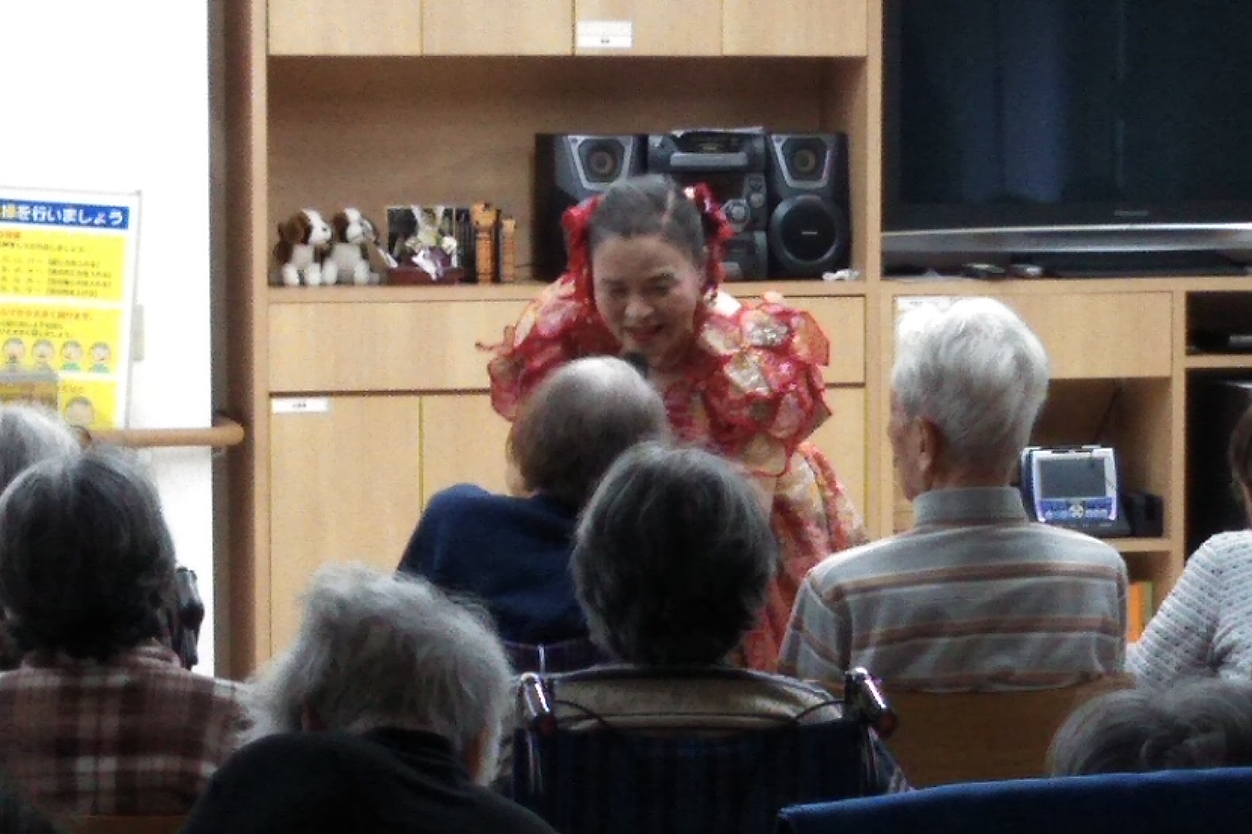 昭和の名曲を歌って頂き、それに合わせて入居者の方々も一緒に歌っておられたのがとても印象的でした。