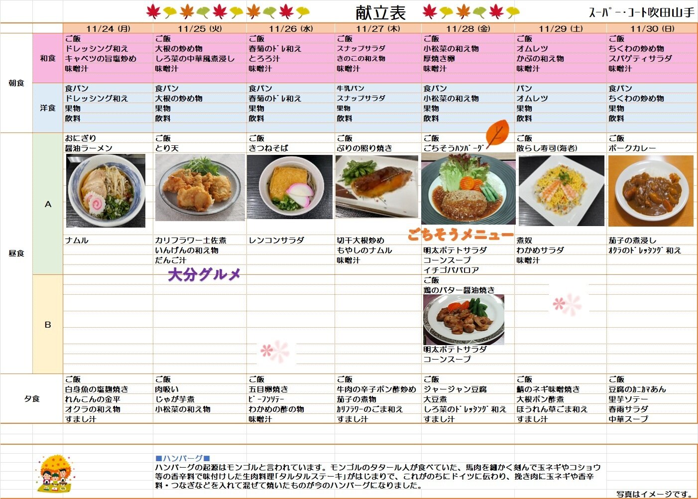 11月24日から11月30日の献立のお知らせです(*^_^*)