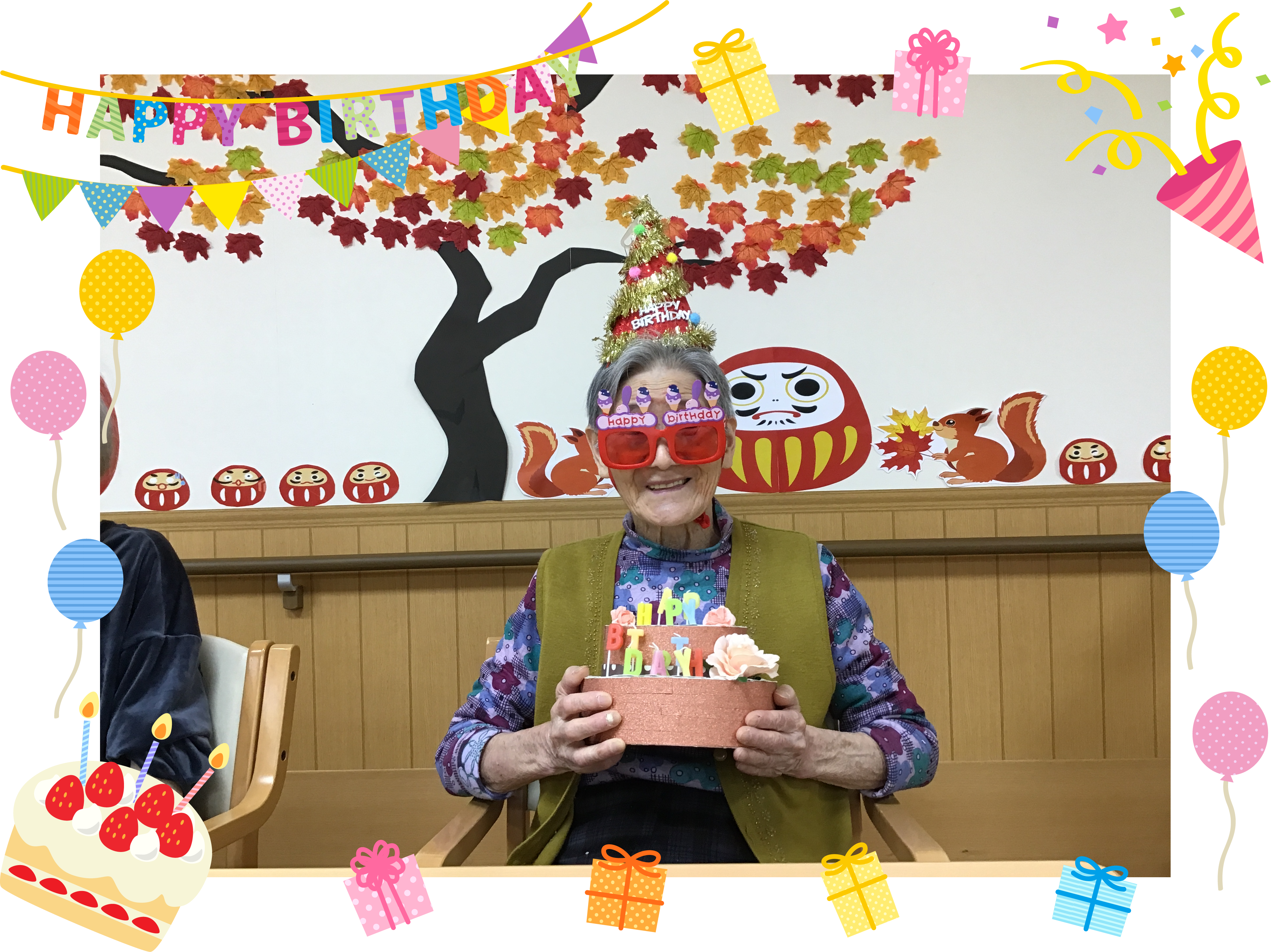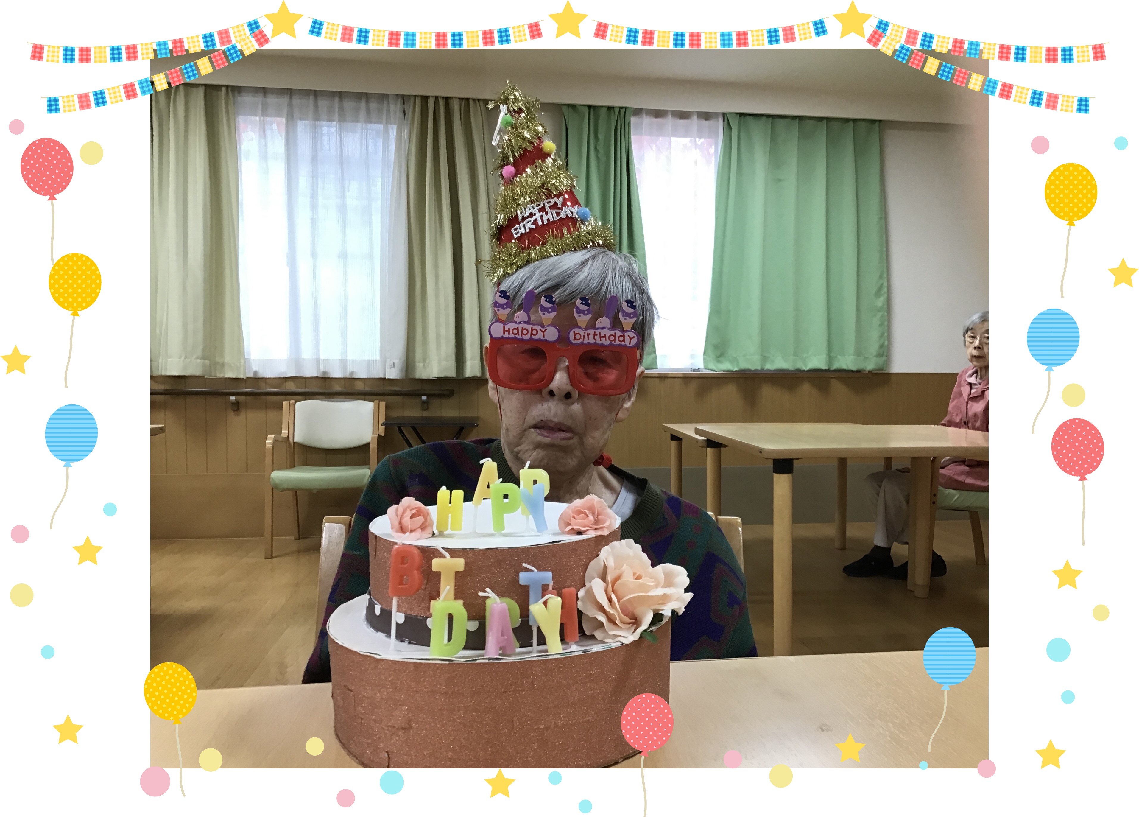 お誕生日の皆様には、ケーキと職員手作りのメッセージカードをお渡ししています。