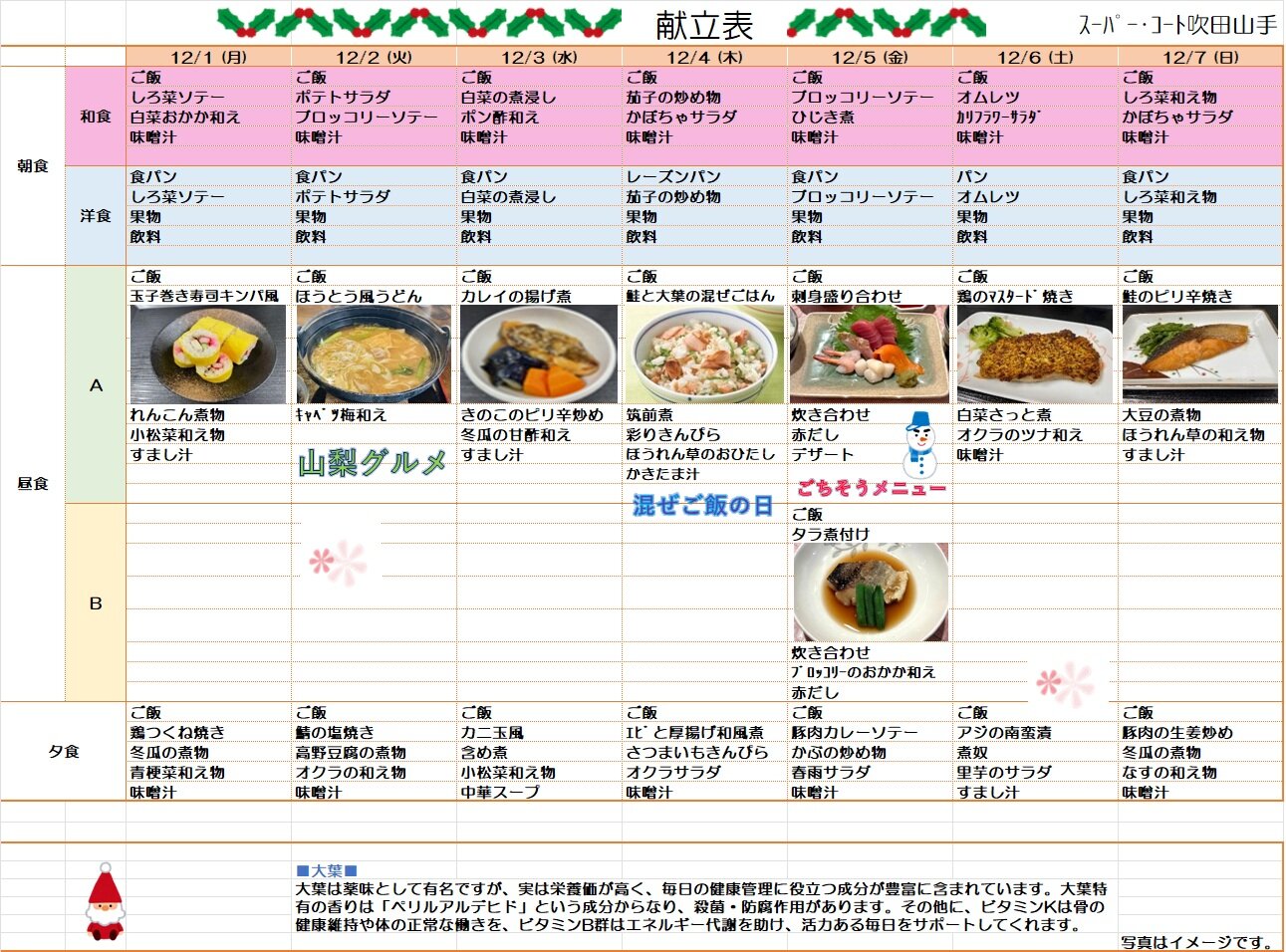 12月1日~12月7日の献立のお知らせです☆