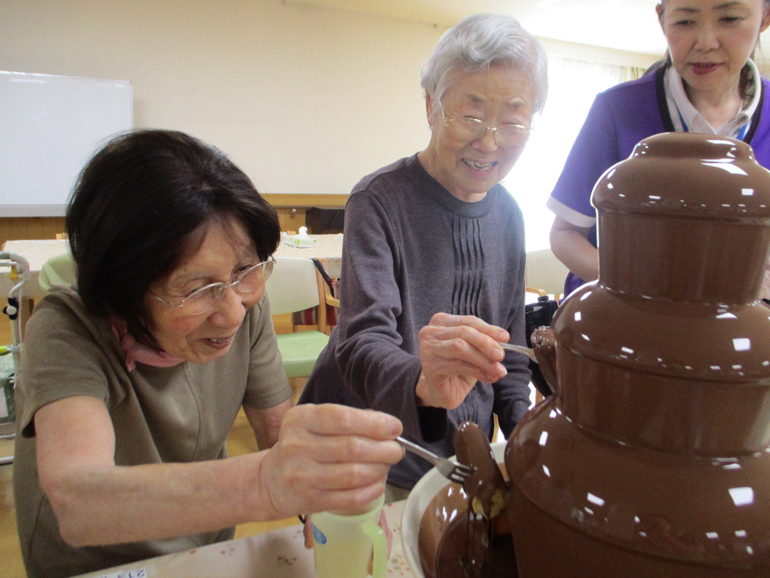 チョコレートフォンデュとは果物やお菓子をチョコレートに付けて食べるおやつのことです!
