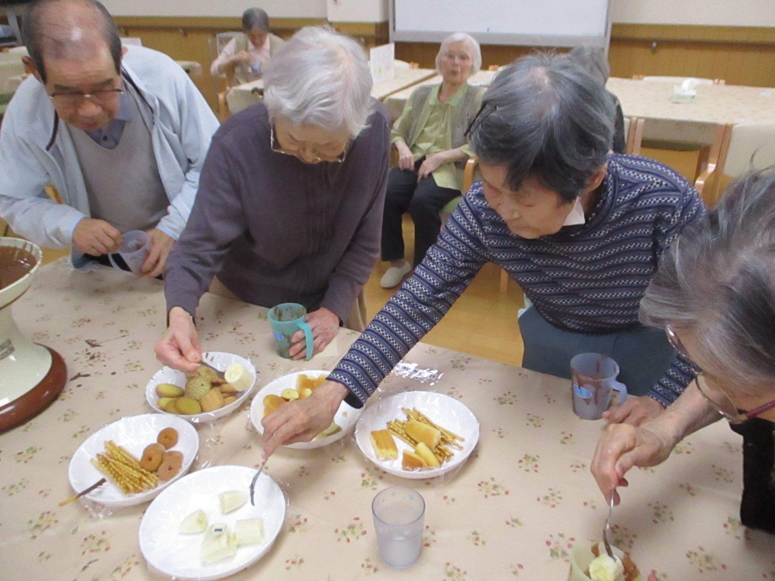 今回のレクでは、バナナ、マシュマロ、ポッキー、ビスケット、ドーナツなど多彩です。