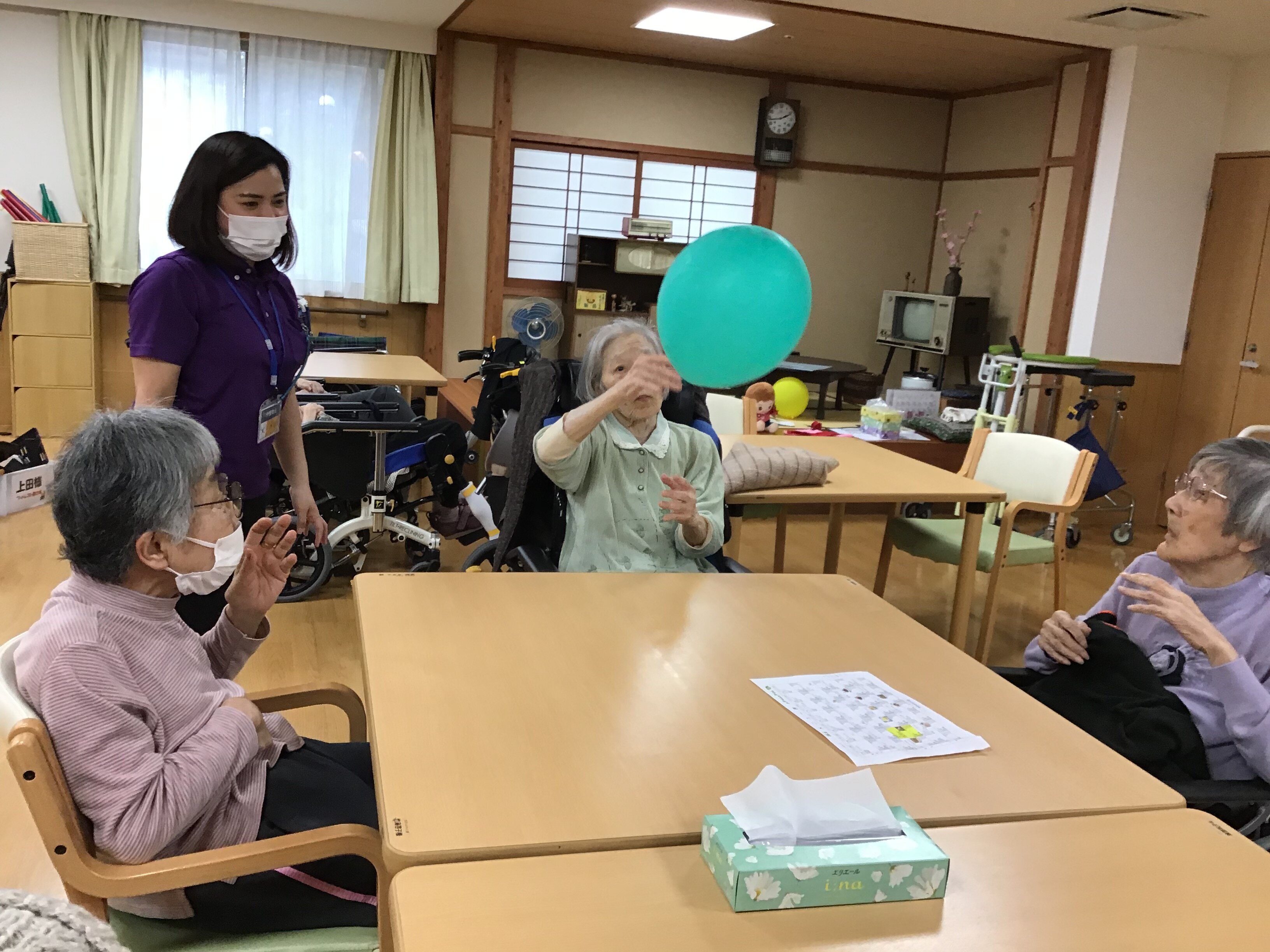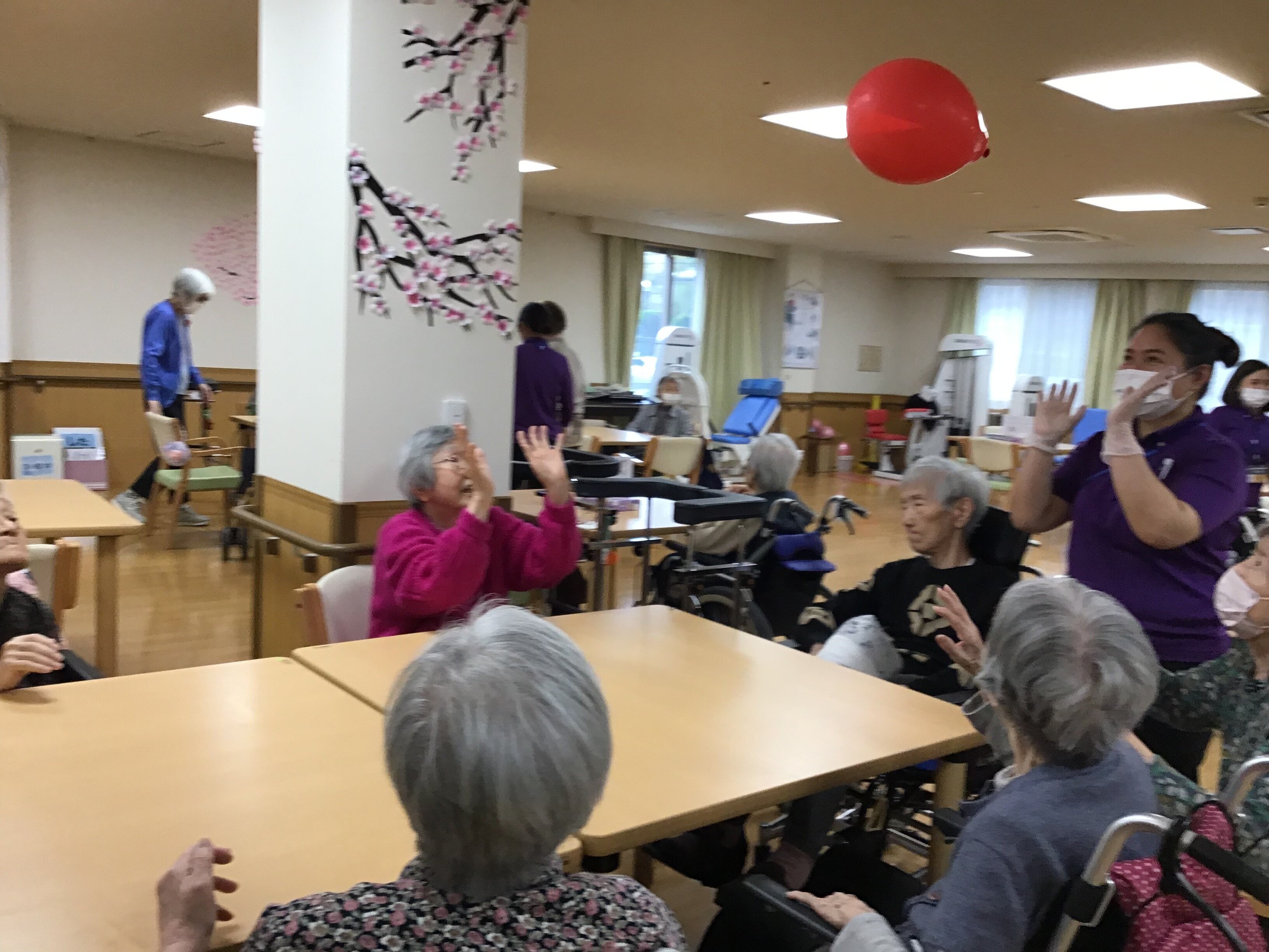 本日は元気いっぱい風船バレーのご様子をお伝えさせて頂きます(*'▽')