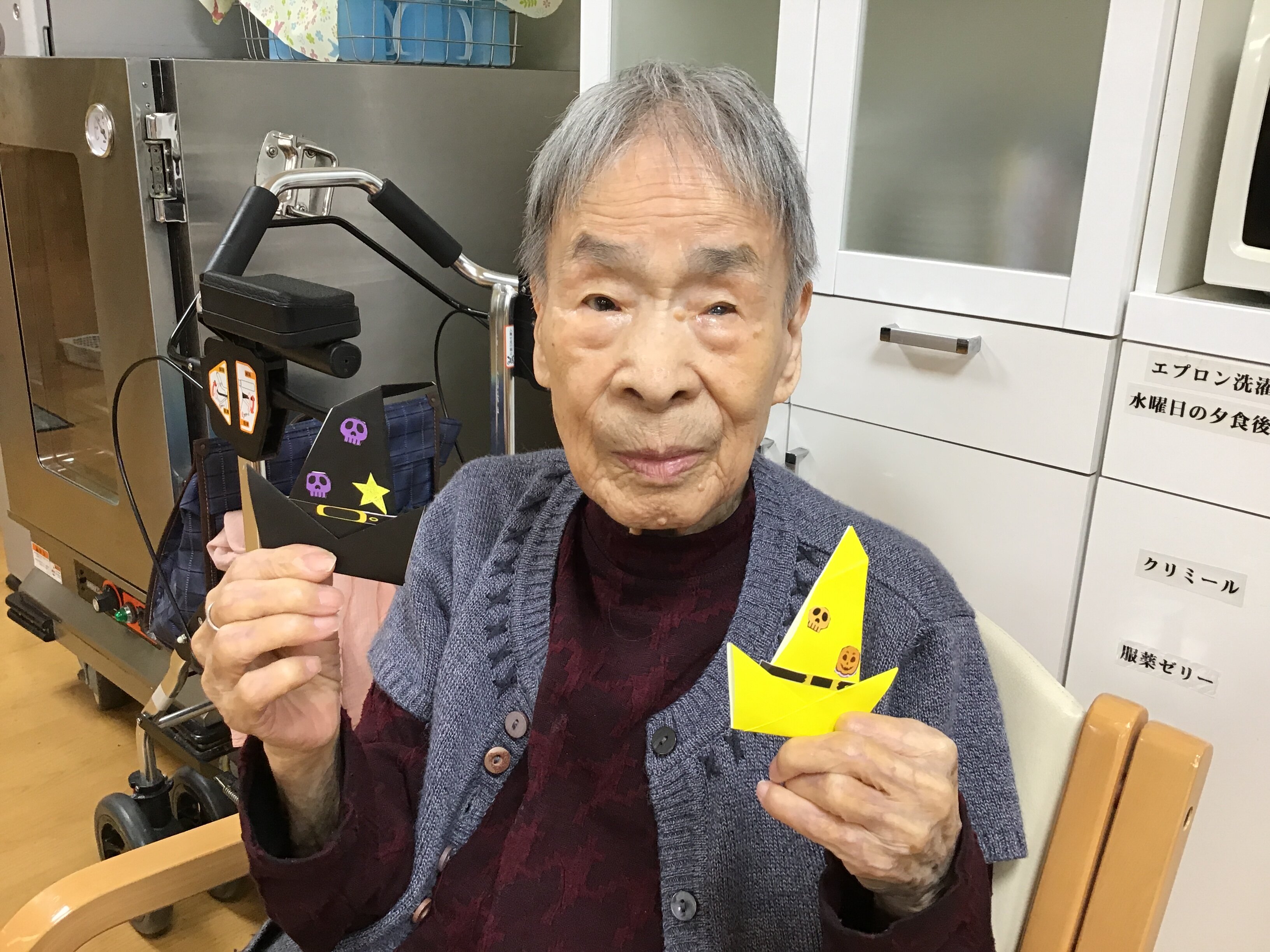 さらに、折り紙レクで魔女の帽子を作成しました!