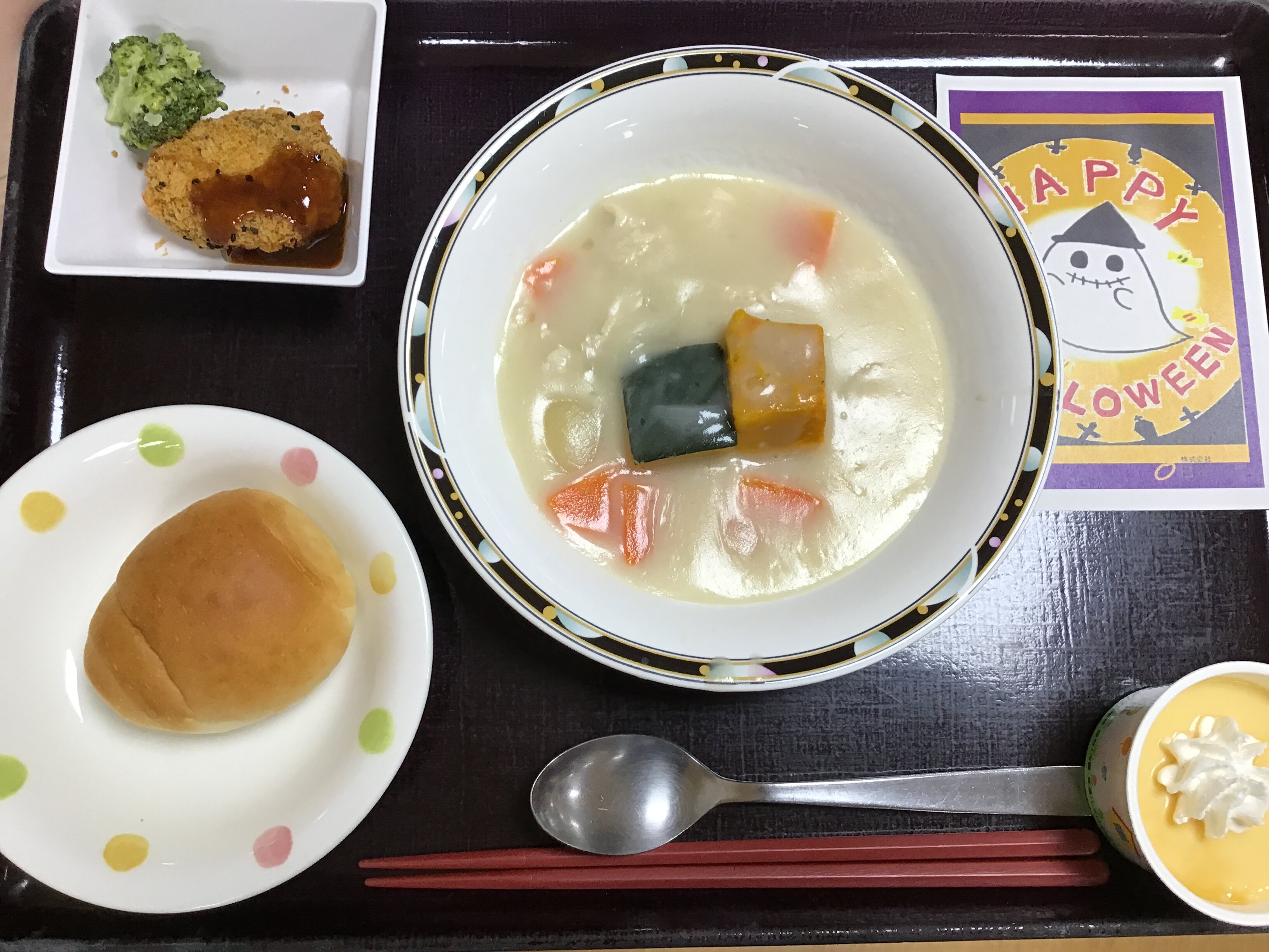 本日はハロウィンということで、昼食はカボチャを主役としたメニューでした!