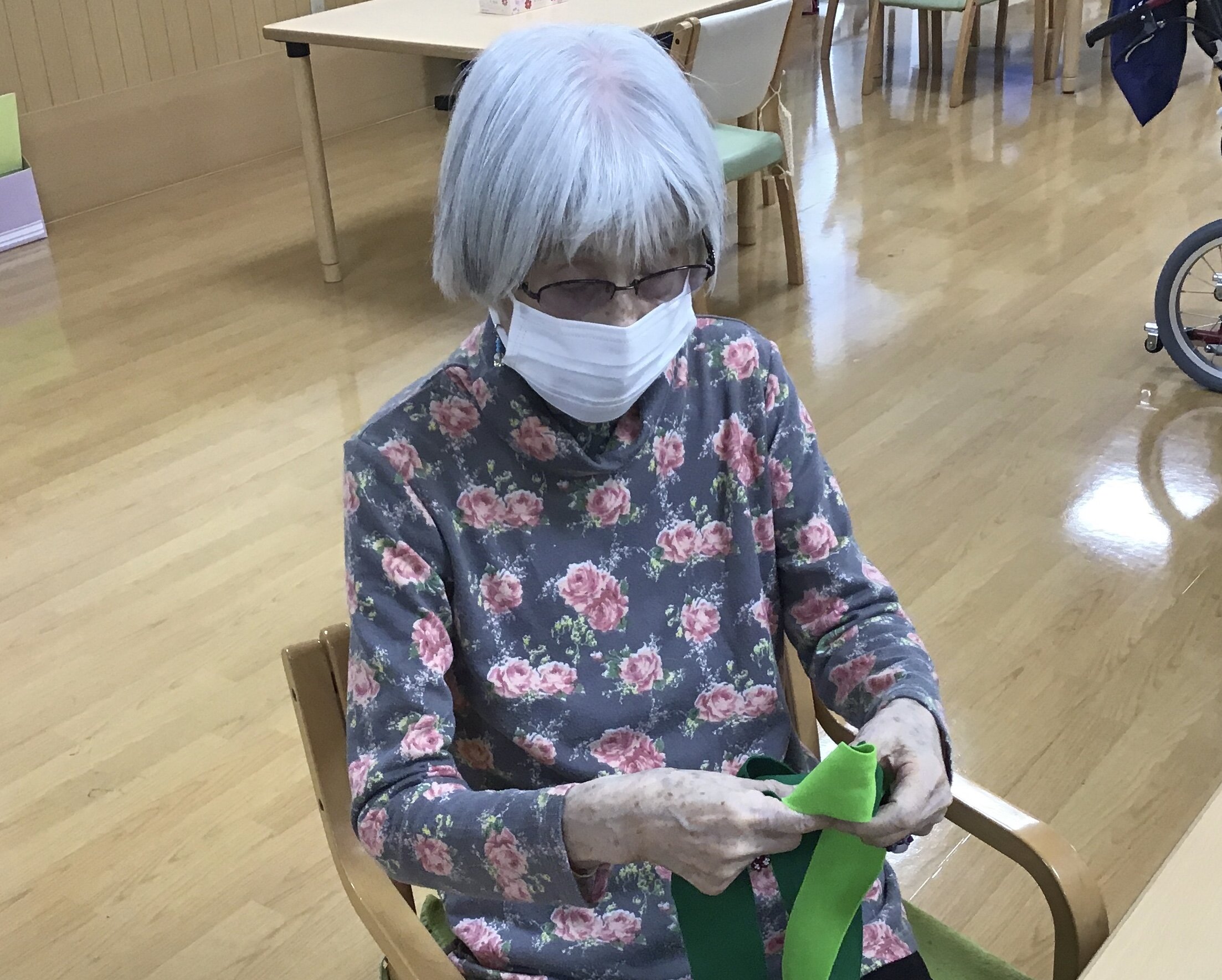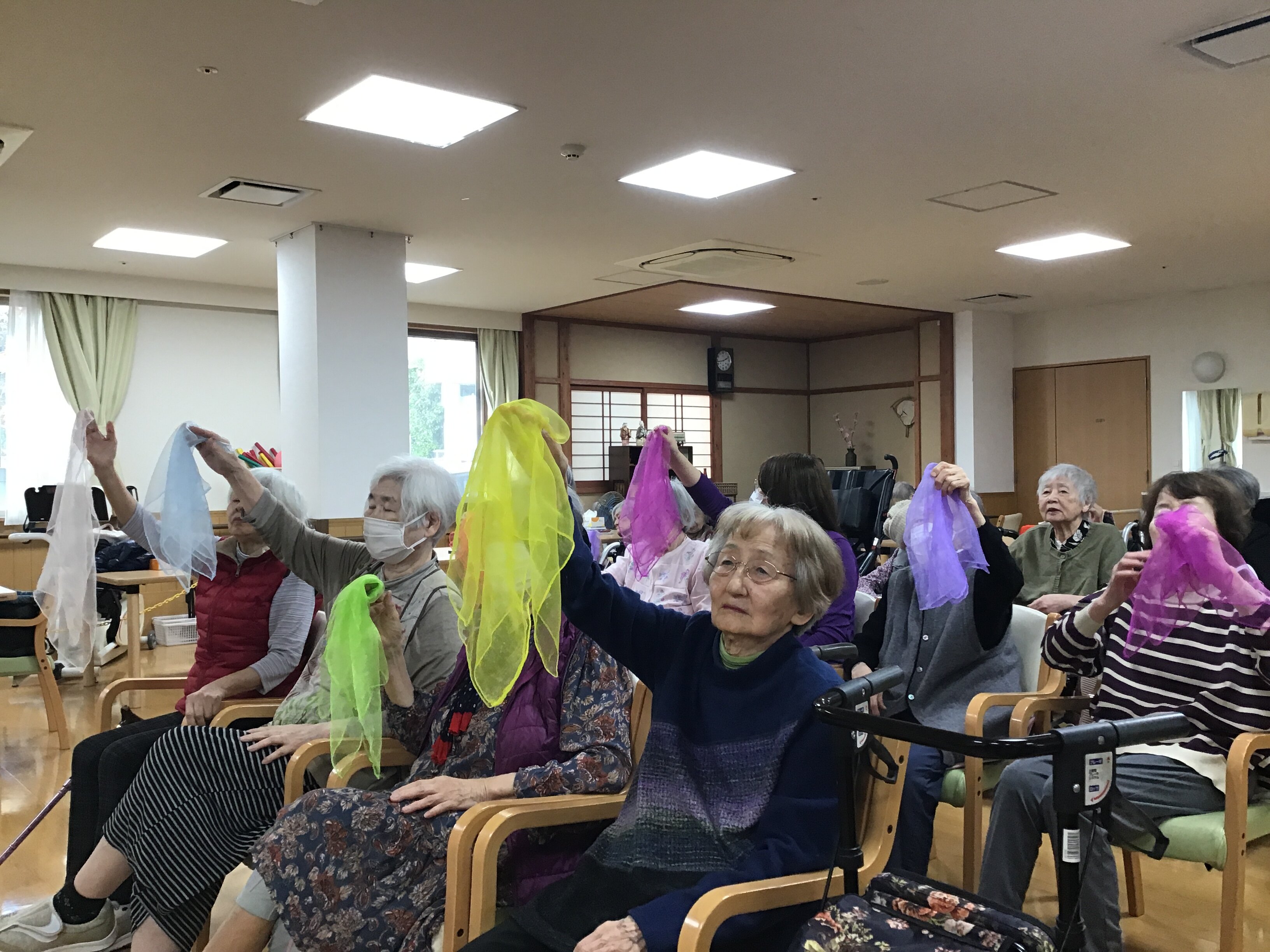 音楽に合わせて、カラフルな布をフリフリ( `ー´)ノ~~~