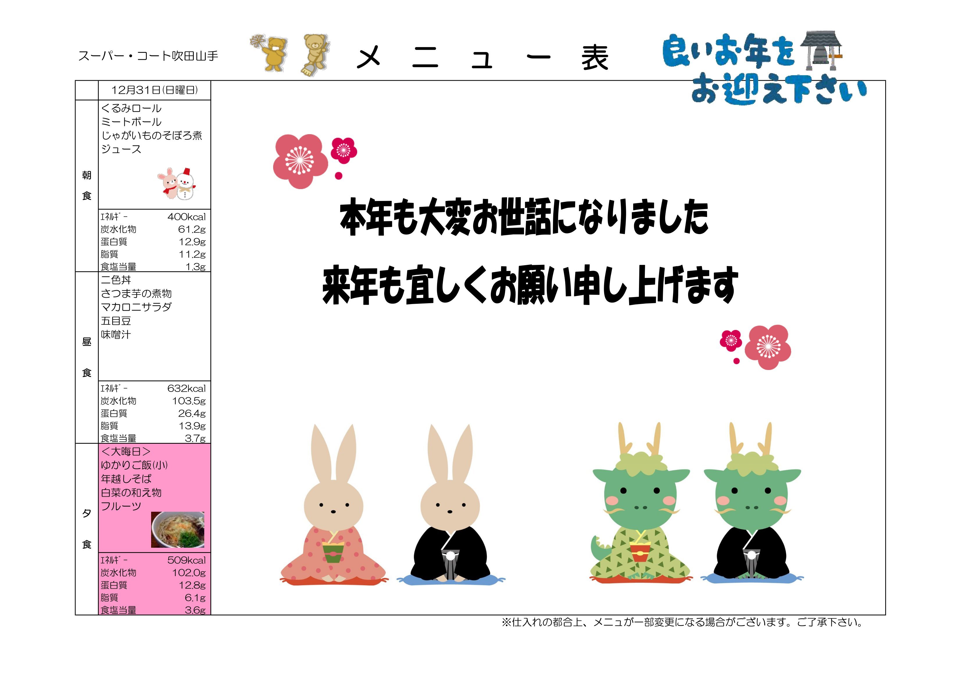 来年も皆様が健康に安心して過ごして頂けるよう、職員一同努めてまいります( `ー´)ノ