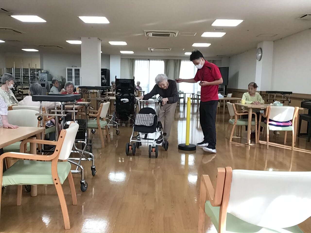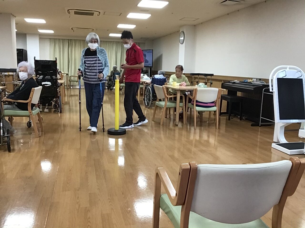 ご入居者の身体状況によって歩行器や杖を使用したり機能訓練指導員が手を支えて