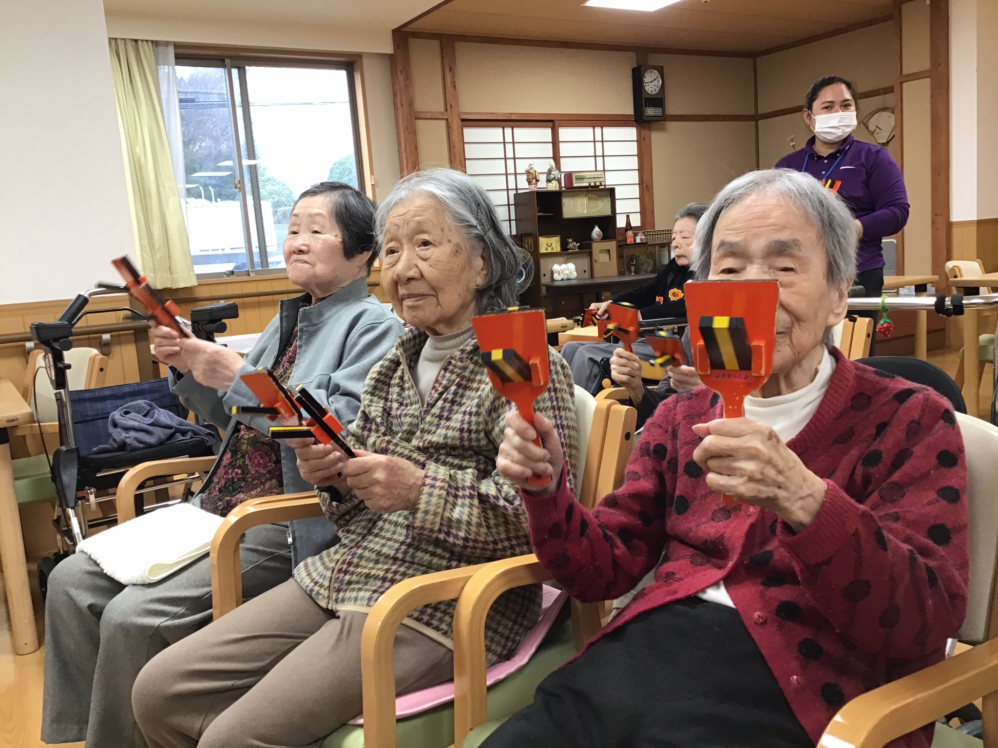 続いて「なるこ」を使って、楽しく手を動かしながら歌います('ω')ノ