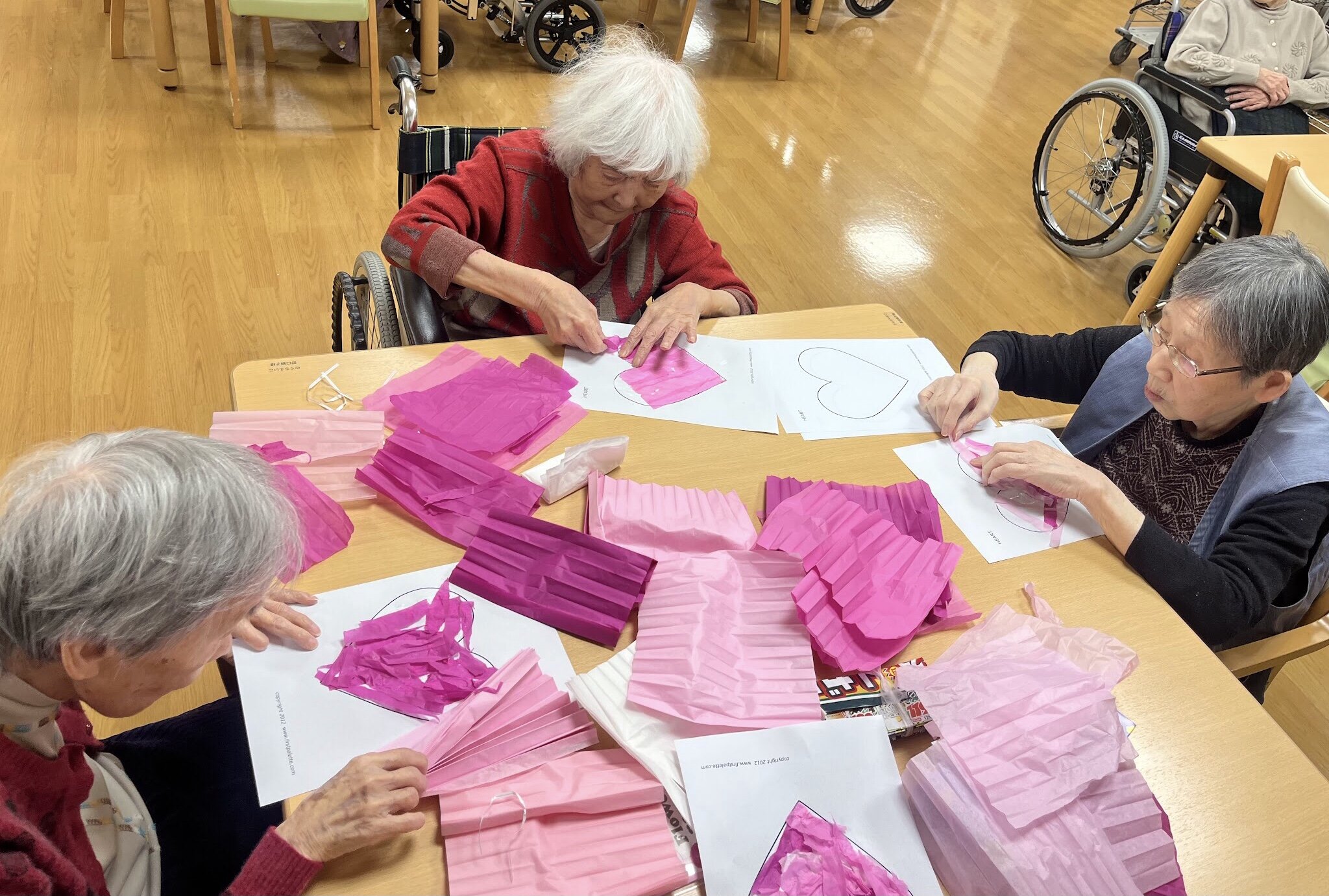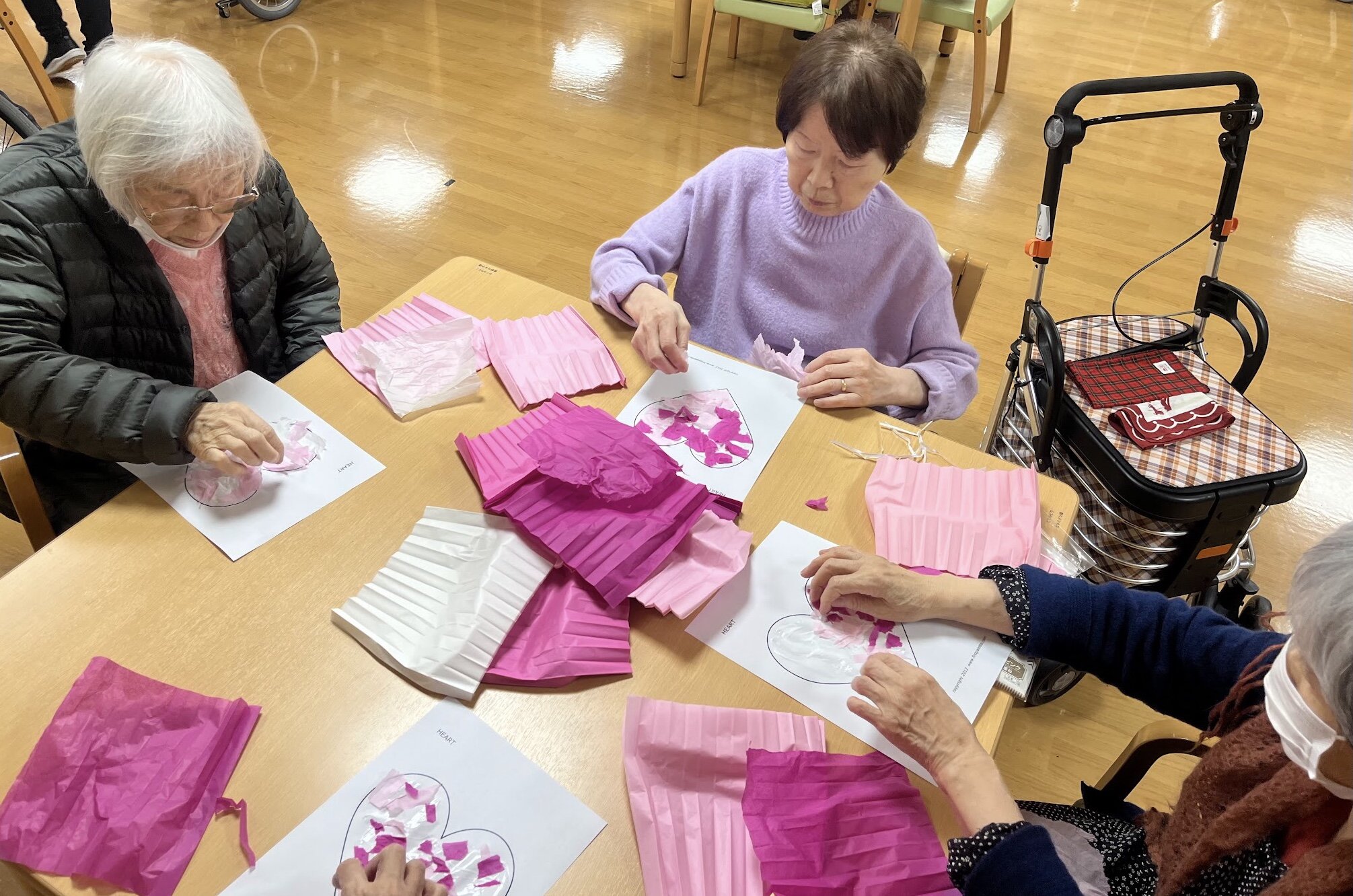 皆さんこんにちは!2月の作品作りは、バレンタインをテーマに、ハートの作品を作りました(^▽^)/