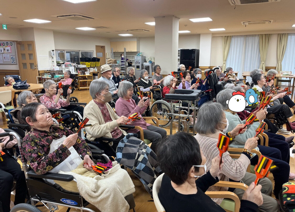 続いて鳴子を使ってリズムに乗りながら歌いますヾ(≧▽≦)ノ