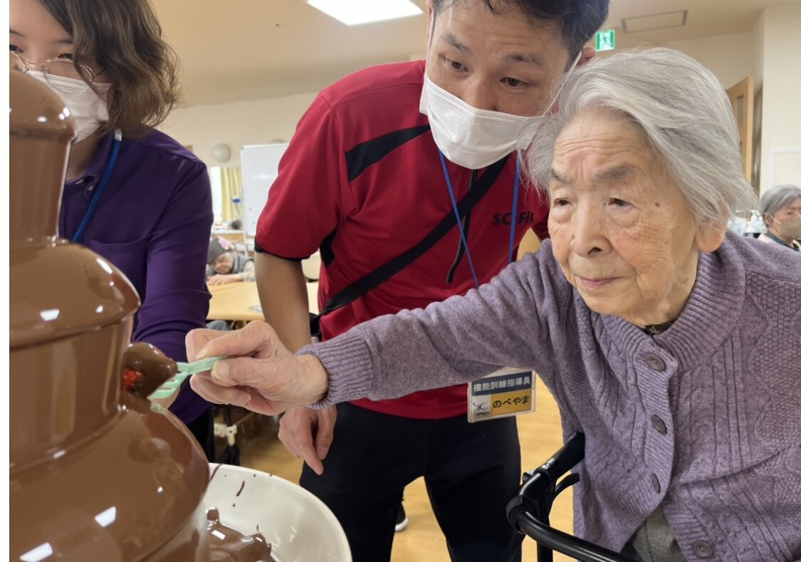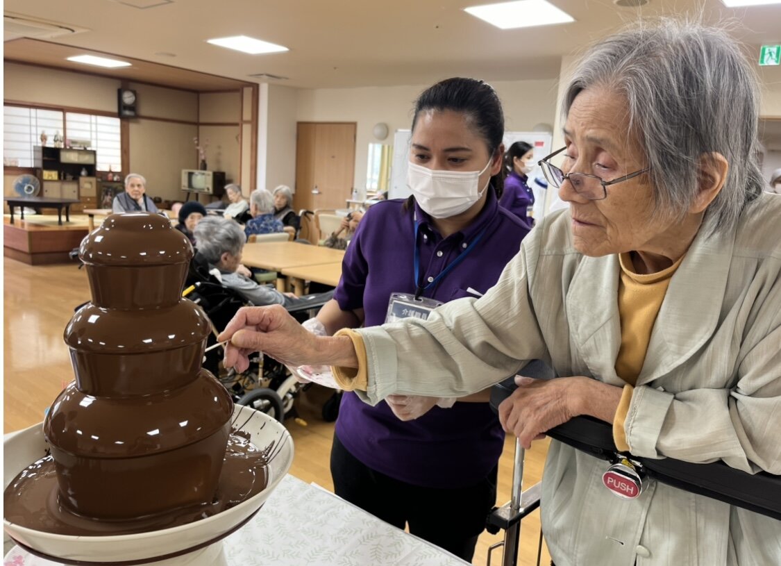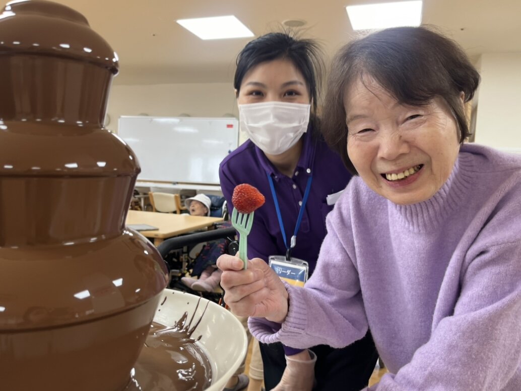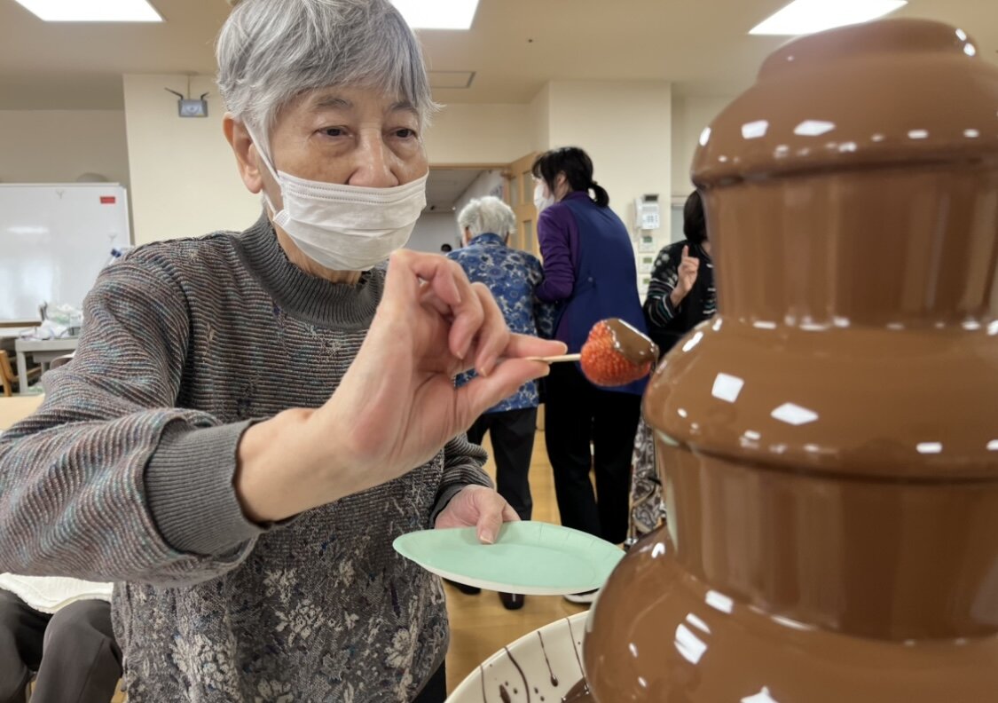 月祭レクリエーションは、「チョコレートフォンデュ」を実施しました!