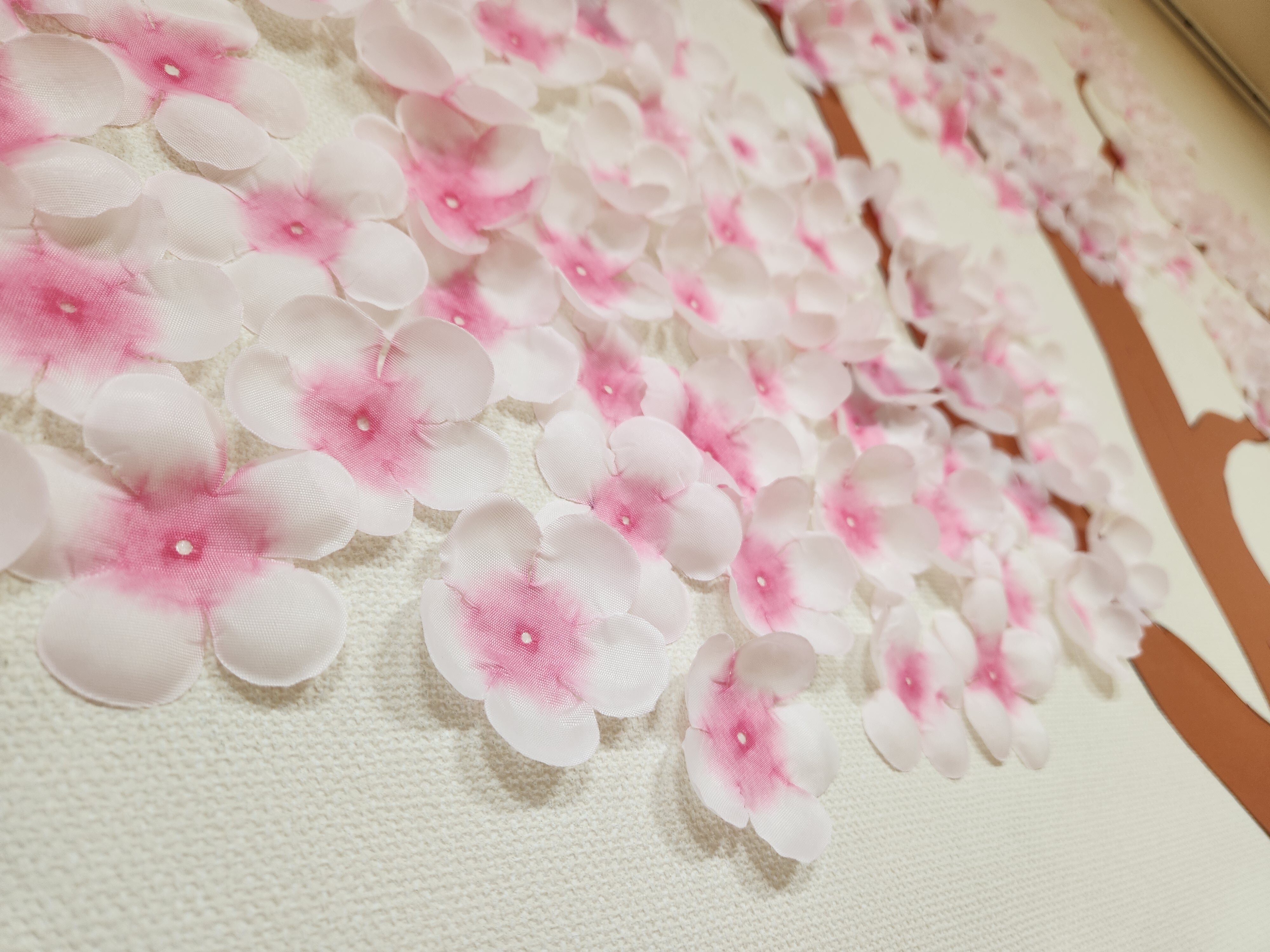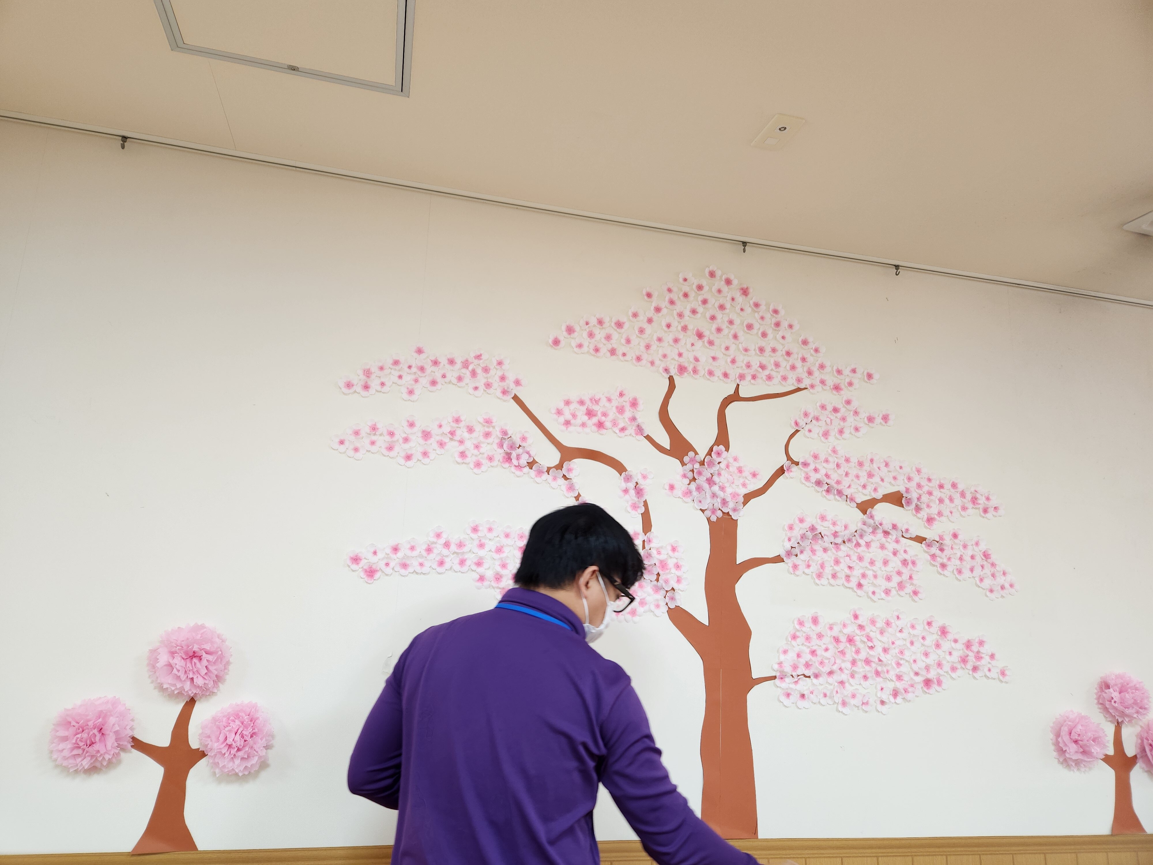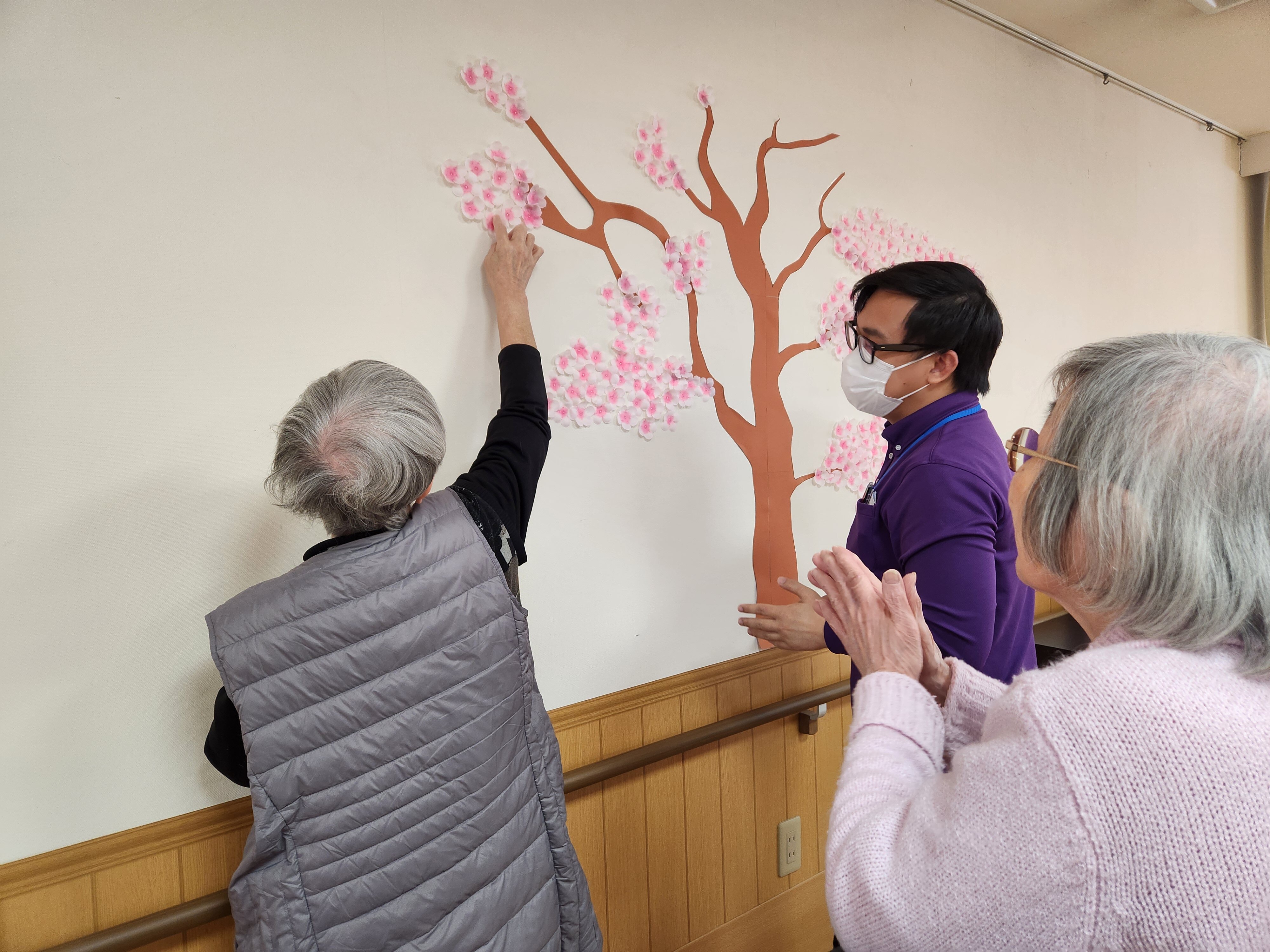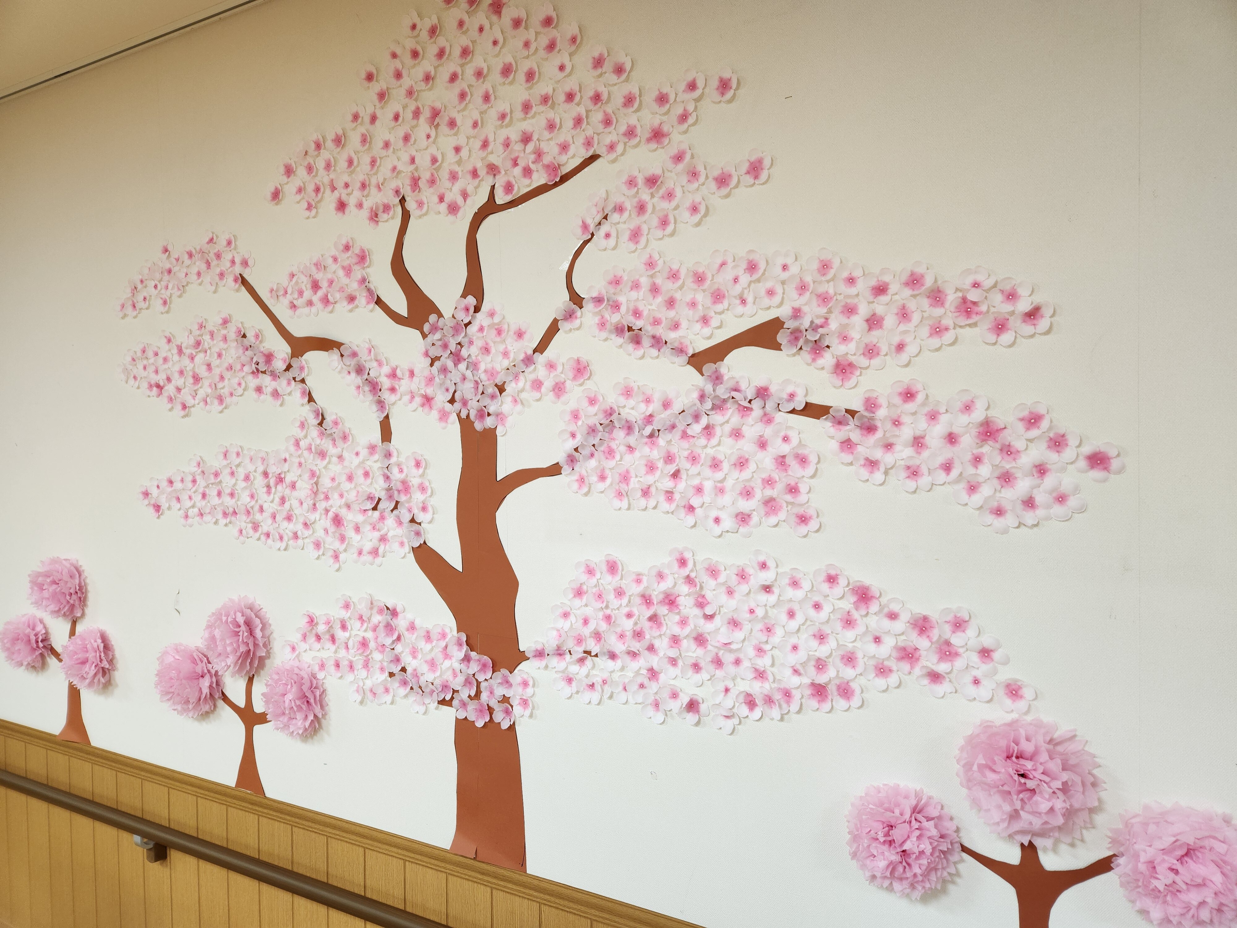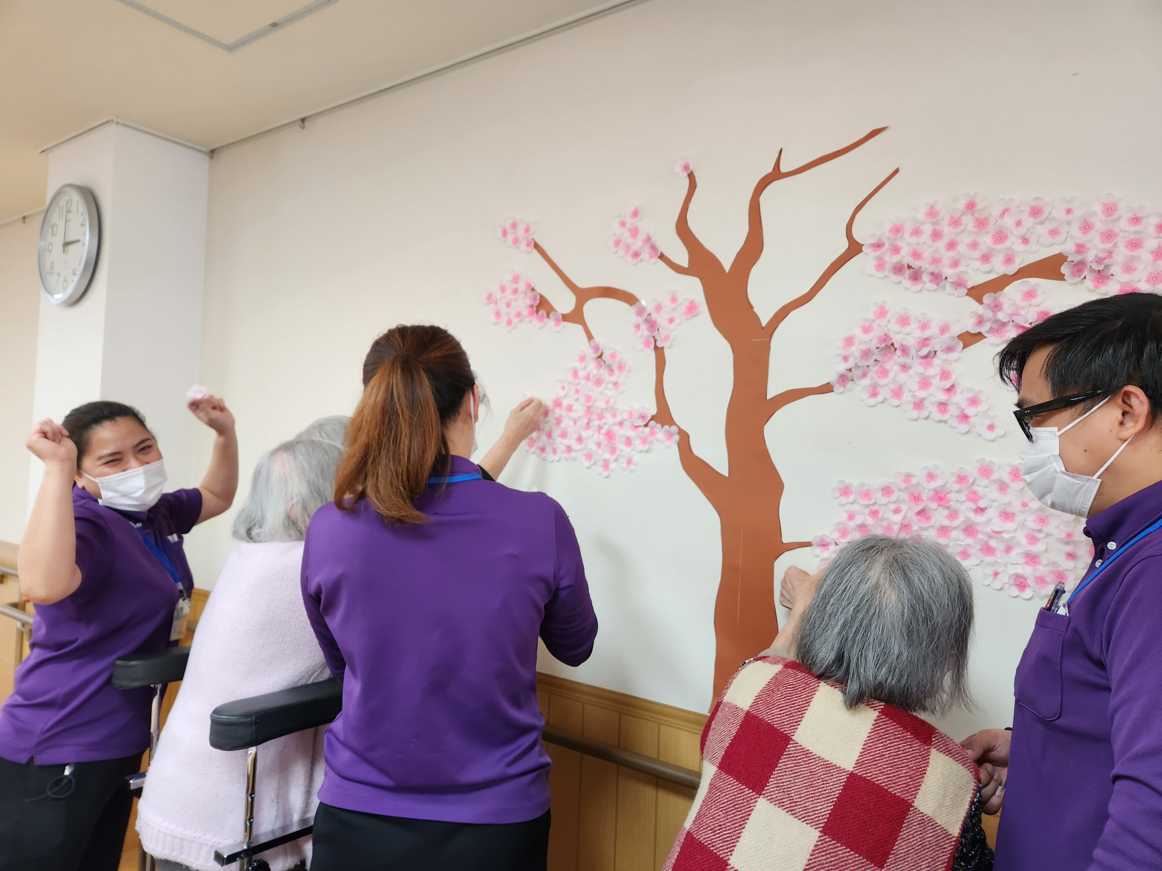 ご入居者の皆さんが一枚ずつ花びらにテープを貼ってくださり、職員と一緒に飾ってくださいましたヾ(≧▽≦)ノ