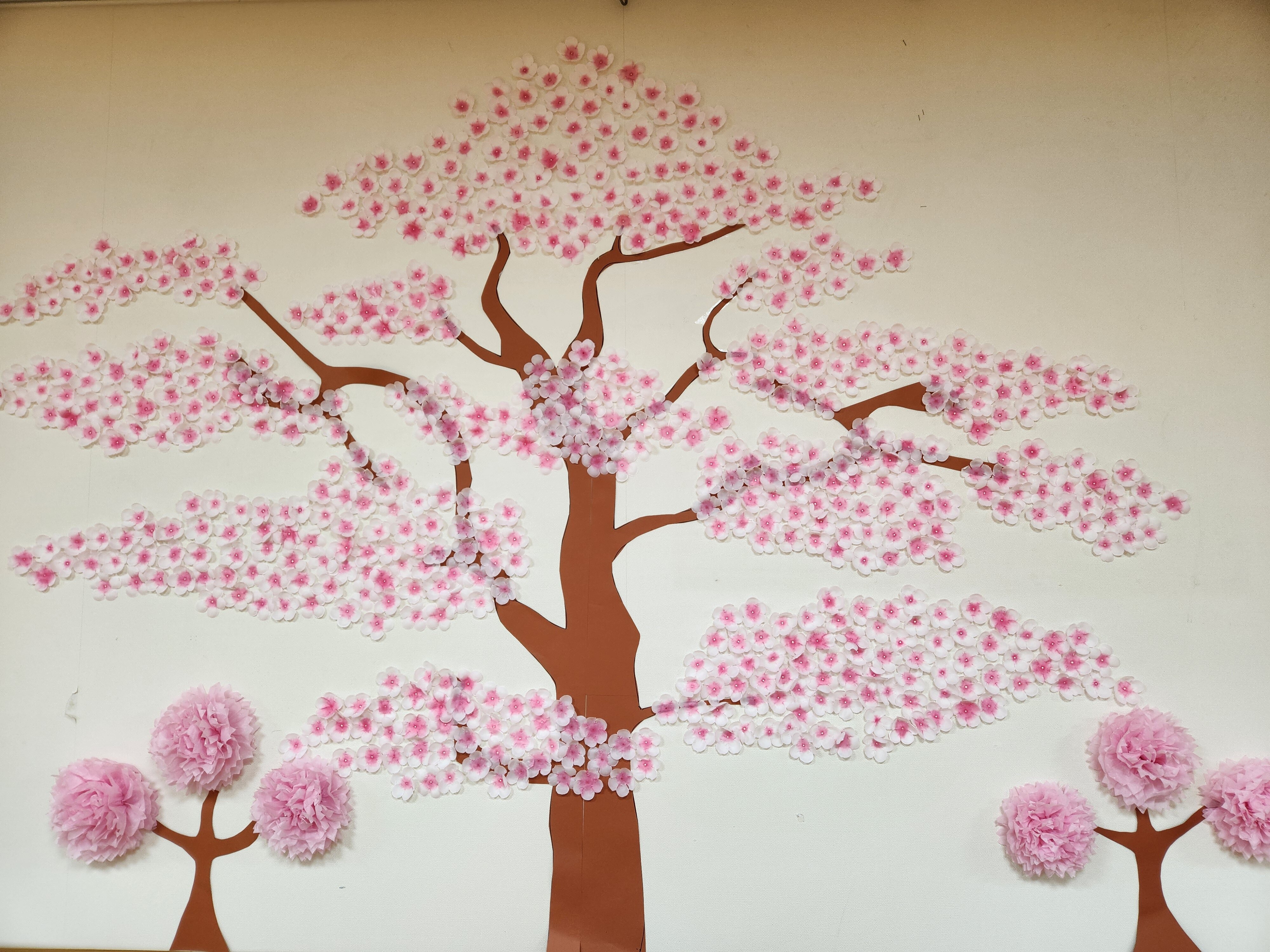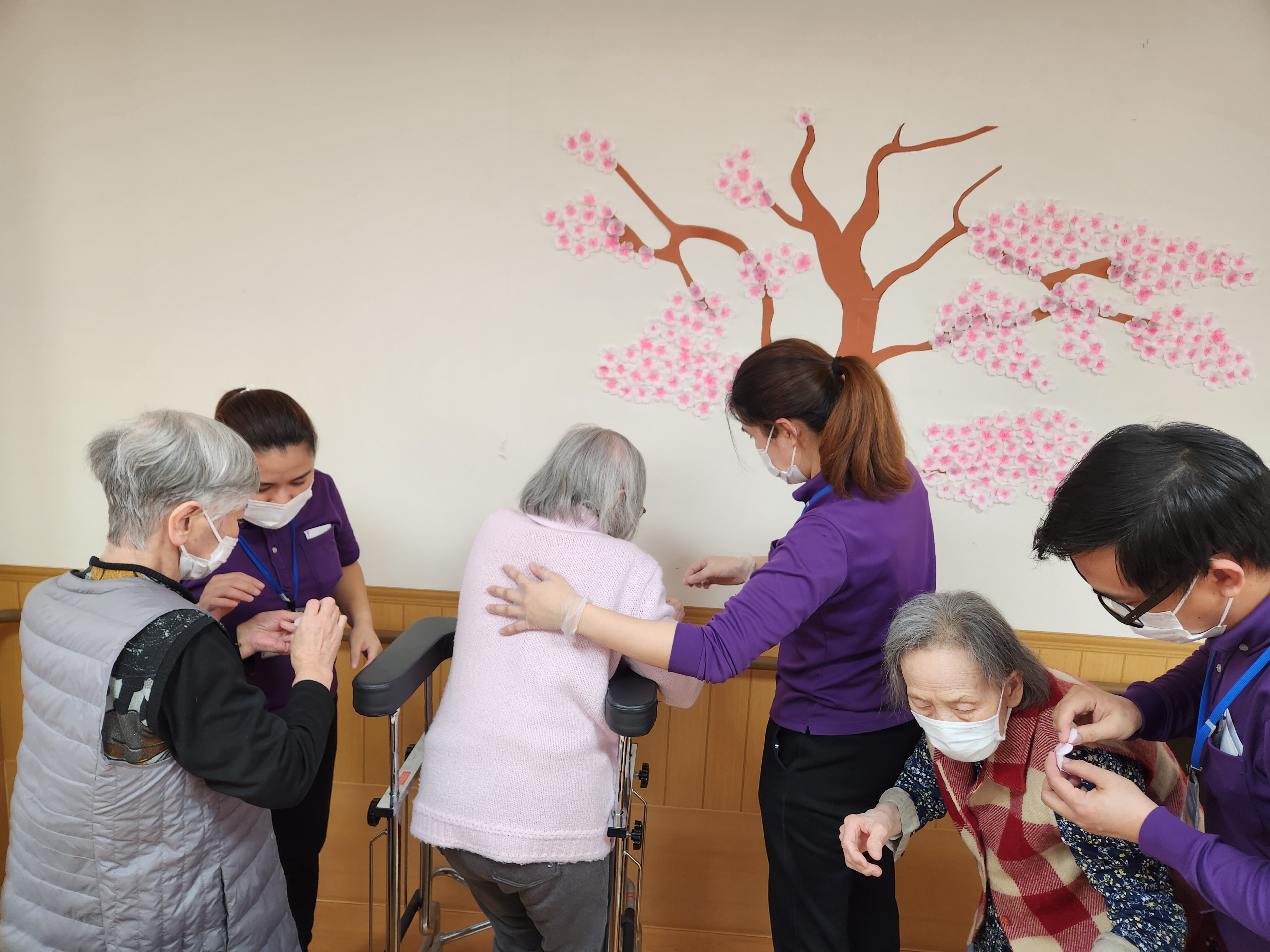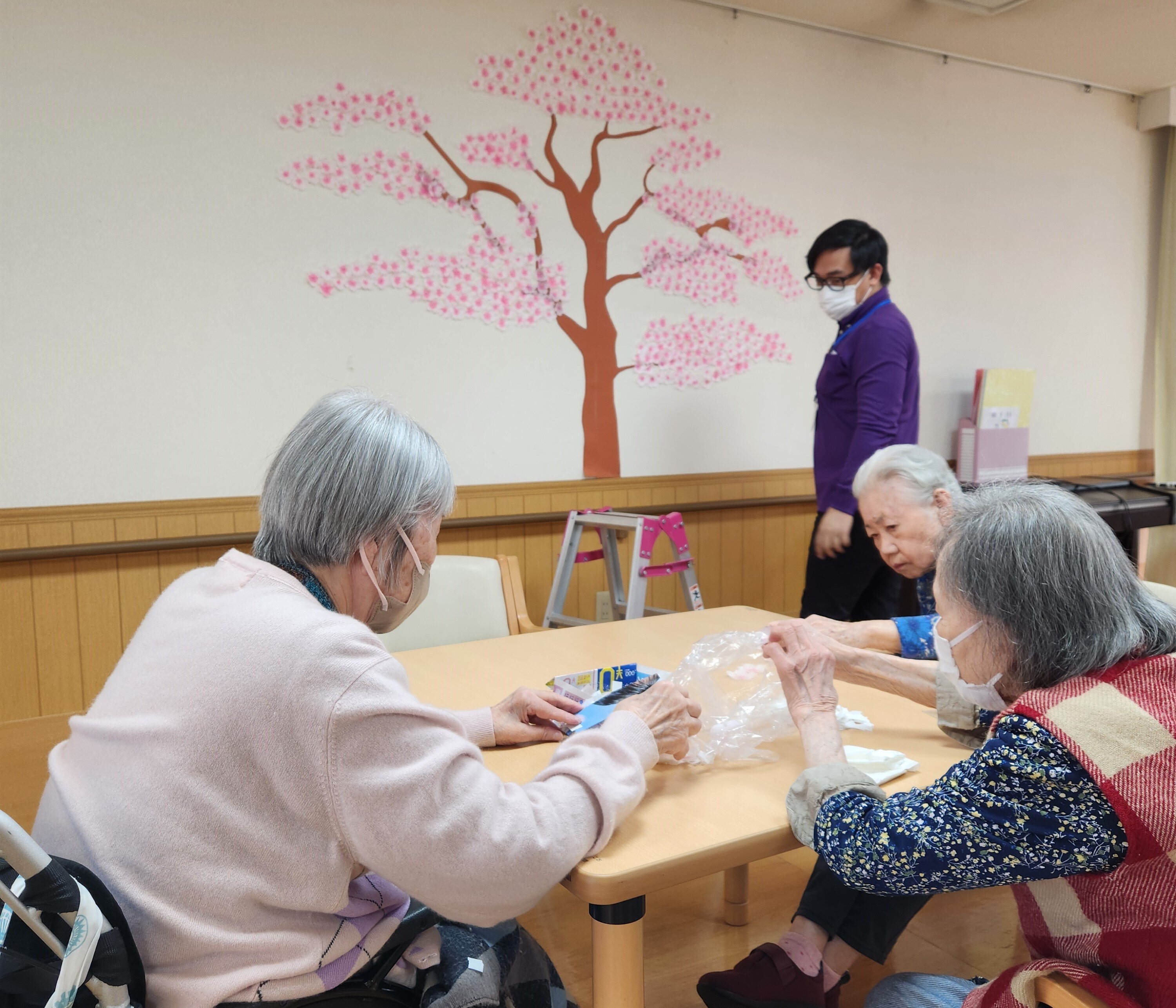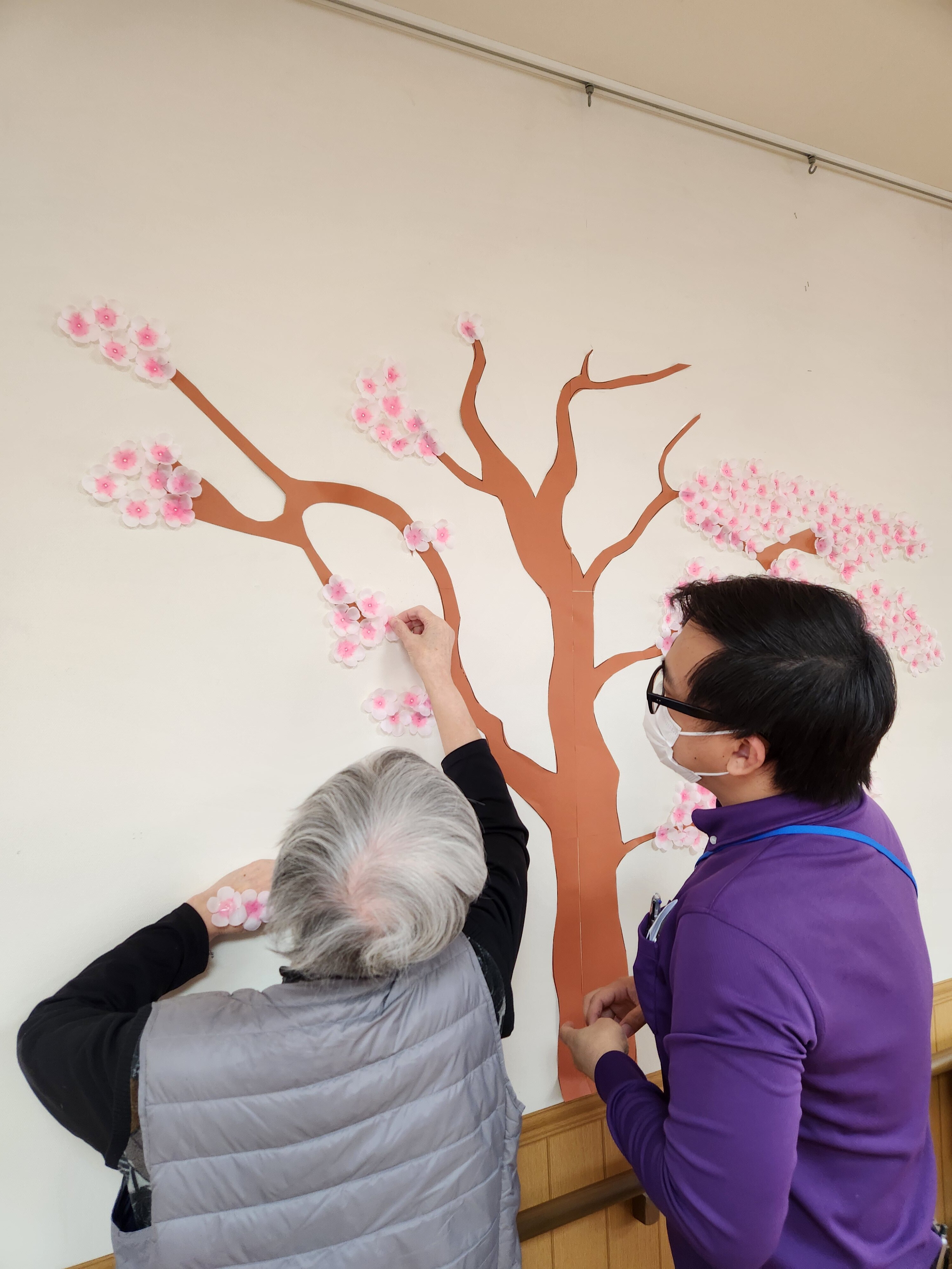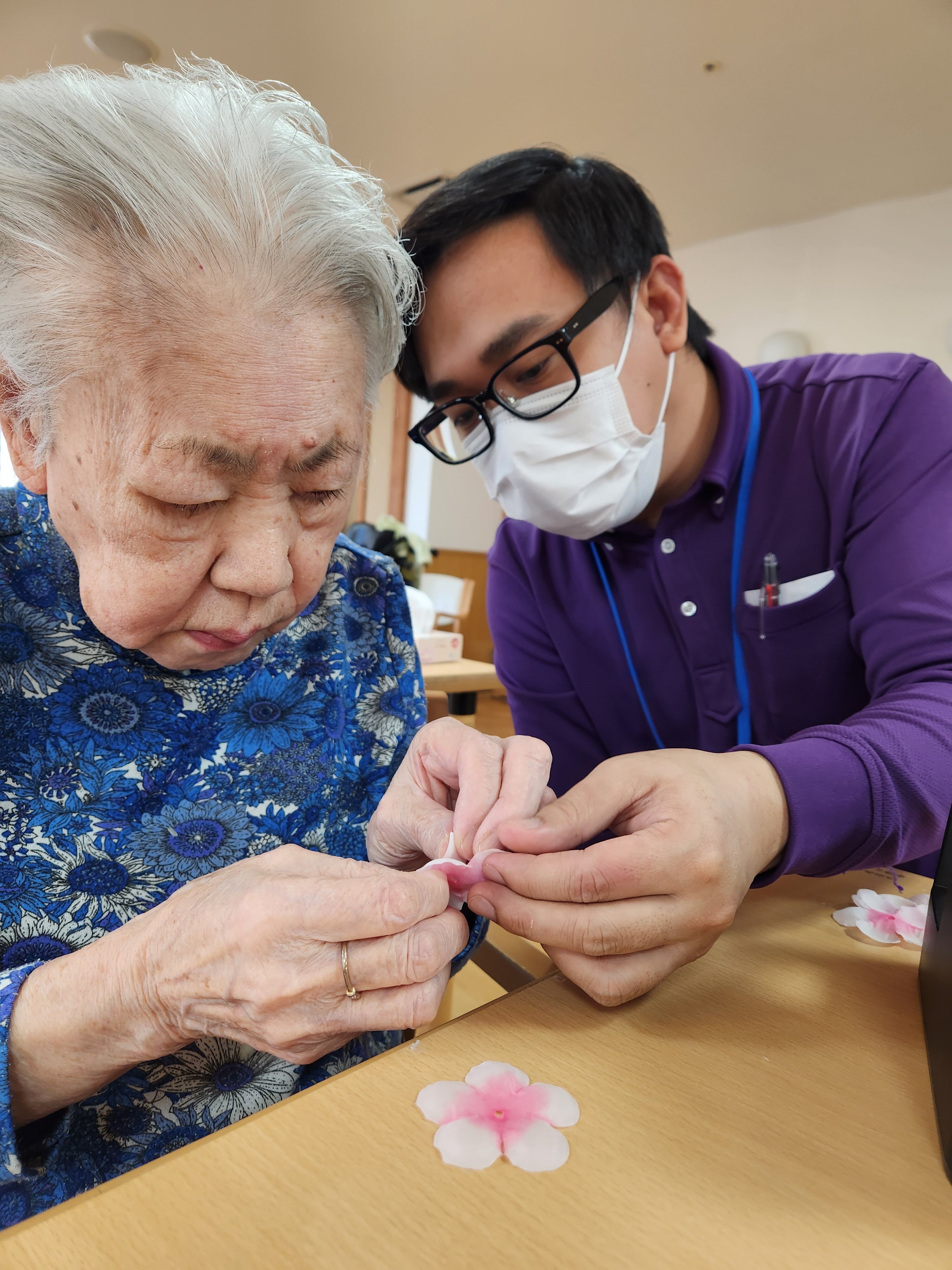 ご入居者の皆さんが一枚ずつ花びらにテープを貼ってくださり、職員と一緒に飾ってくださいましたヾ(≧▽≦)ノ