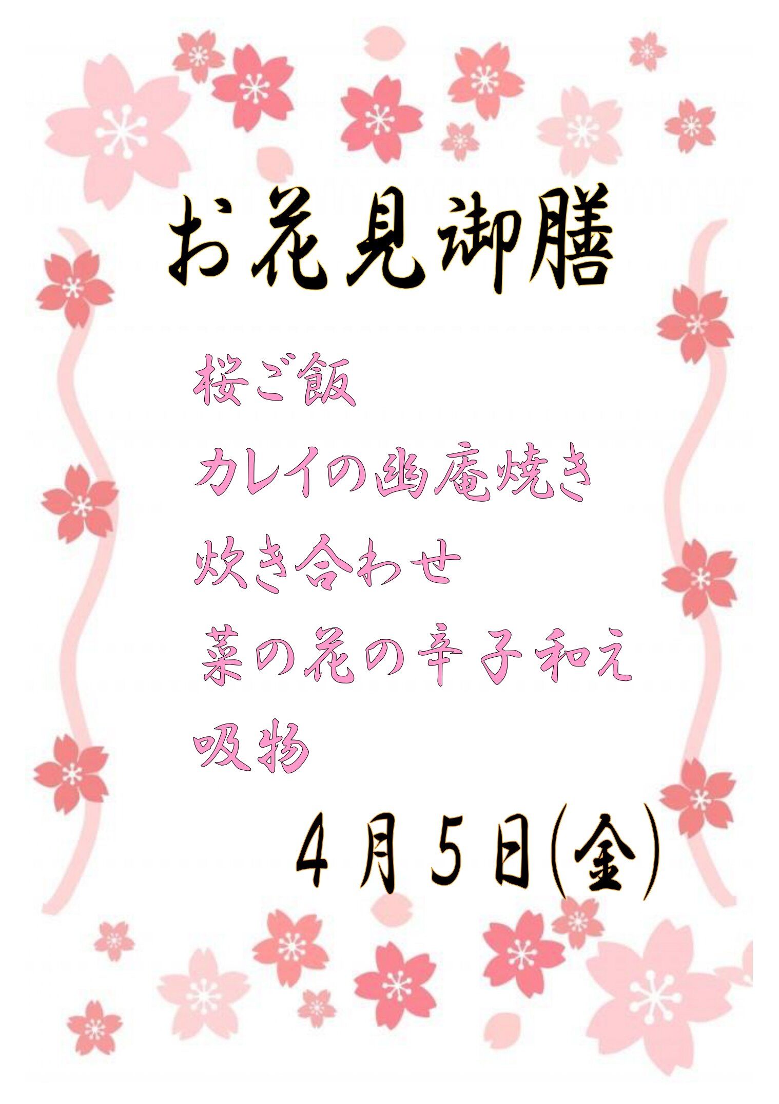 4月1日(月)~6日(土)までの献立です♪