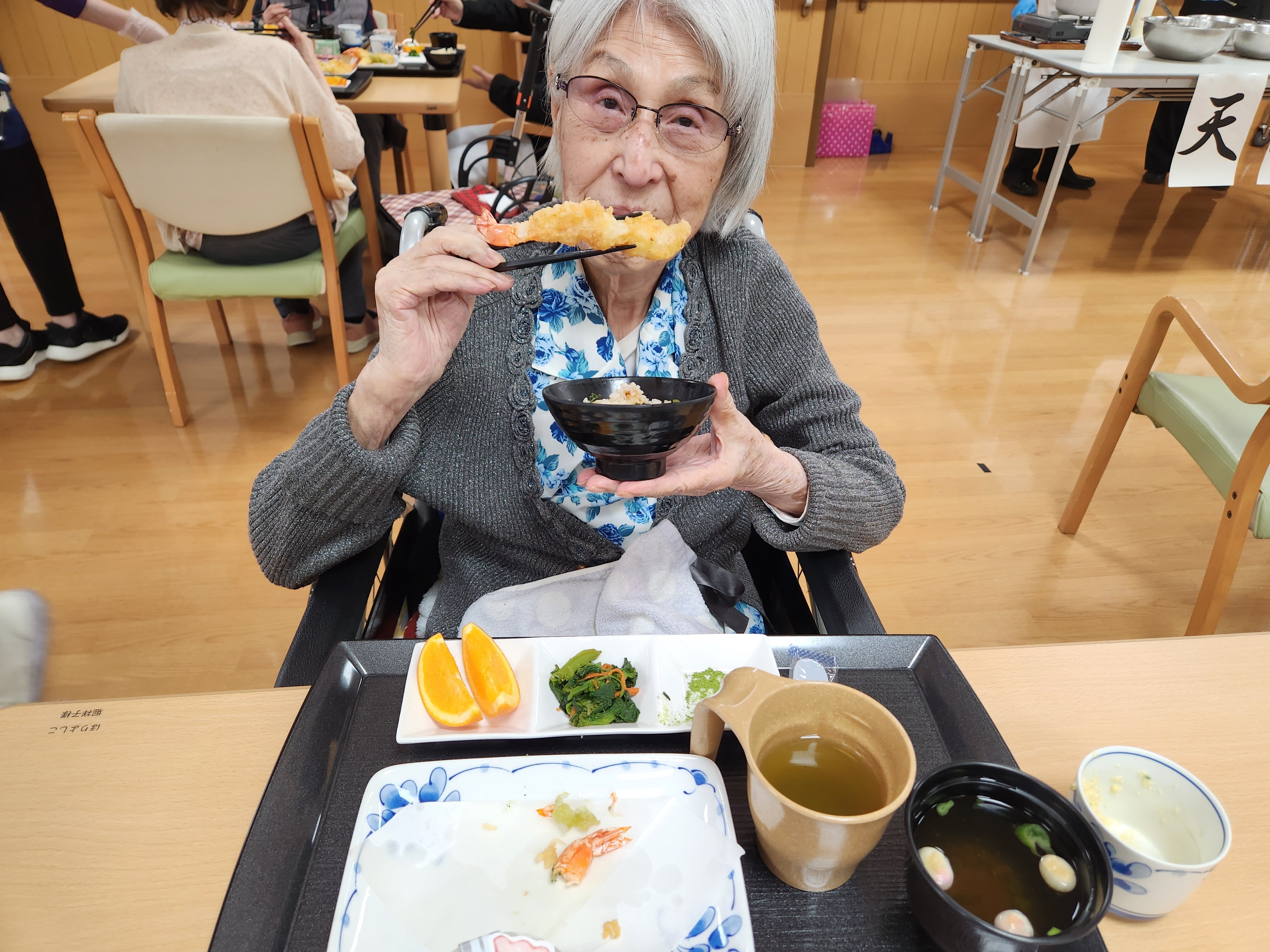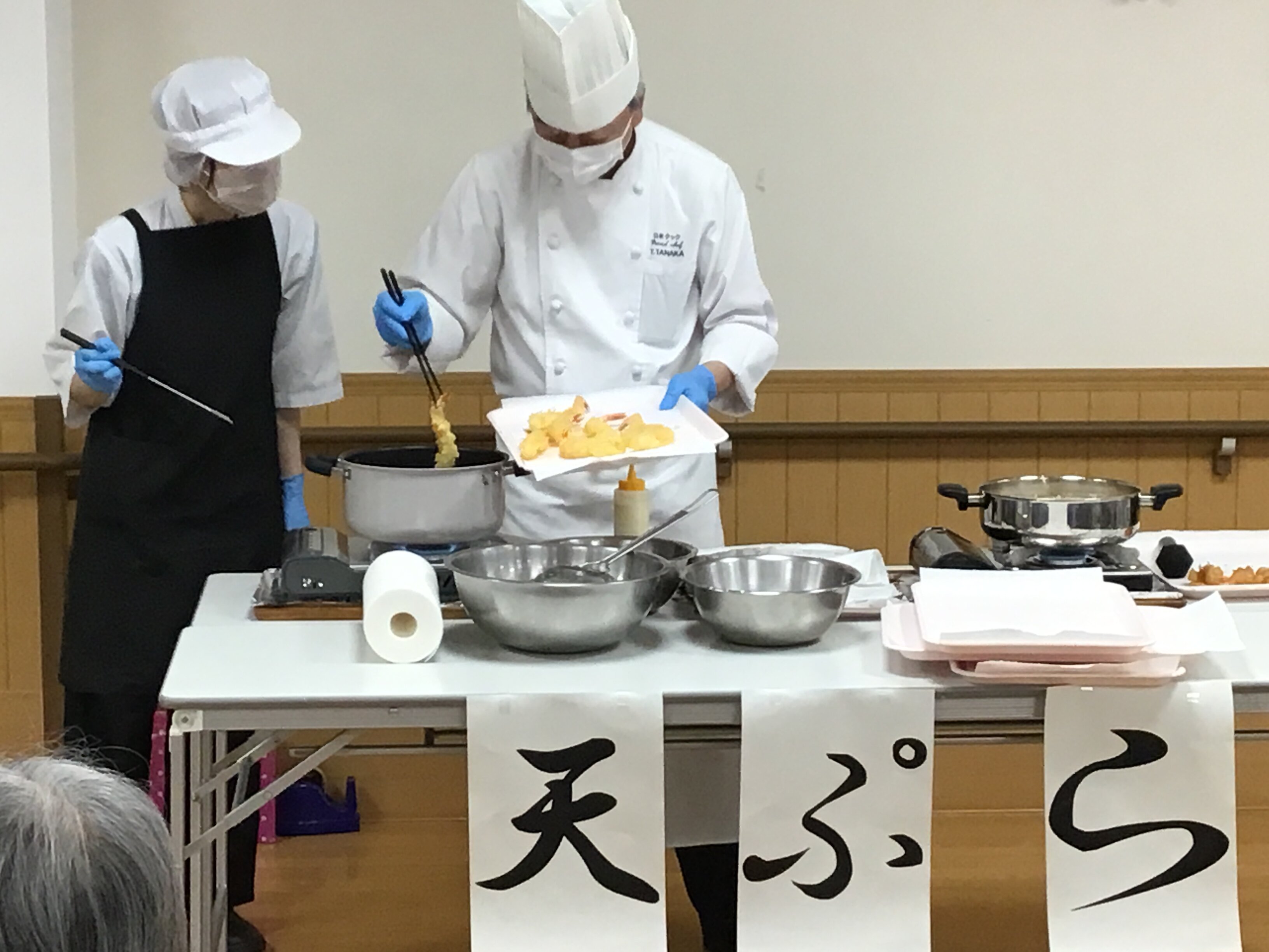 天ぷらは厨房の日米クック様にご協力していただき、目の前でエビを揚げていただきましたヾ(≧▽≦)ノ