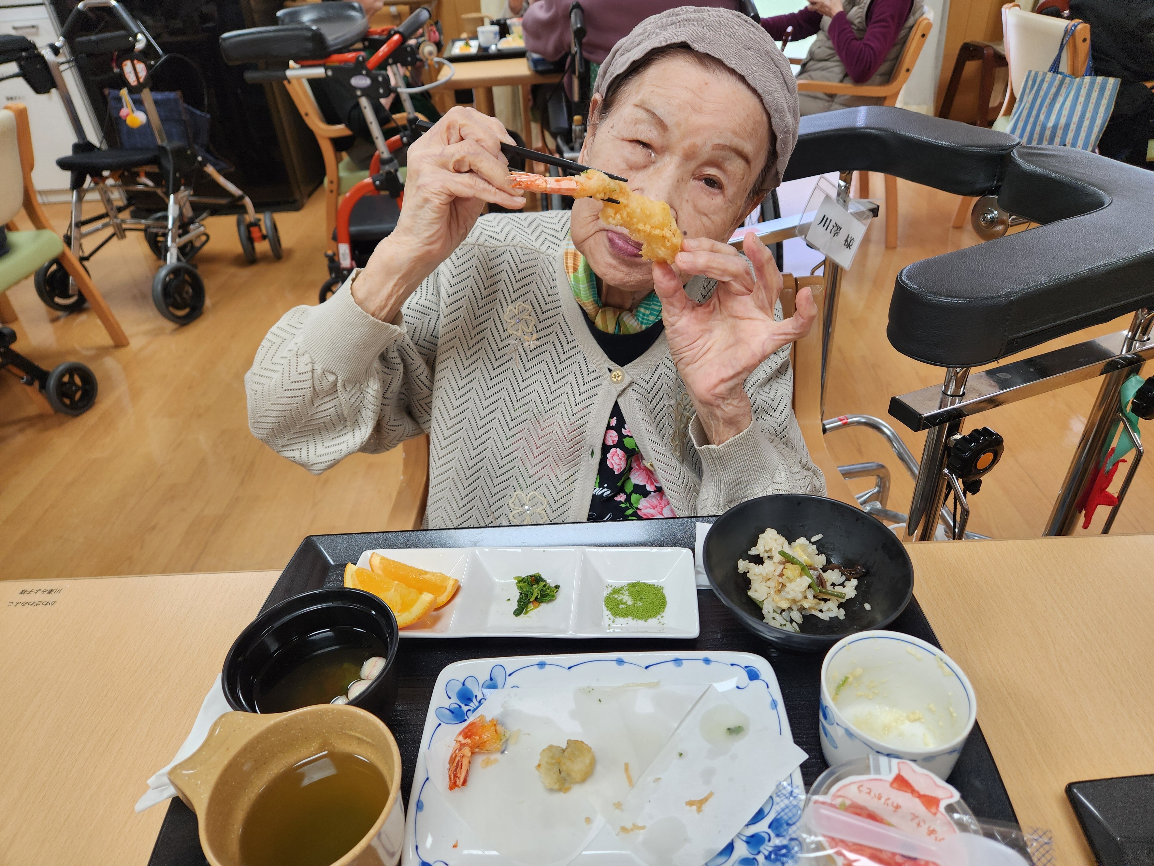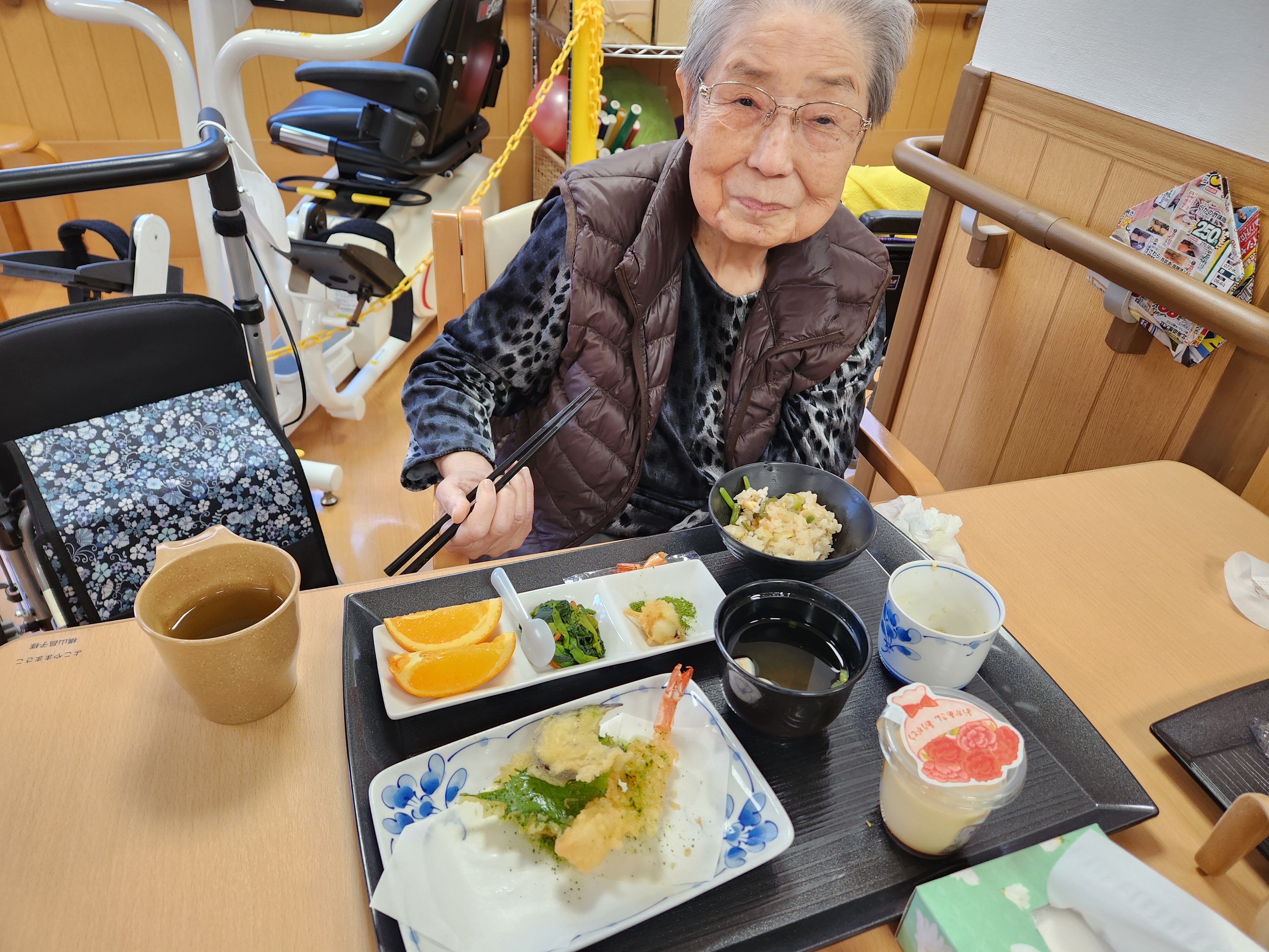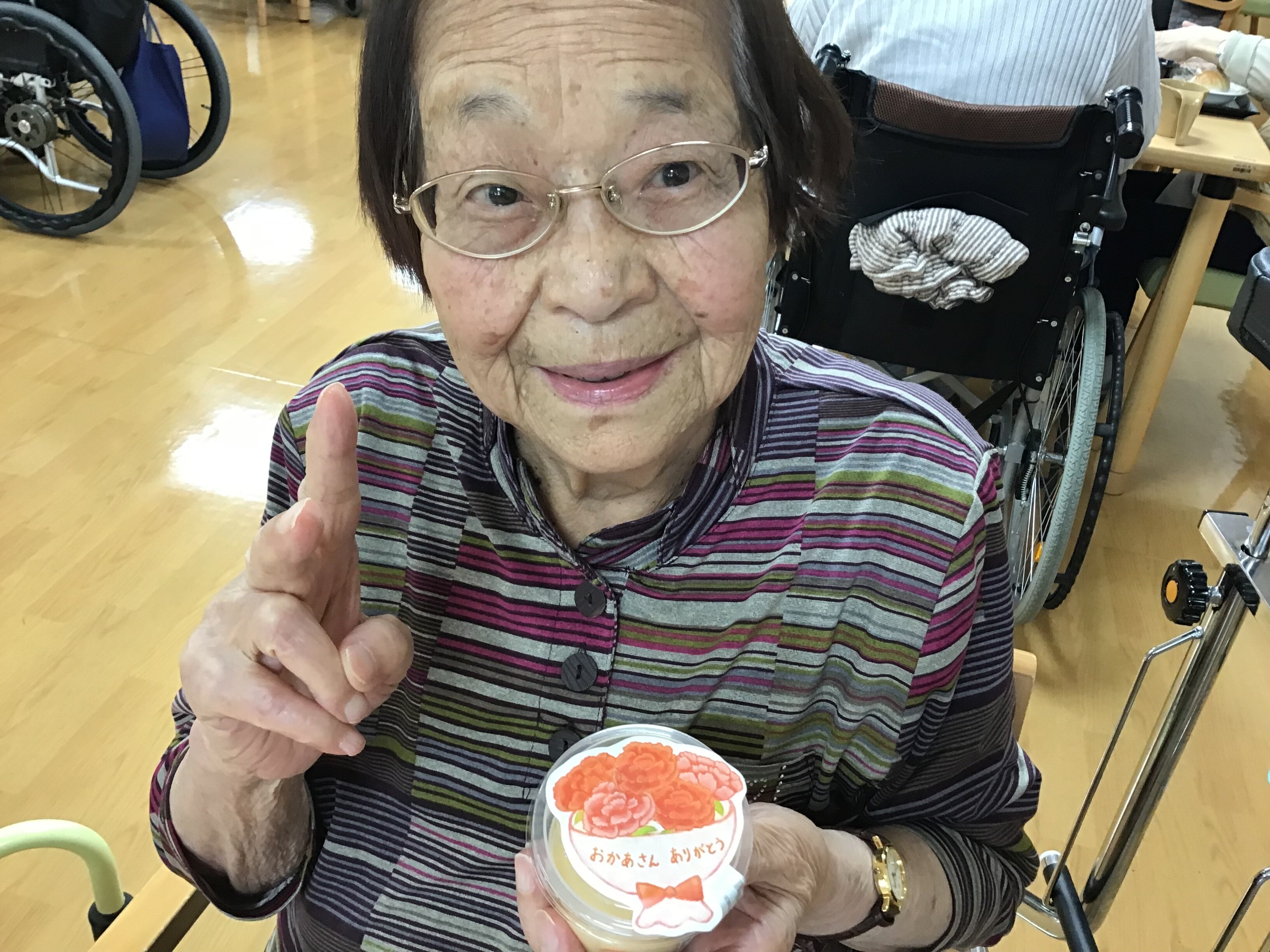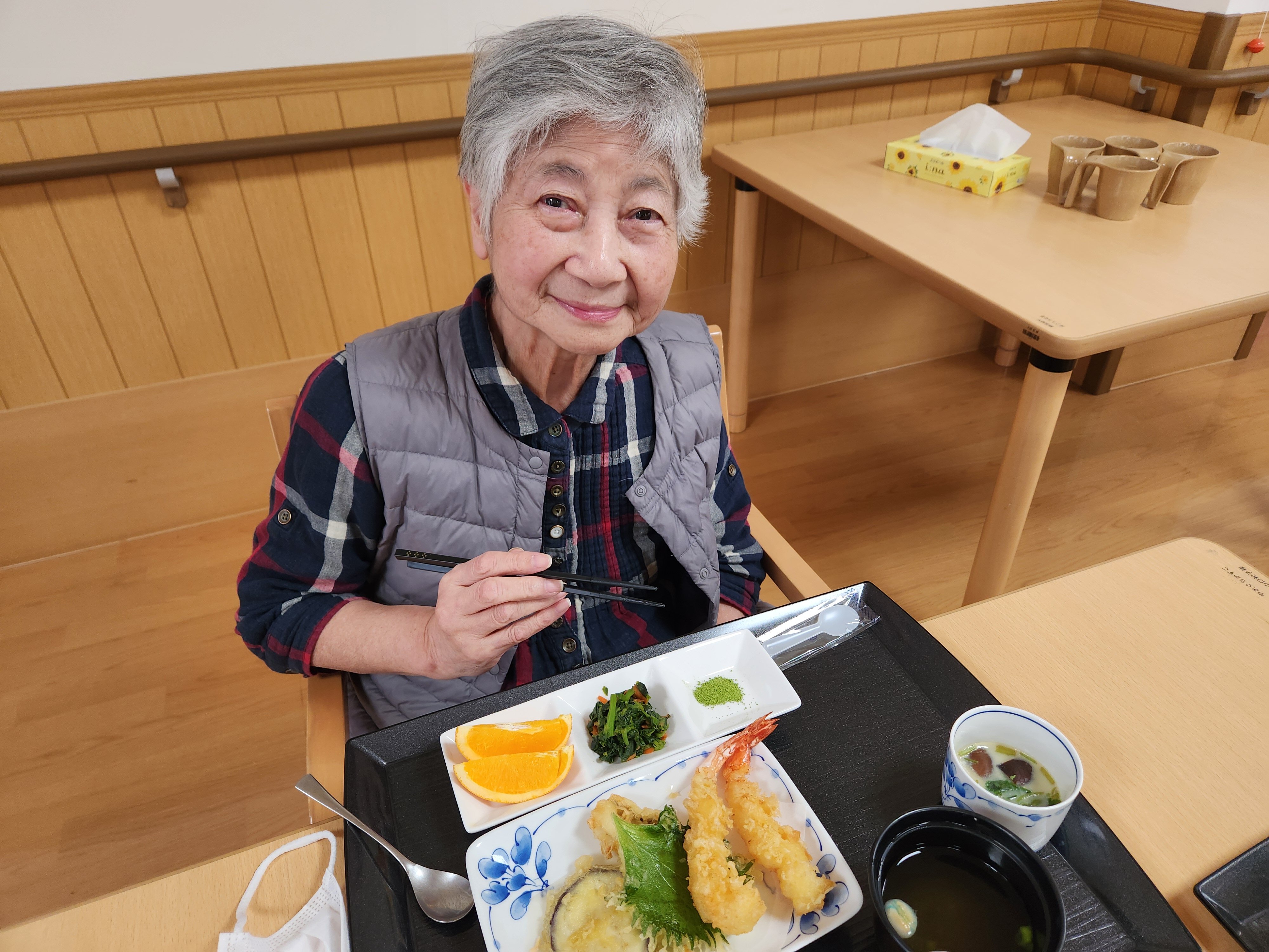 今月は母の日ということで、昼食時に天ぷら&プリンをご提供しました♪