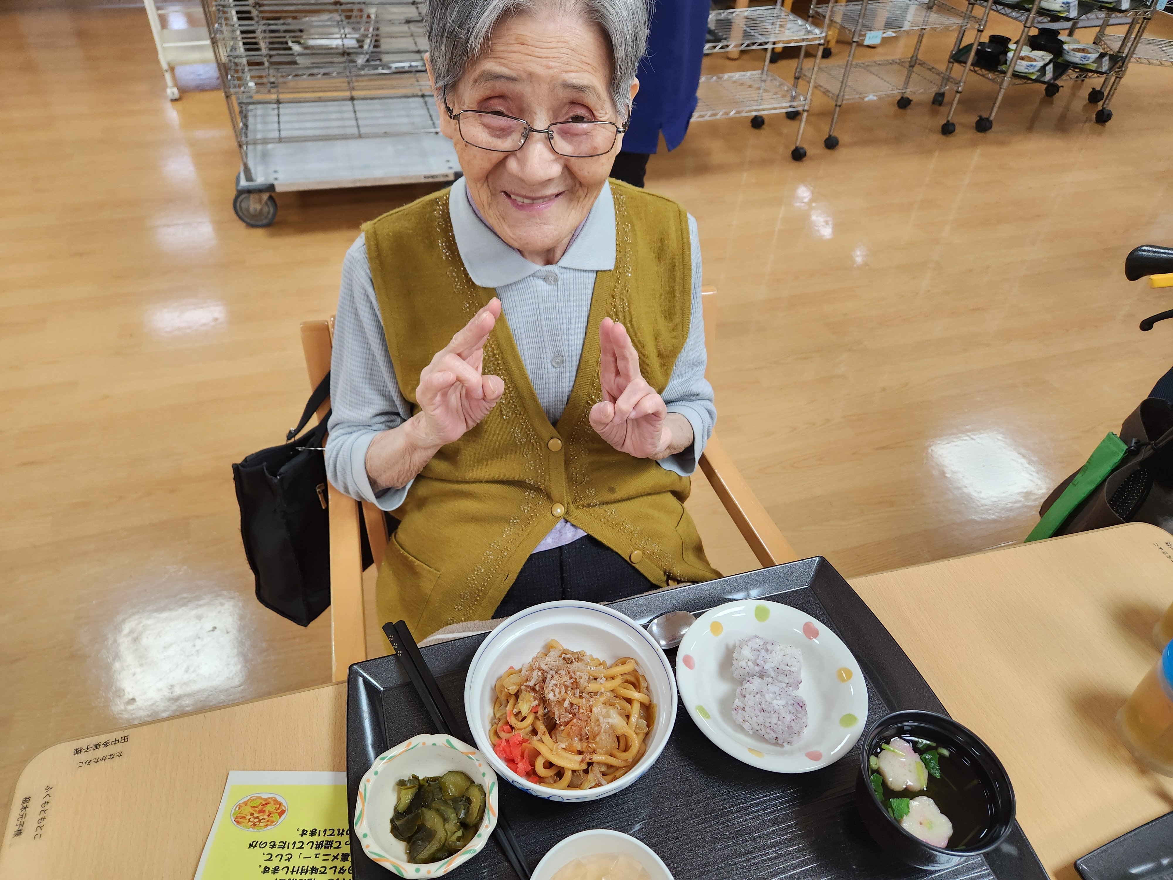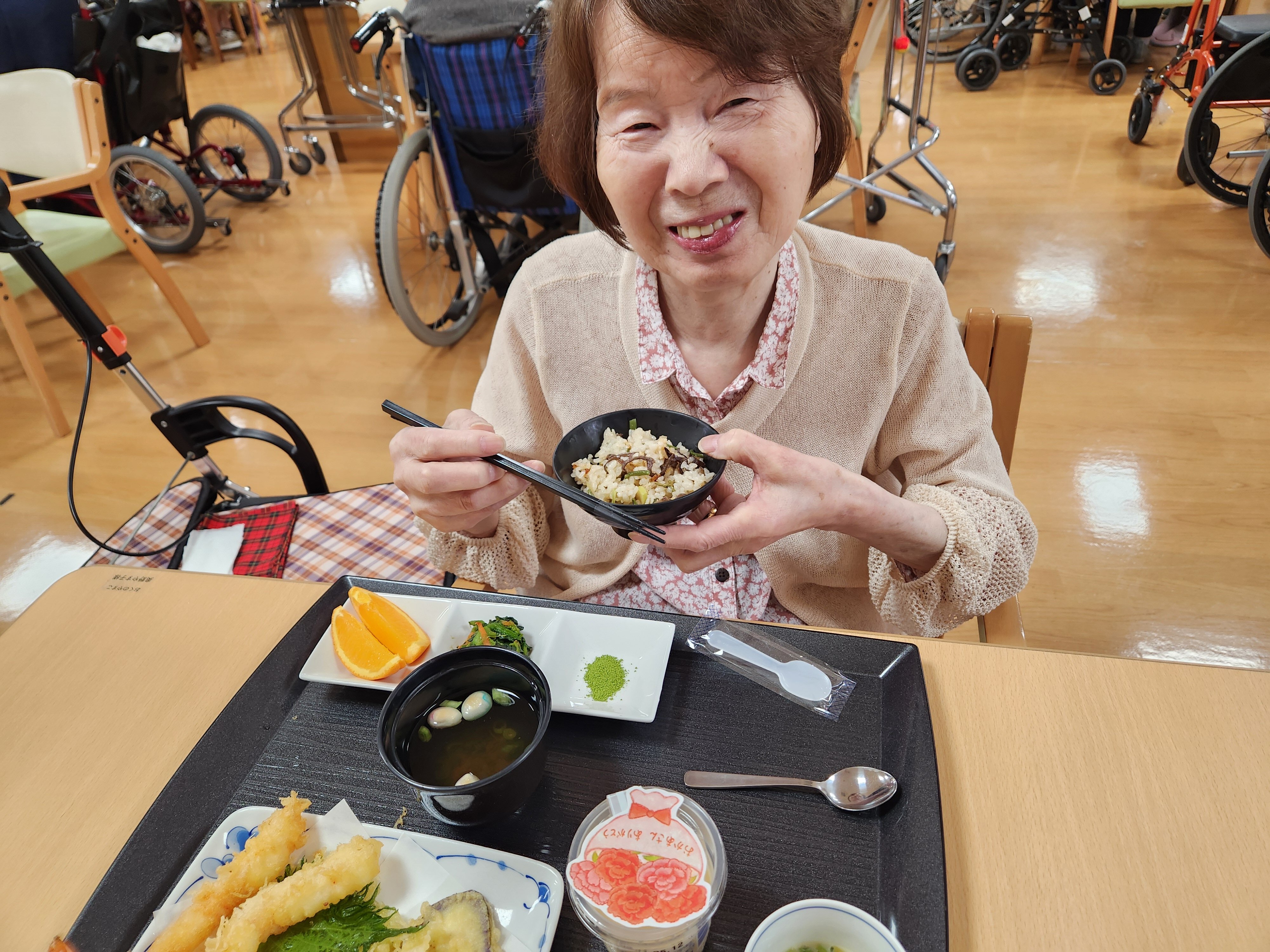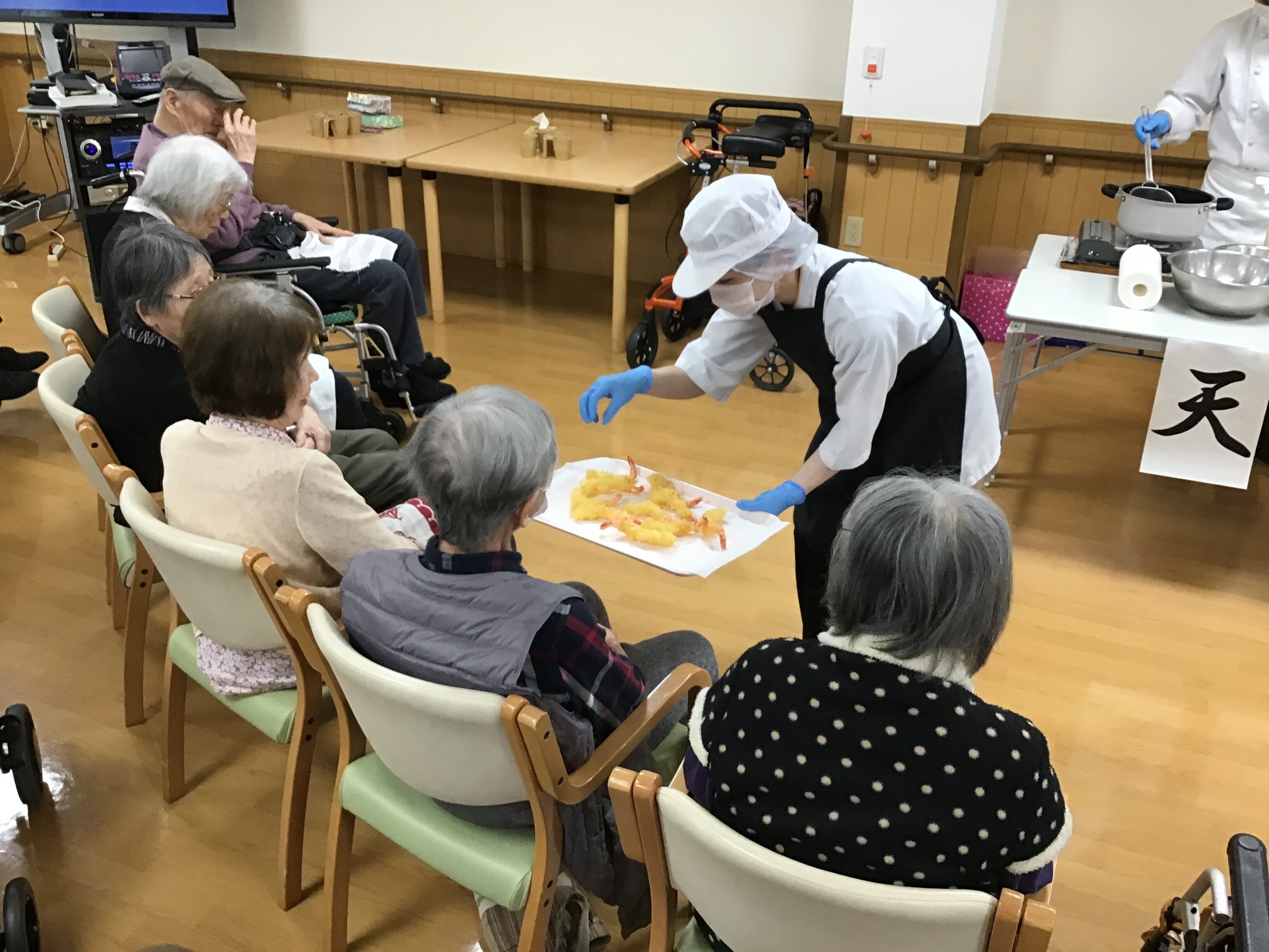 今月は母の日ということで、昼食時に天ぷら&プリンをご提供しました♪