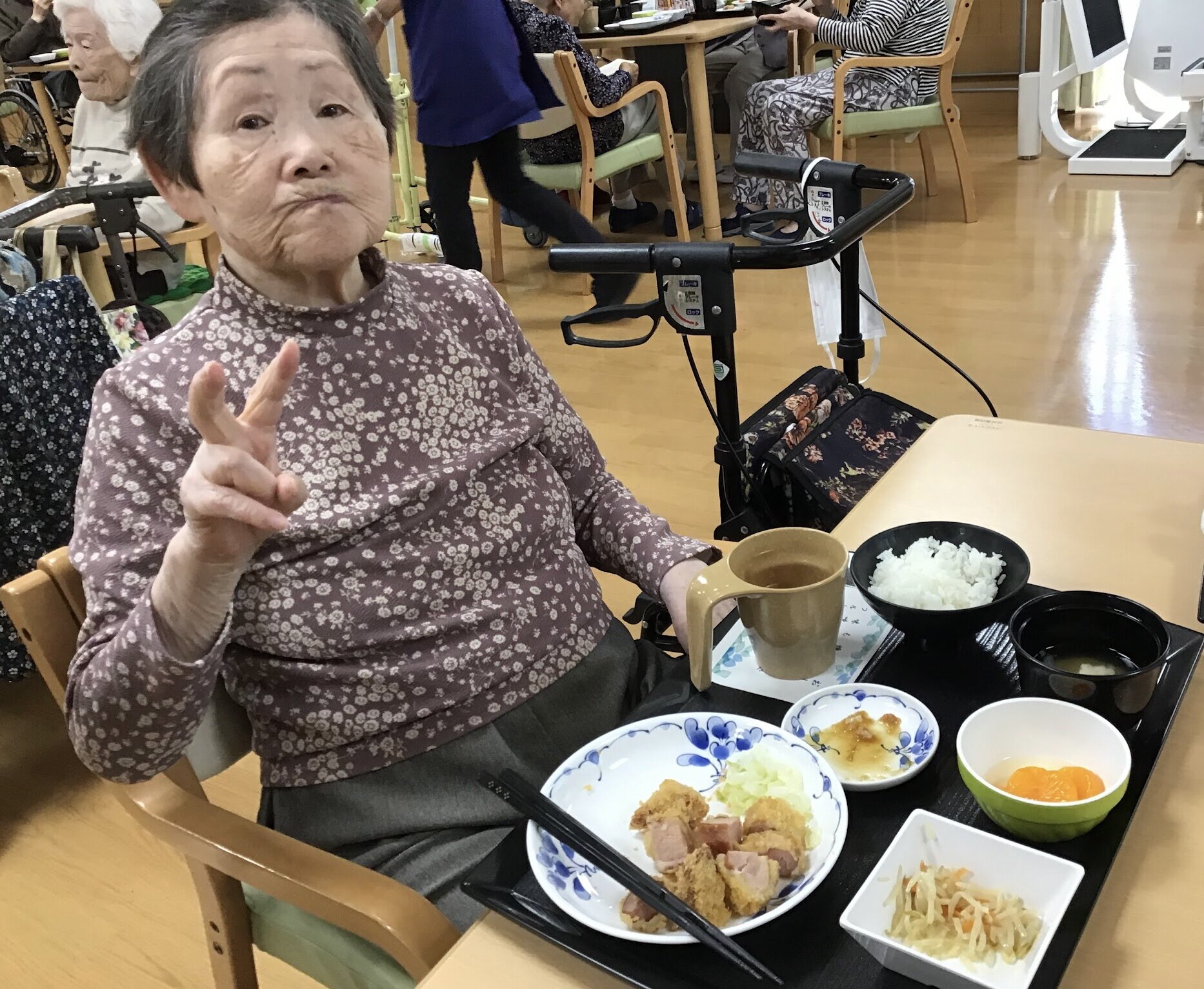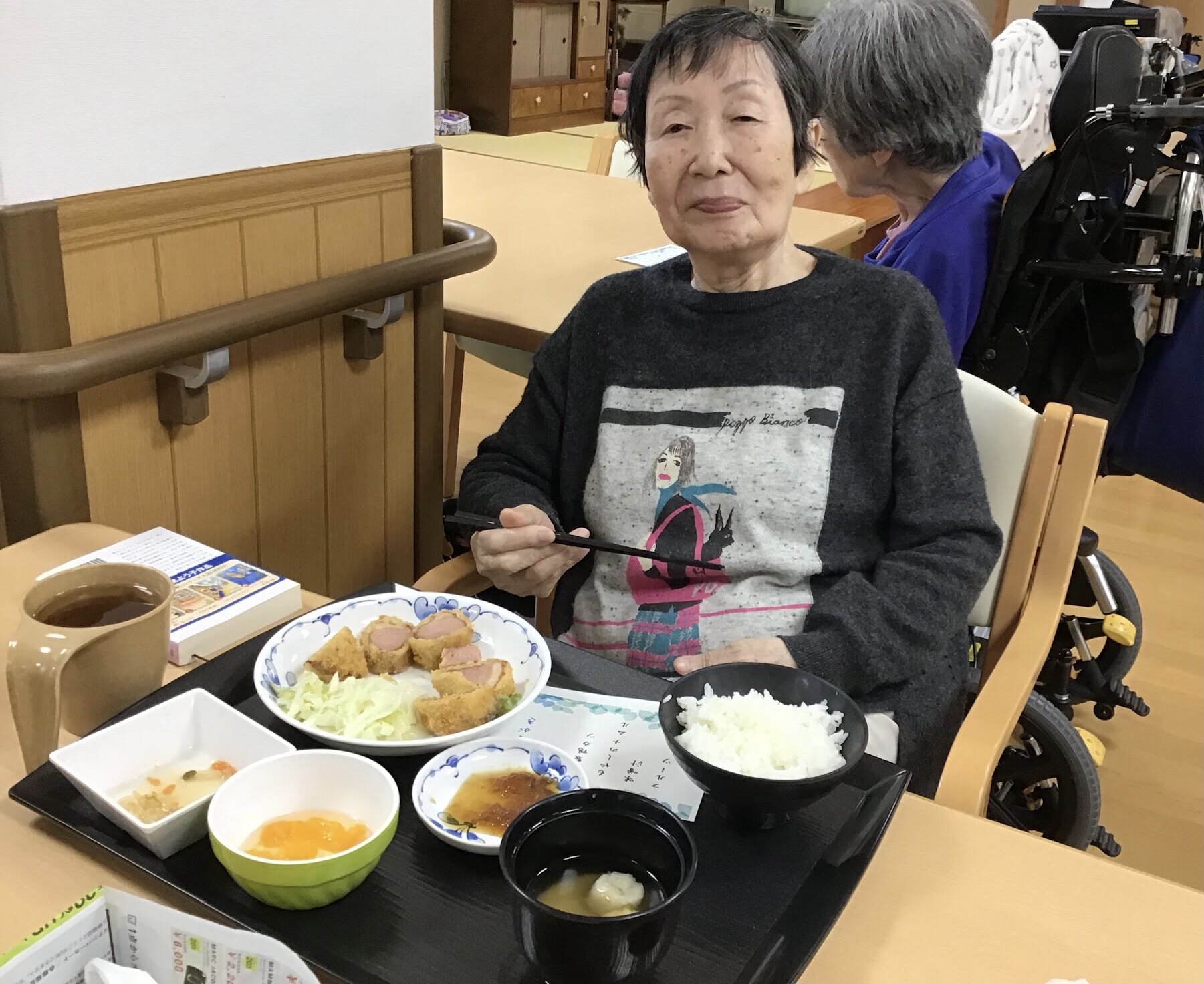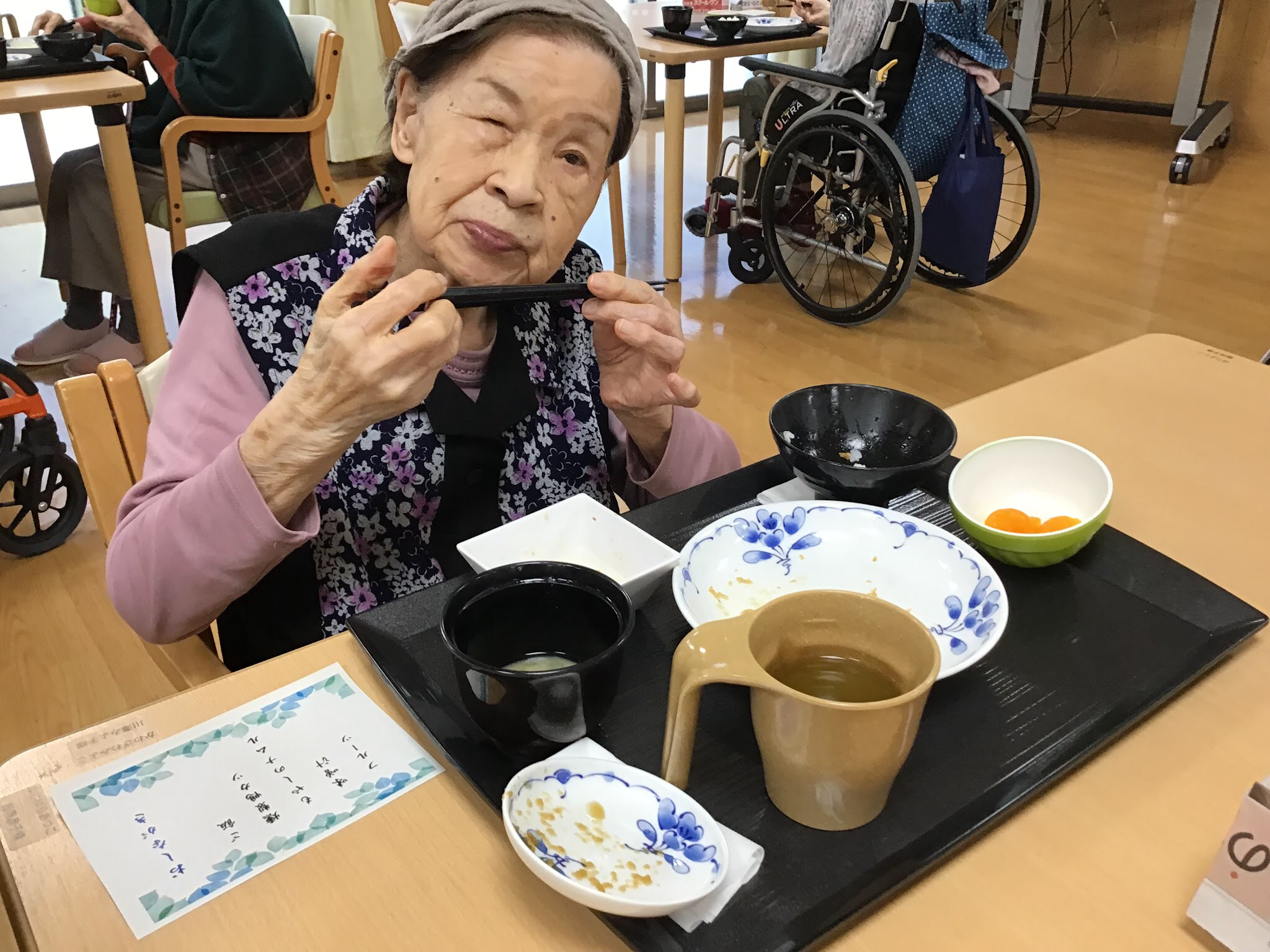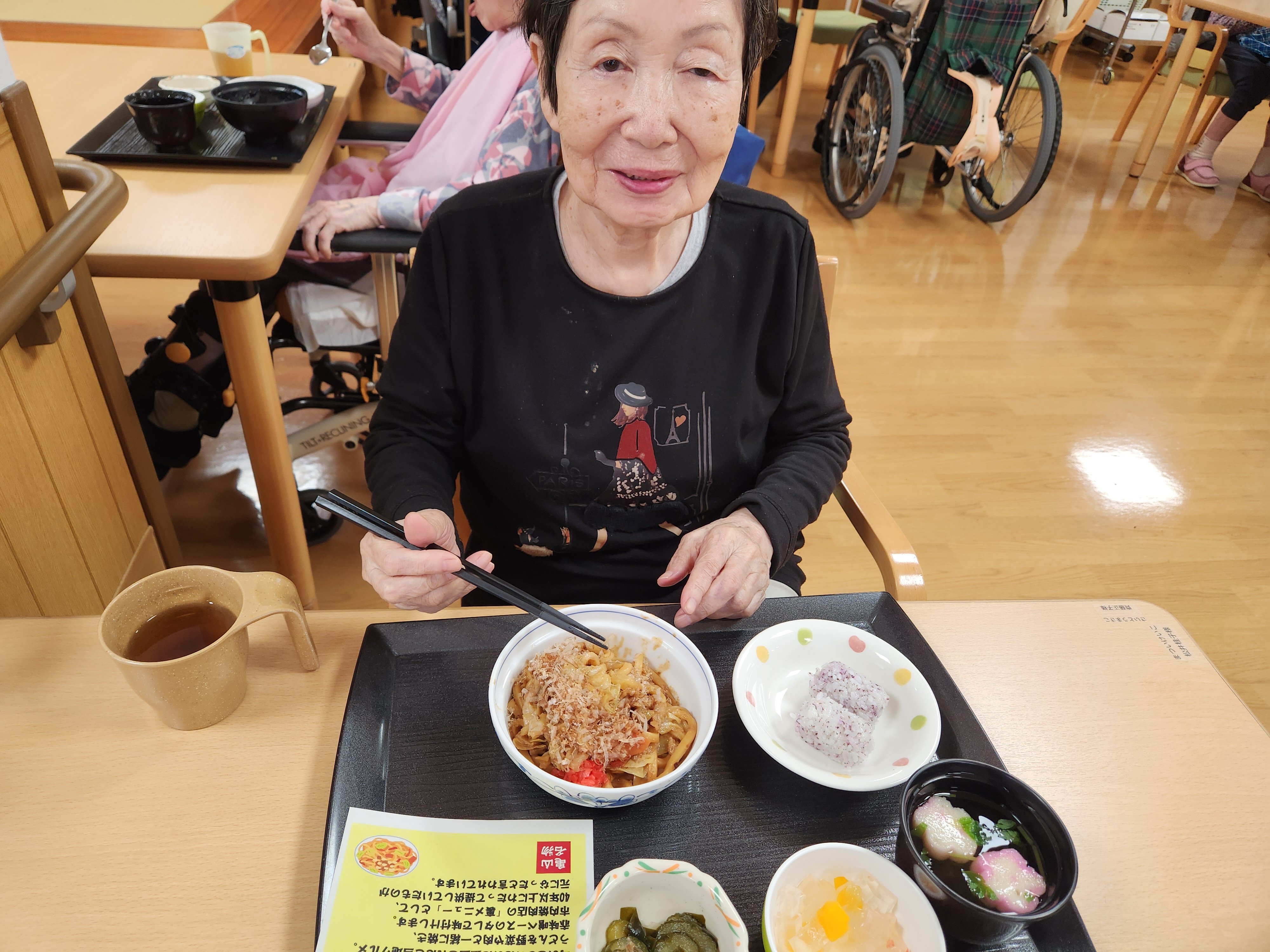今月は母の日ということで、昼食時に天ぷら&プリンをご提供しました♪
