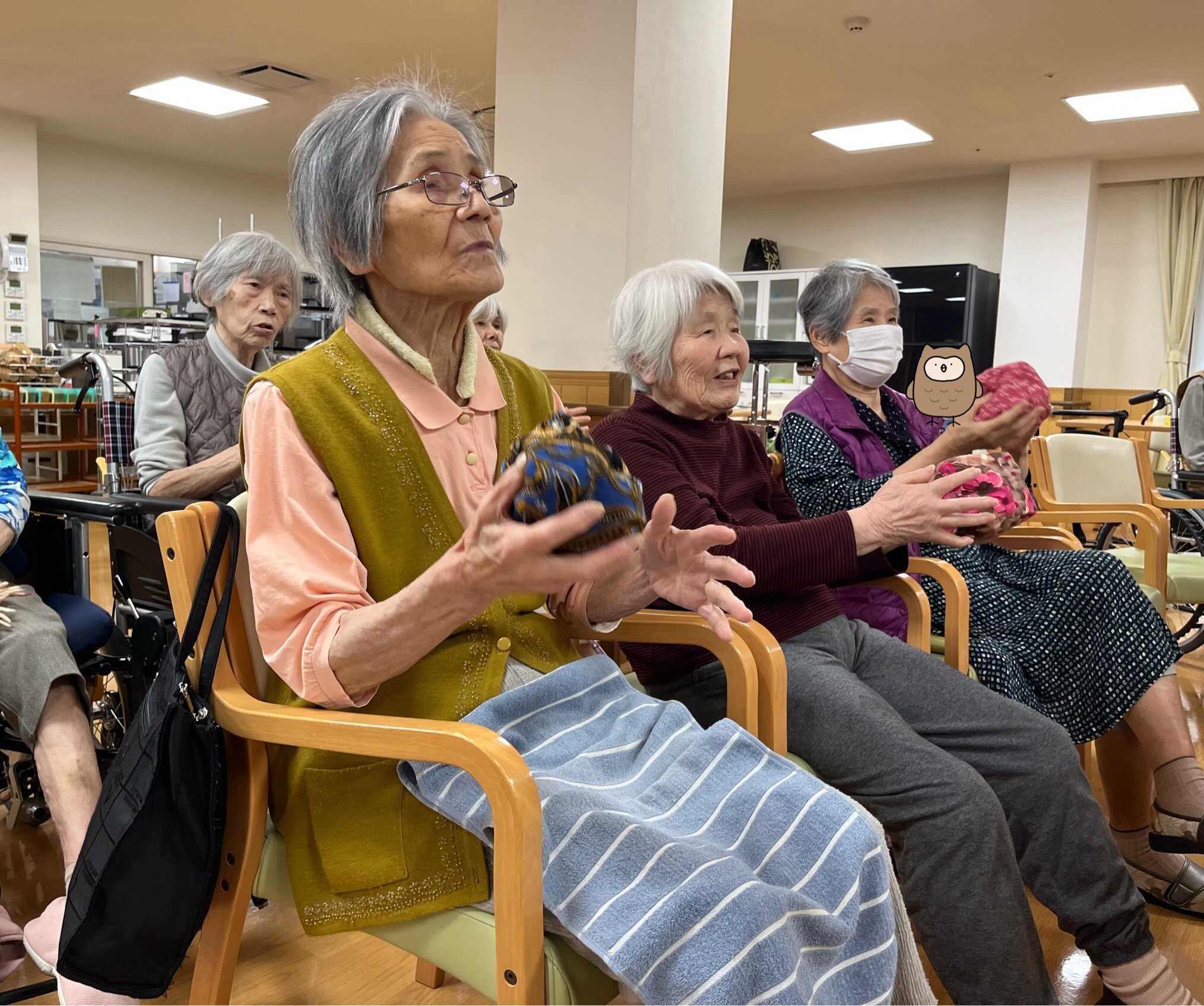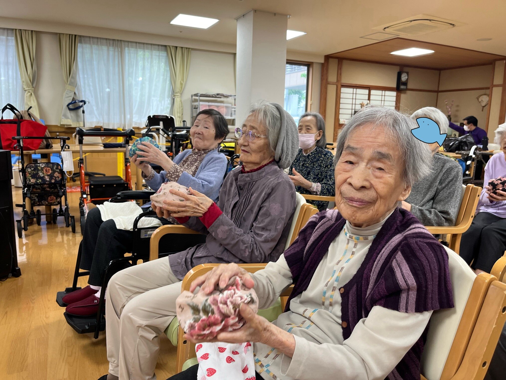 歌の次は、手作りお手玉を使ってリズムに乗りながら歌いました!