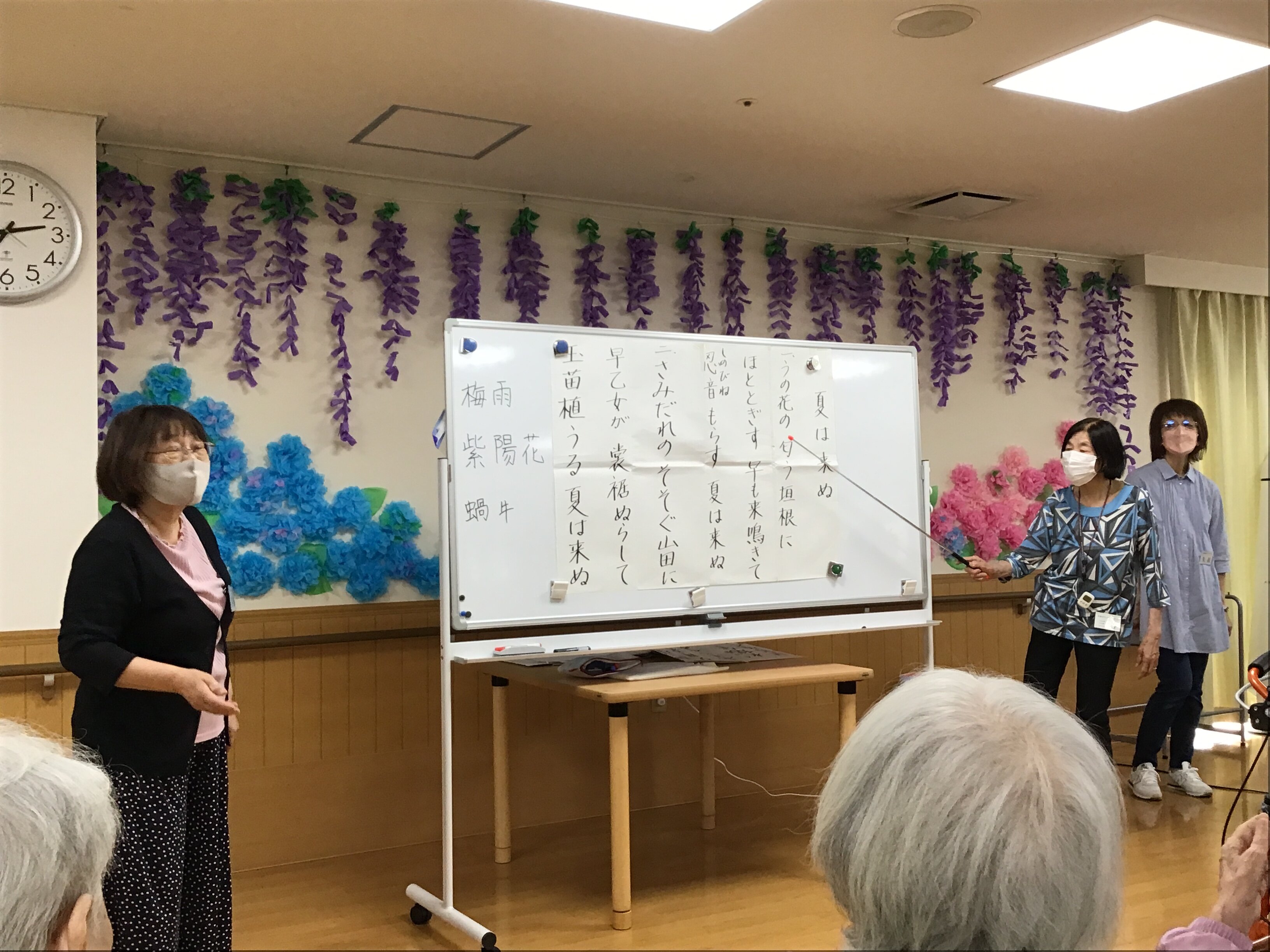 6月ということで、「梅雨」「紫陽花」「蝸牛(カタツムリ)」をテーマに歌を歌いました♪