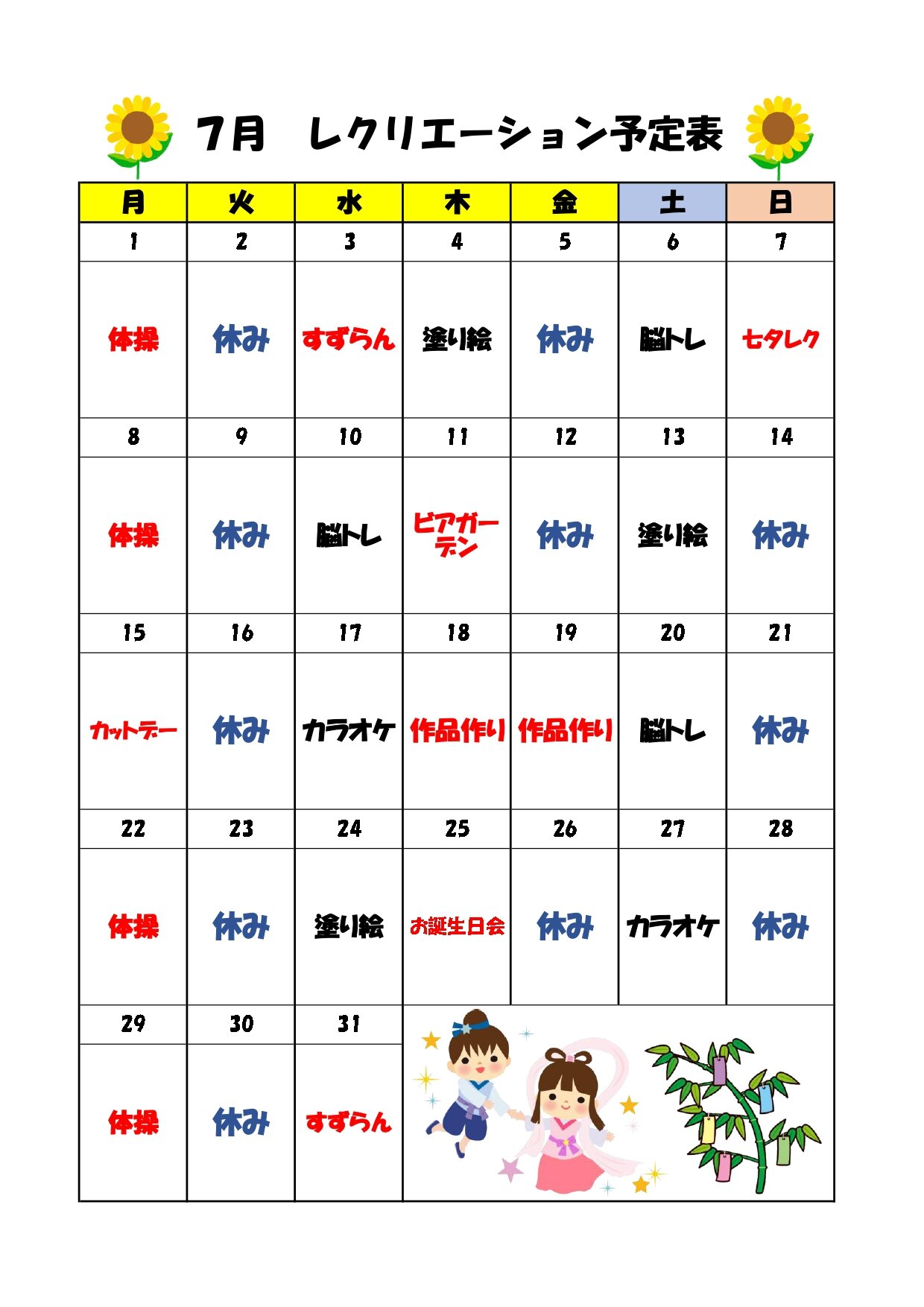 音楽療法すずらんですが、8月分が前倒しとなり、7月は2回となります(^^♪