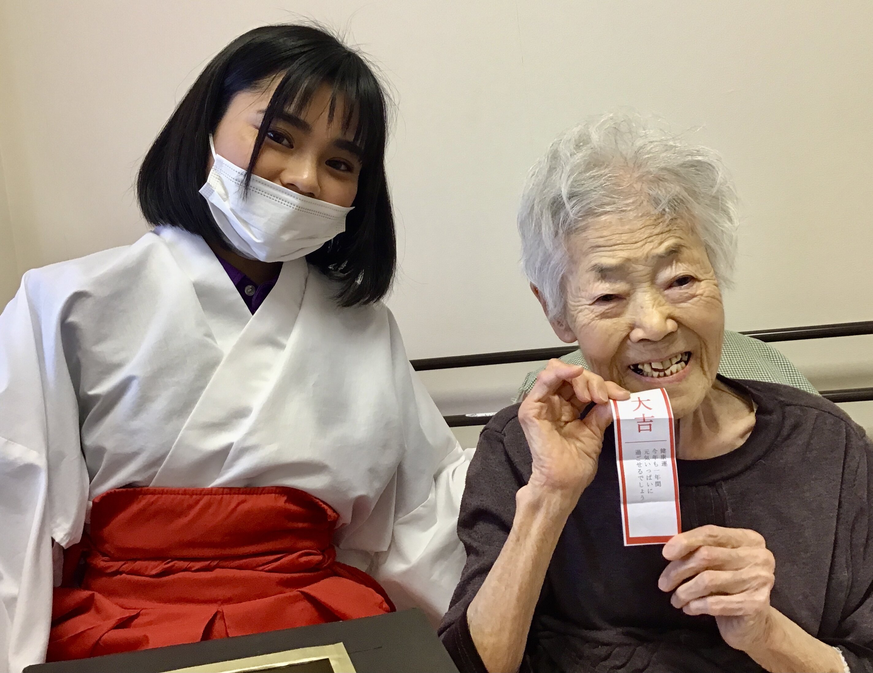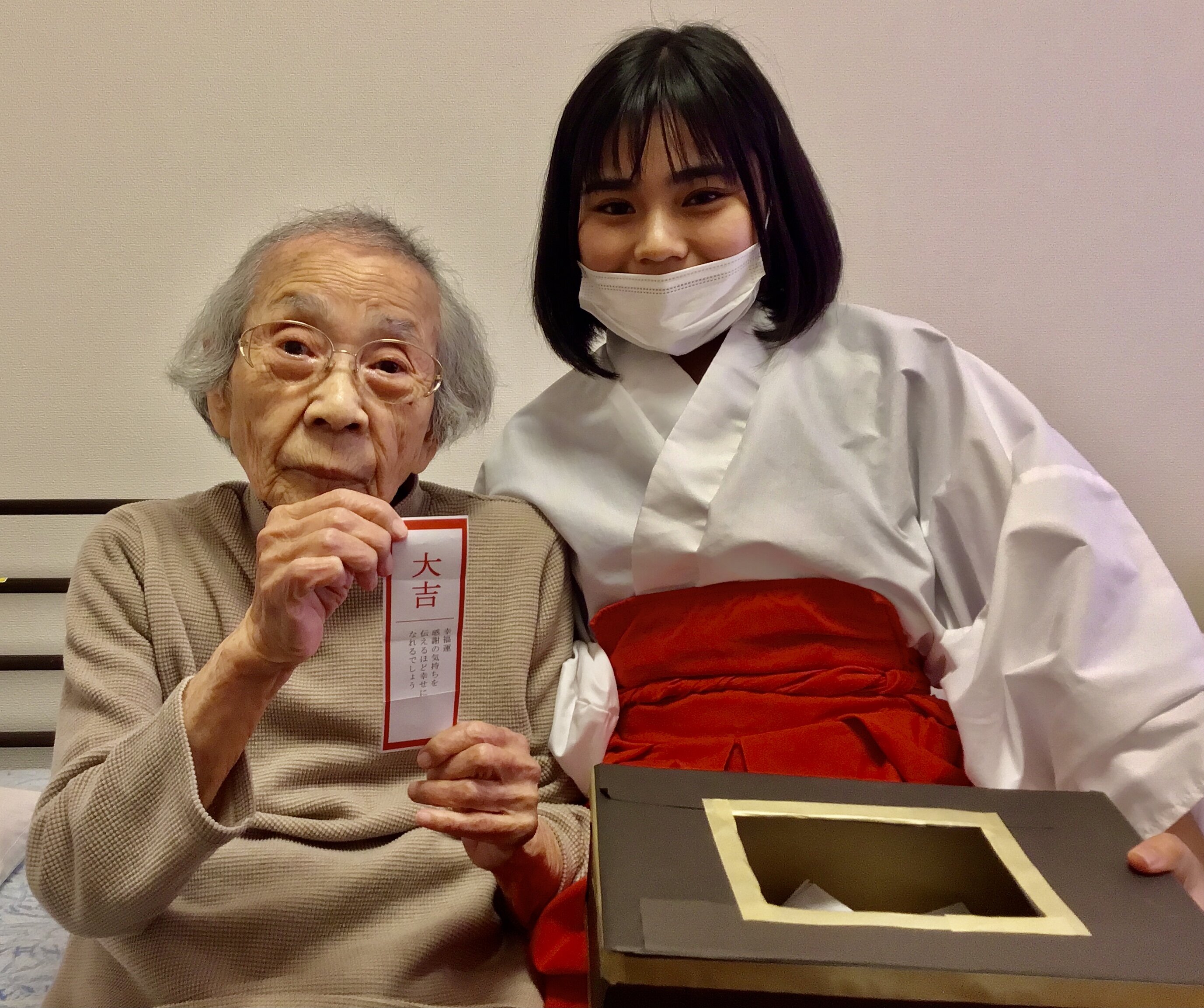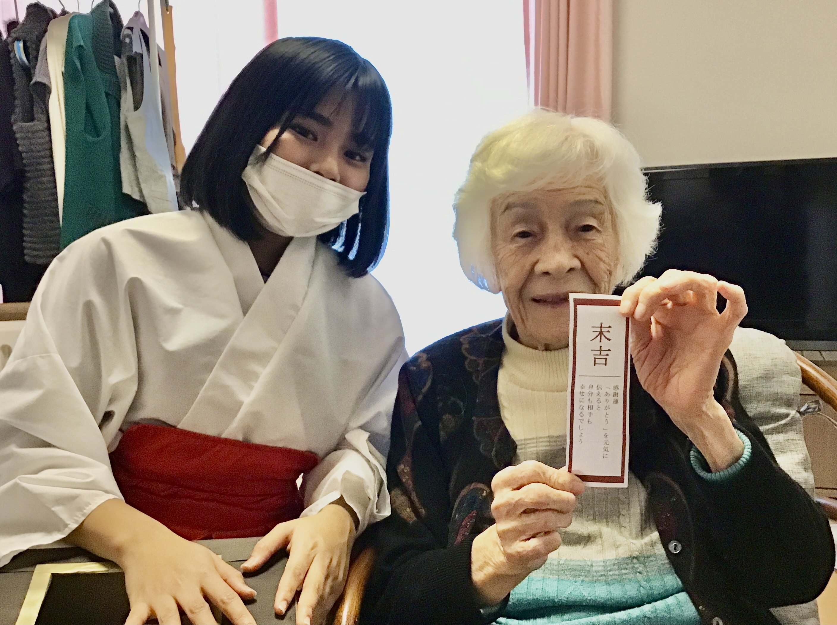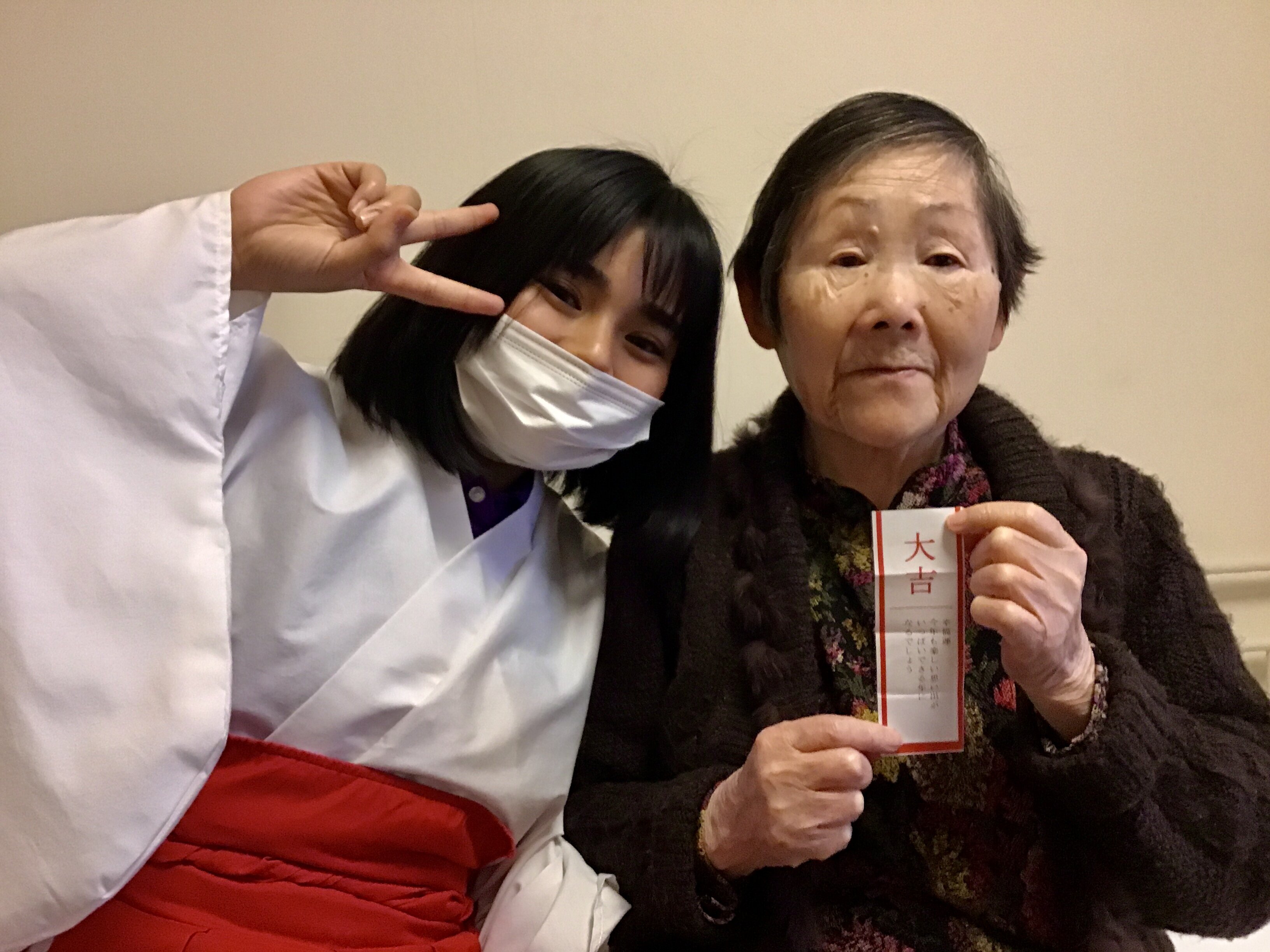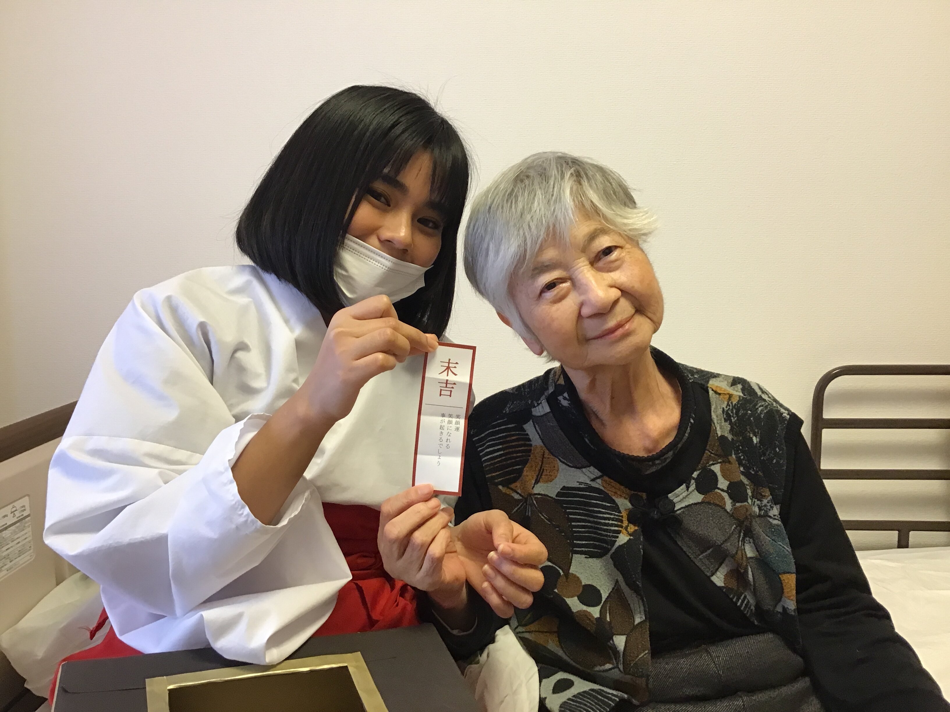 新年を迎えて一番始めのレクリエーションで、ご入居者の皆様に施設手作りのおみくじを引いていただきました!