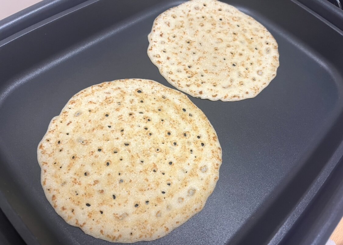 クレープ生地はホットプレートで焼きました!
