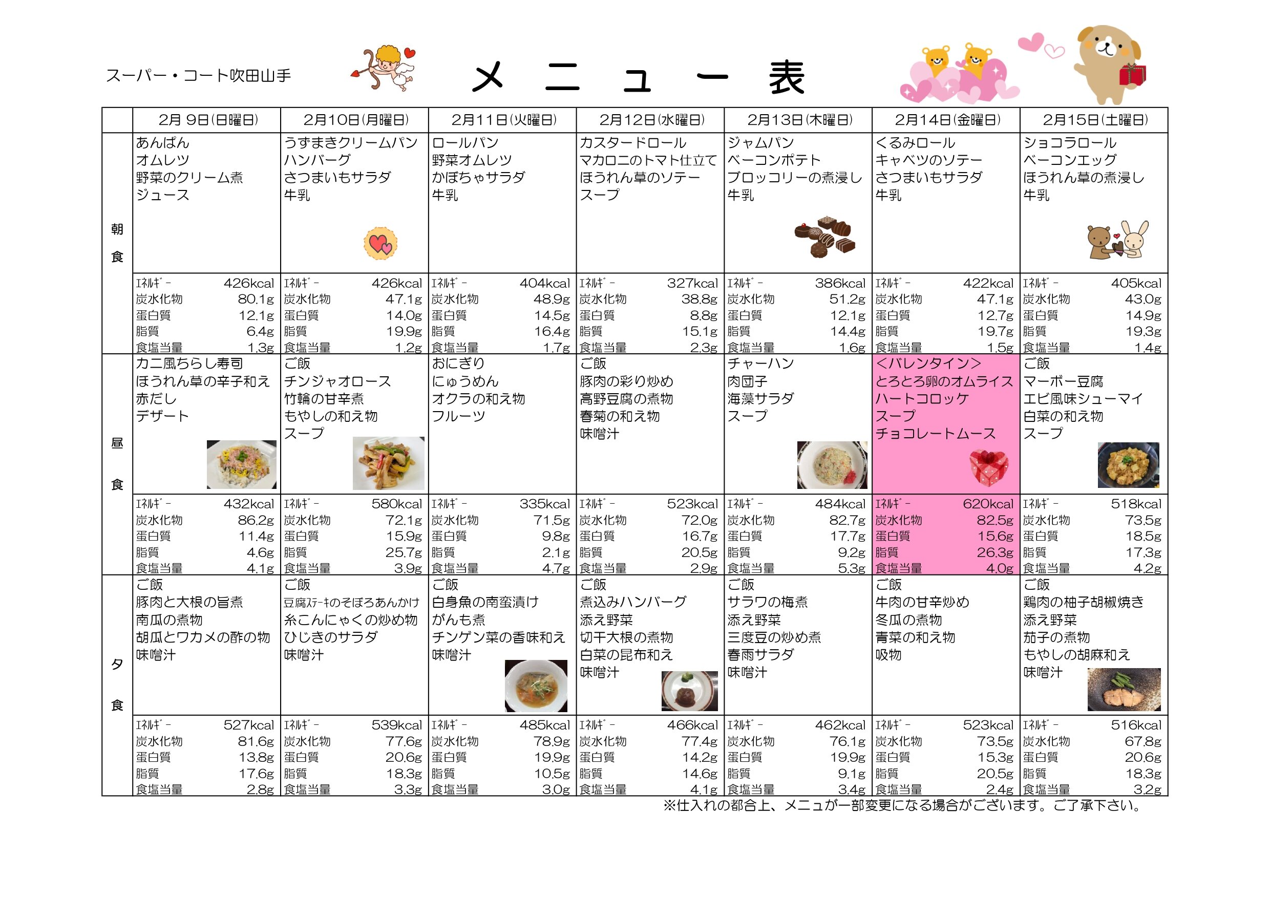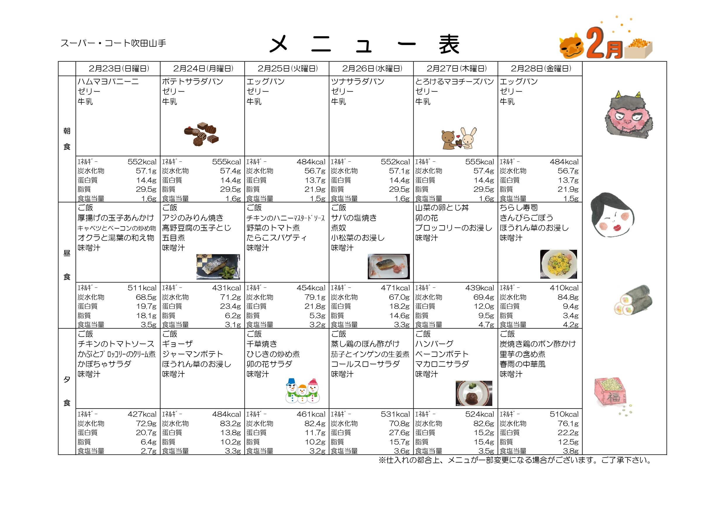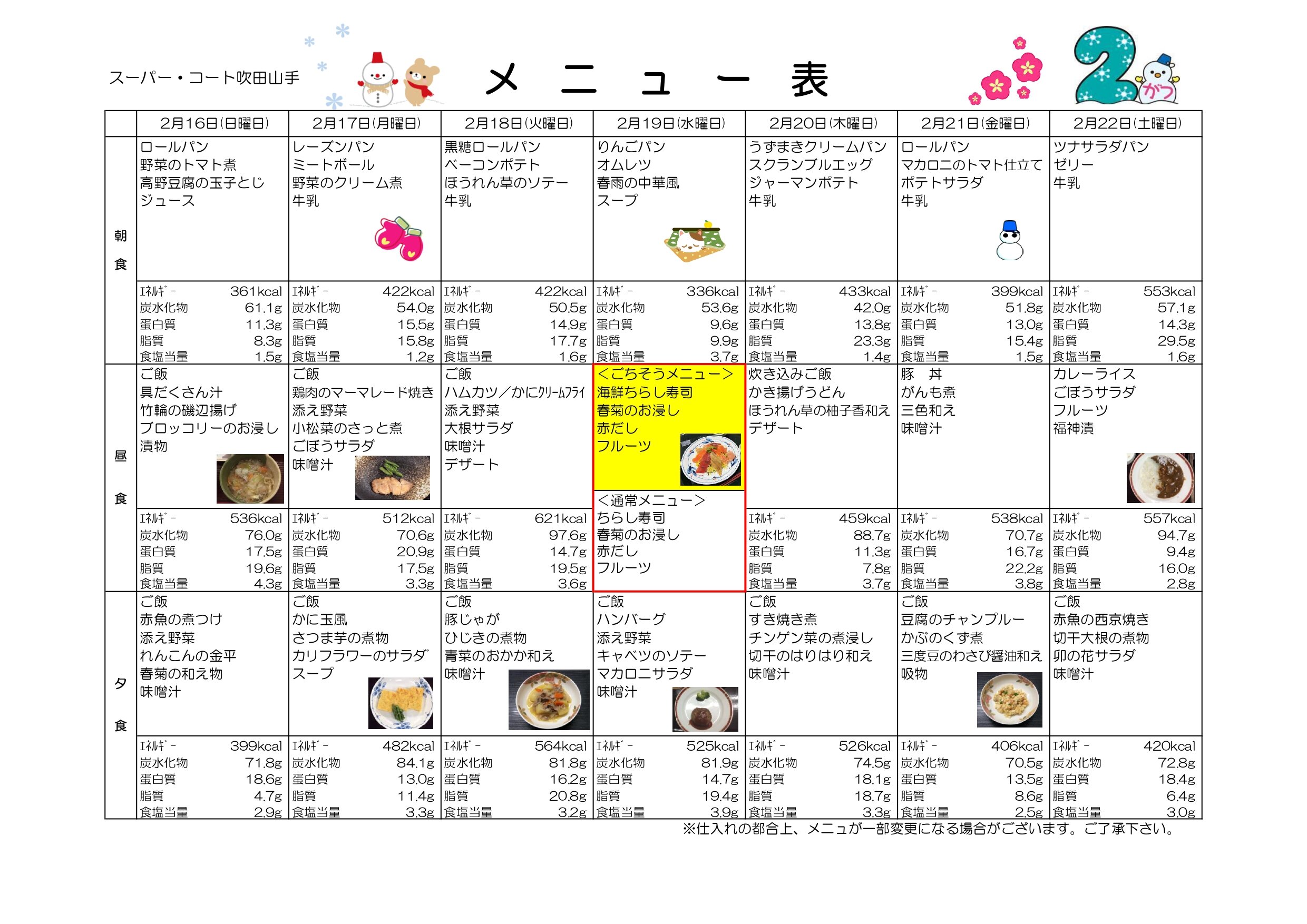 2月16日~2月22日のメニュー表です(*´▽`*)