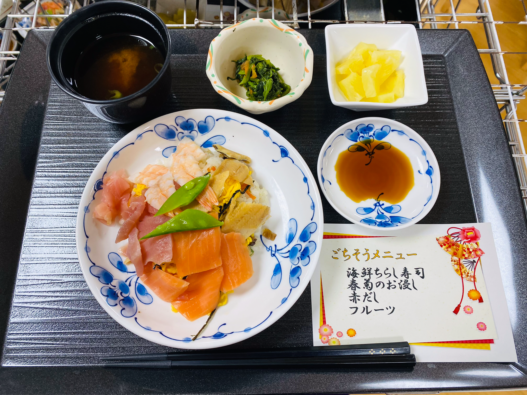 2月19日の昼食は、ごちそうメニュー「海鮮ちらし寿司」でした!