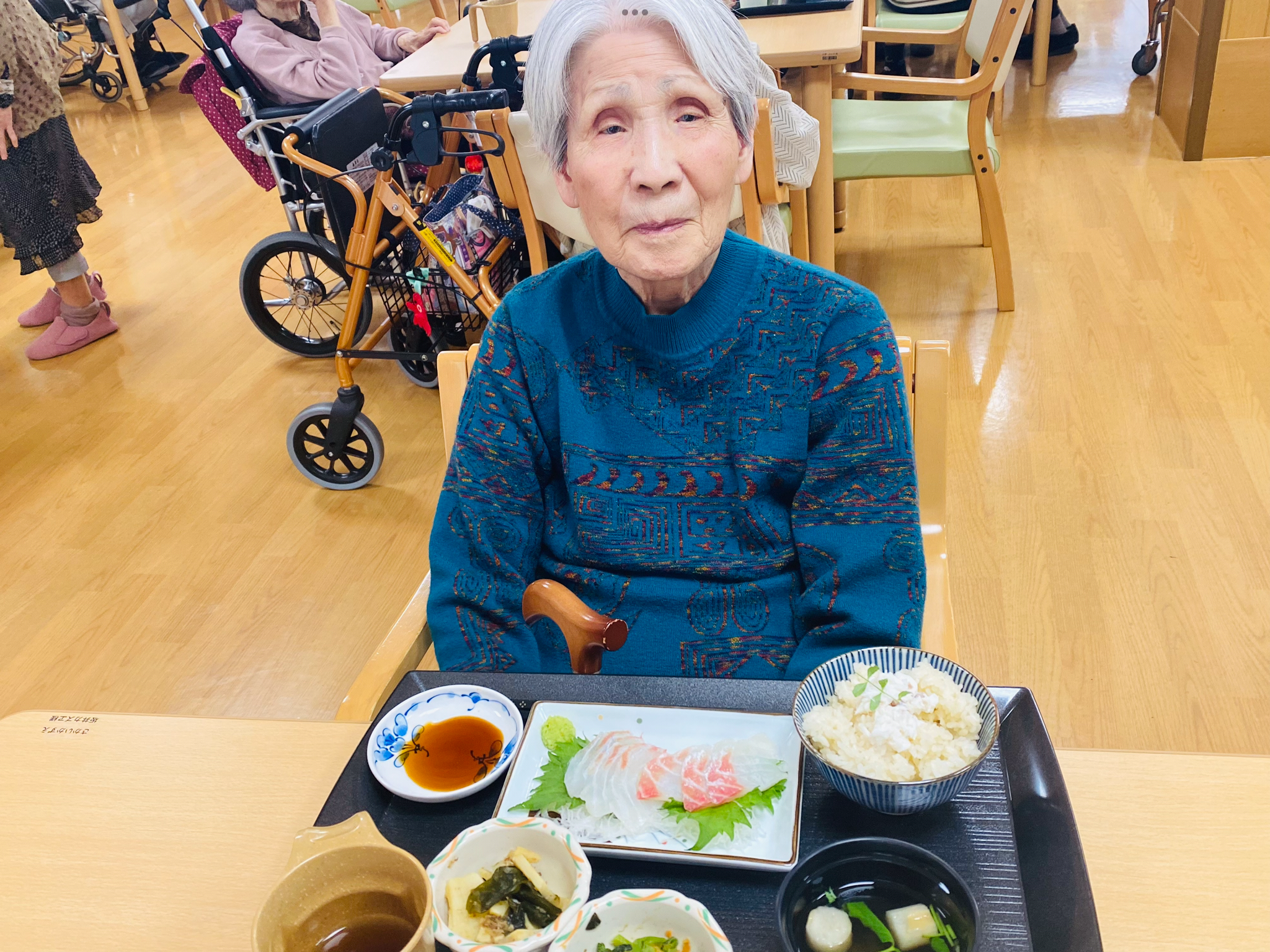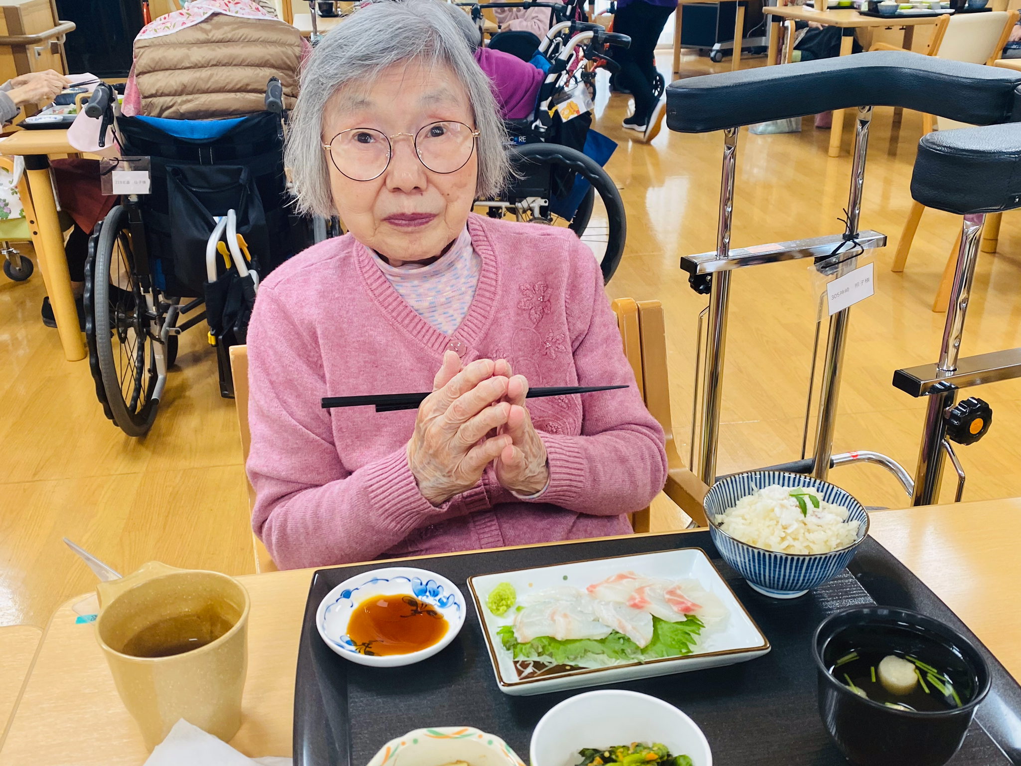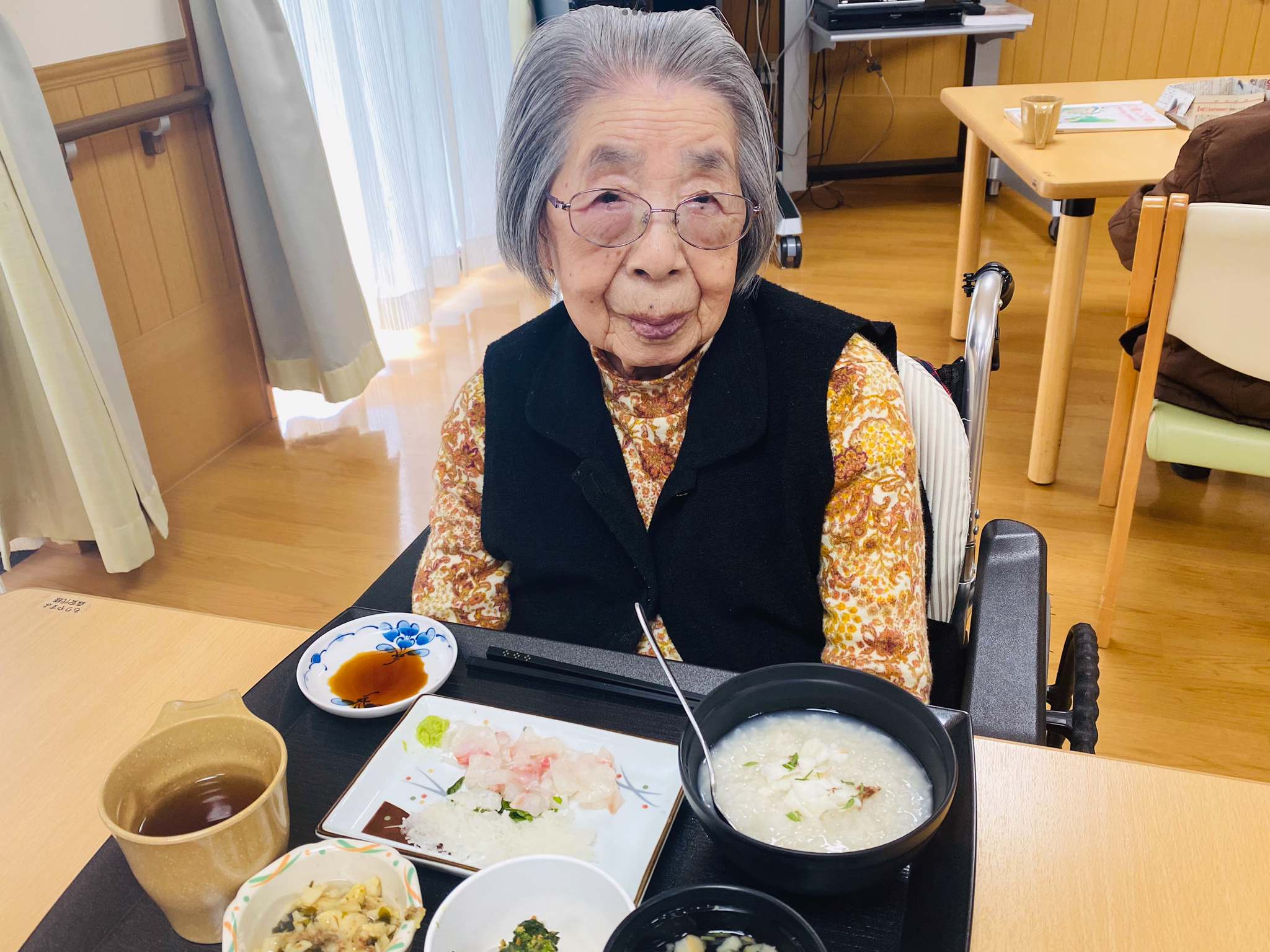 今回職員は着物を着ました!ご入居者にも「綺麗だね」と褒めていただけました(*ノωノ)