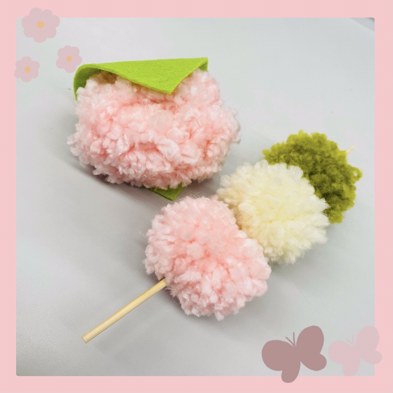 今回は毛糸を使って『三色団子』と『桜餅』の2種類から、