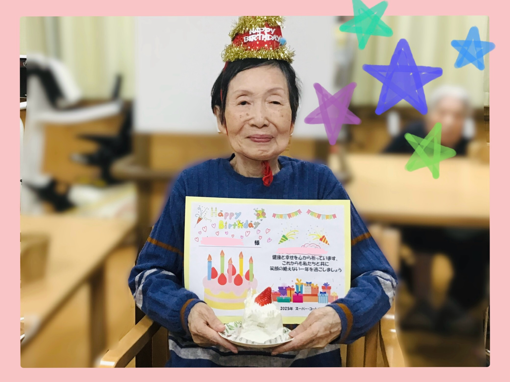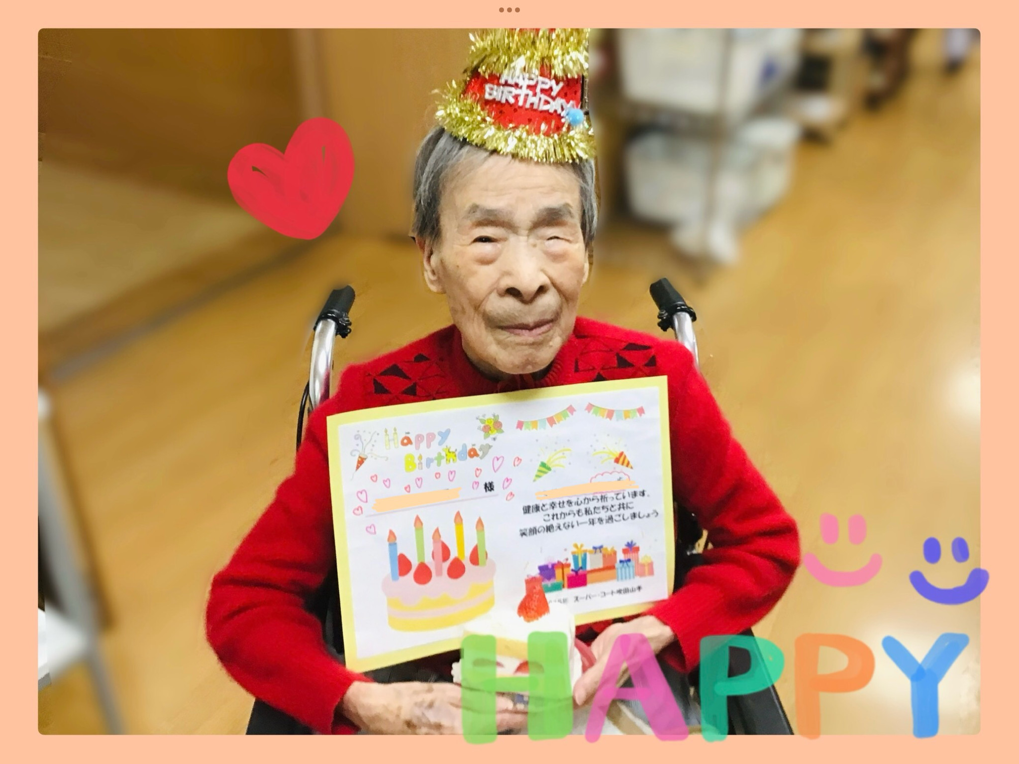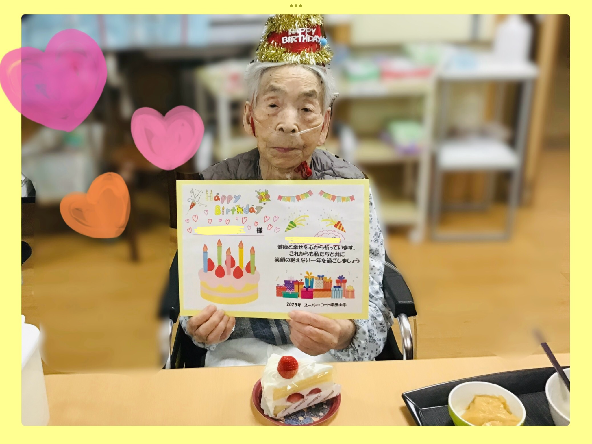 職員から、バースデーカードとケーキをプレゼントさせて頂きました☆