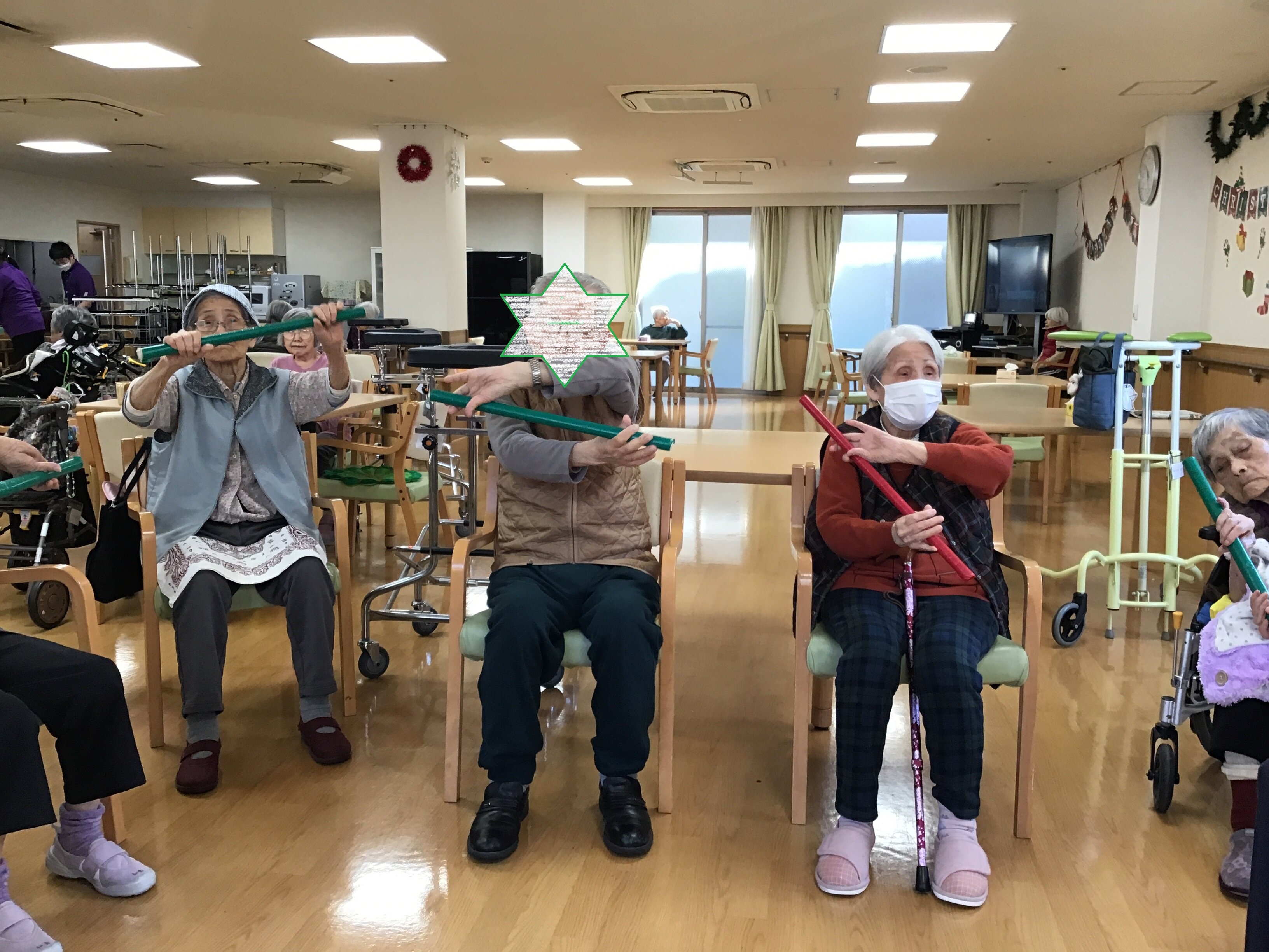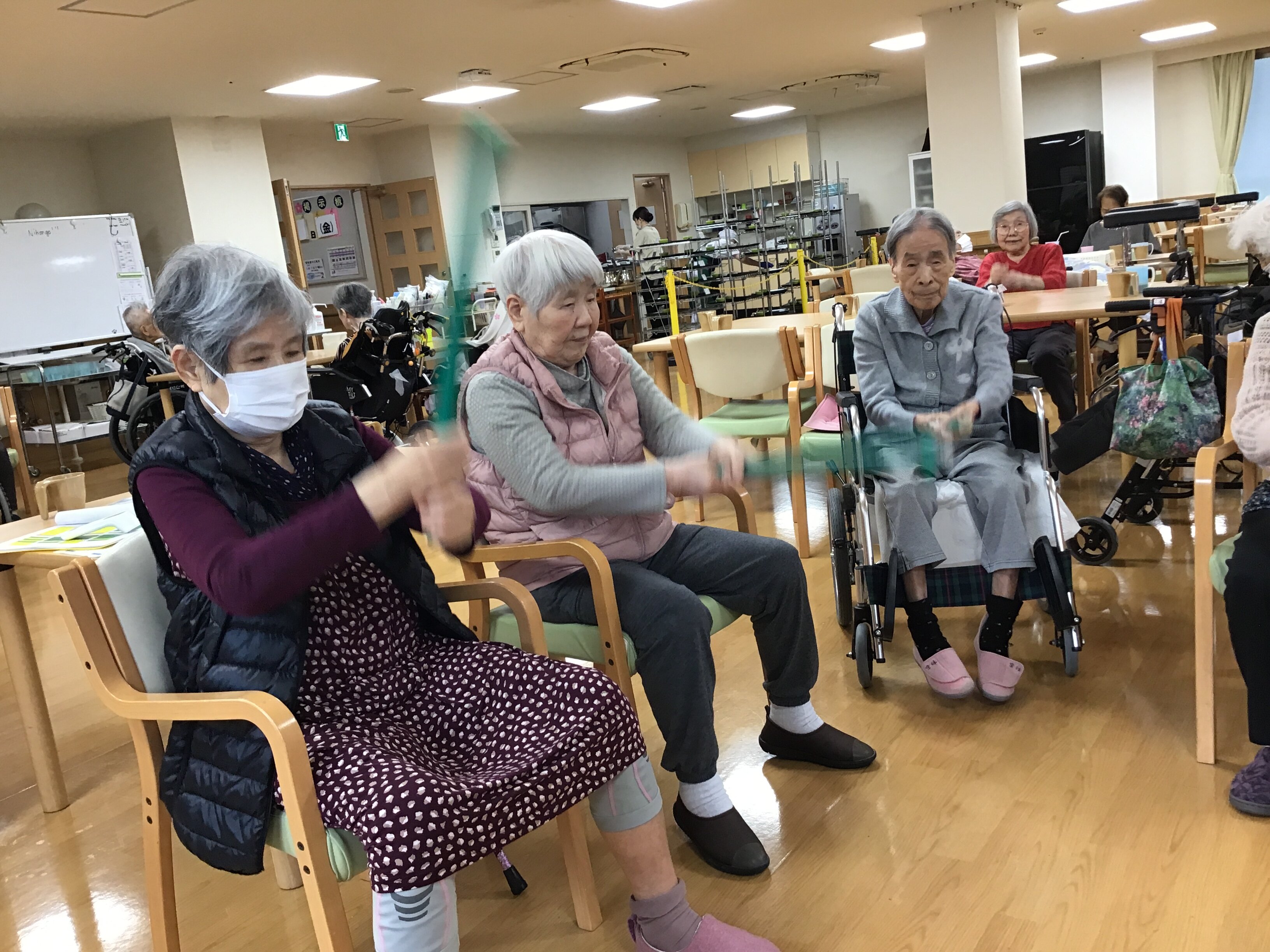 棒体操を行うことによって各関節の動きの制限を和らげていきます。