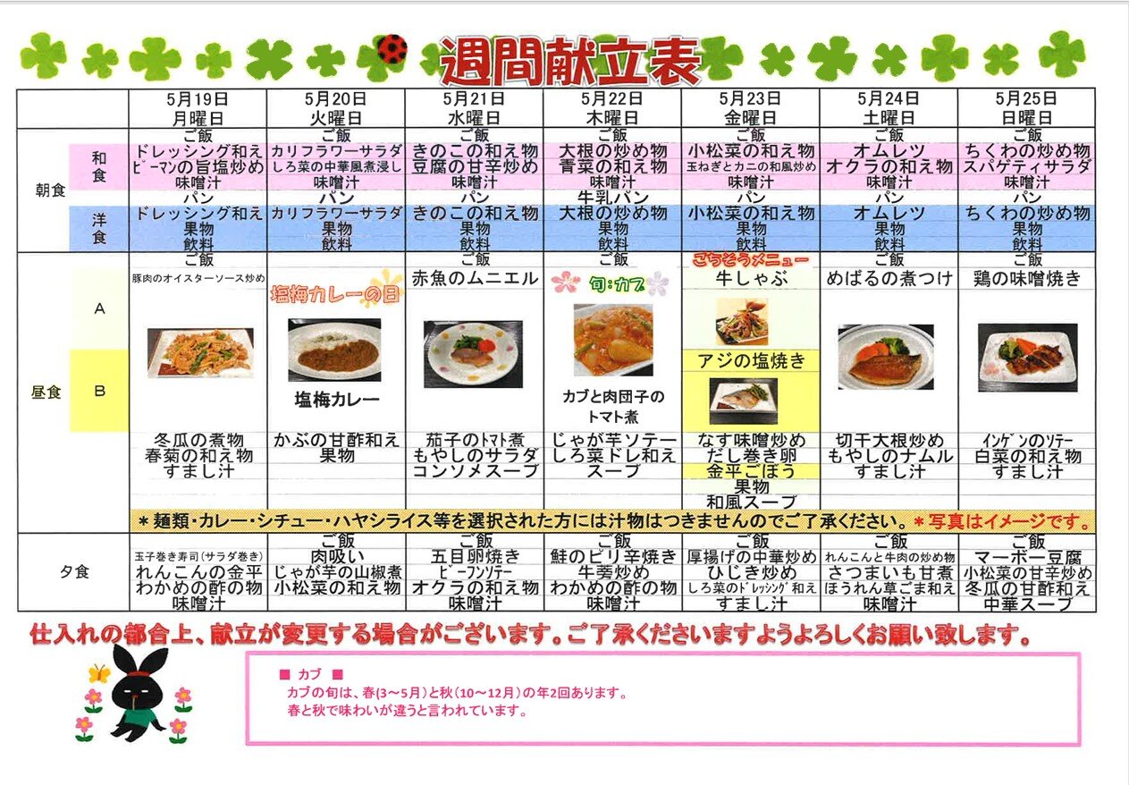 5月19日~5月25日のメニュー表です(*^▽^*)
