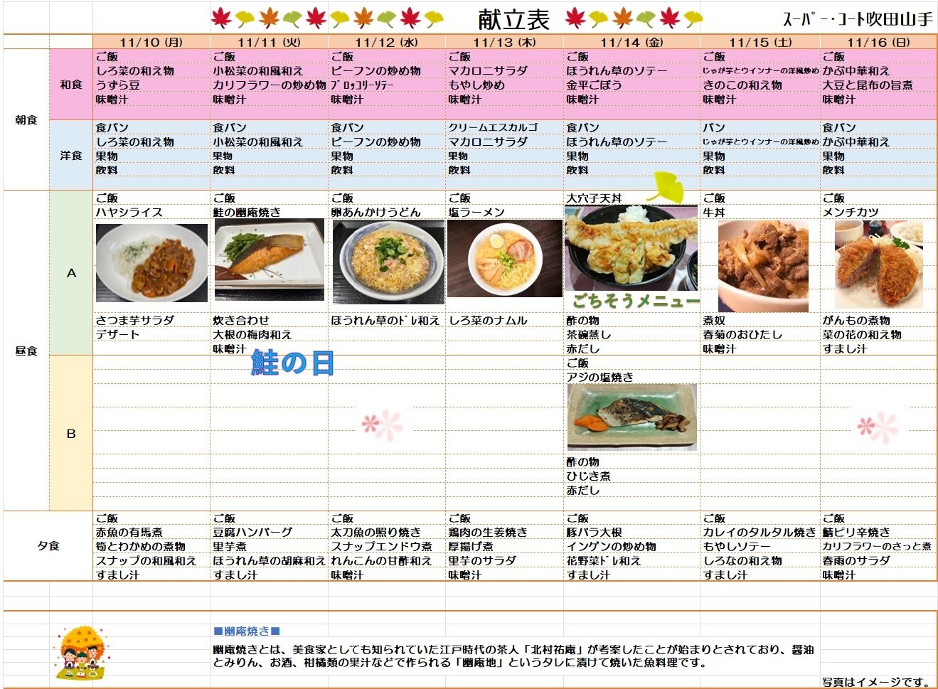 11月10日~11月16日の献立のお知らせです(#^^#)