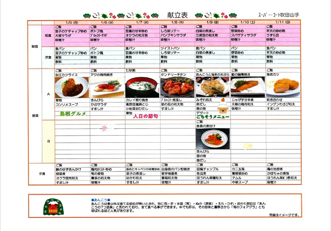 1月5日~1月11日の献立のお知らせです(^_-)-☆