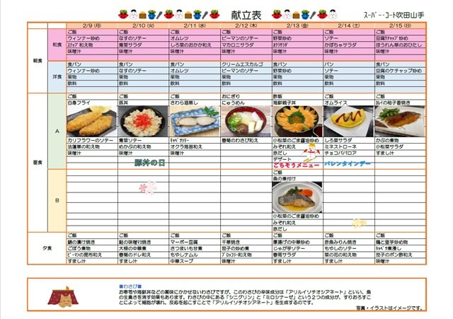 2月9日~2月15日の献立のお知らせです(*^_^*)