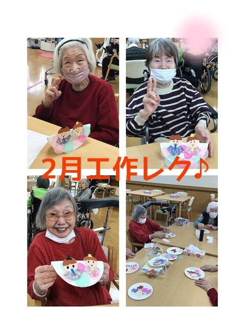 今月の作品作りレクでは、少し先取りして3月の桃の節句に向けた「雛人形」を作成しました。