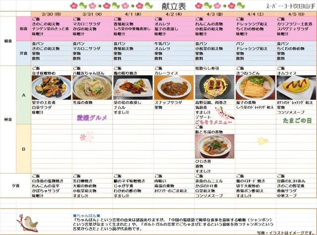 3月30日~4月5日の献立のお知らせです(*^_^*)