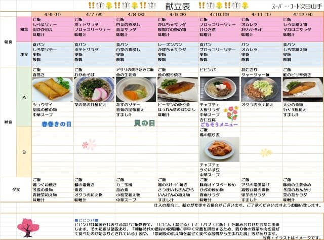 4月6日~4月12日の献立のお知らせです(*^_^*)