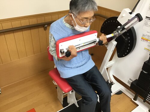 そこでご入居者の体幹の筋力を鍛えるために、こちらのトーソ(腹筋マシン)が大変活躍してくれてます。