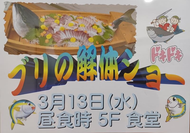 3月13日(水)、3月の月祭でブリの解体ショーを開催しました >゜))彡