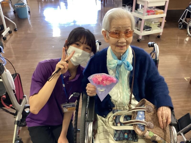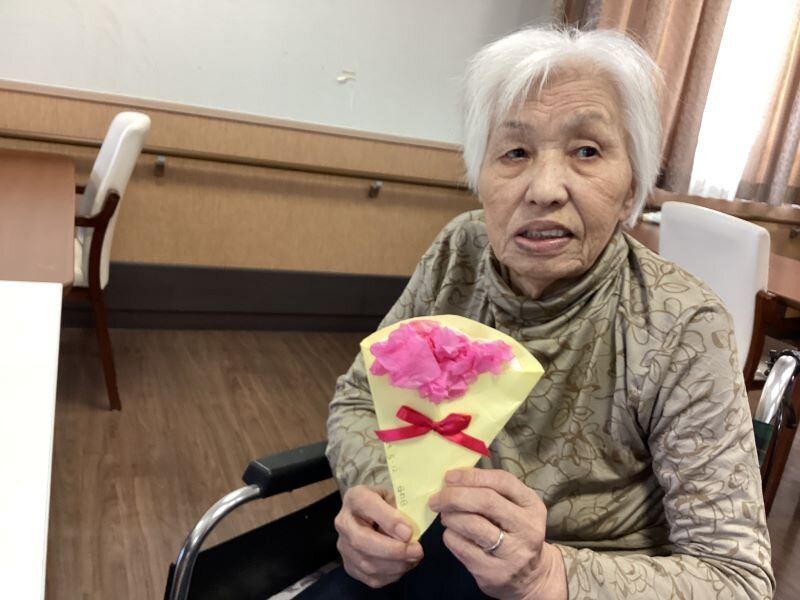 女性のご入居者に職員手作りのカーネーションを贈らせて頂きました(^^♪
