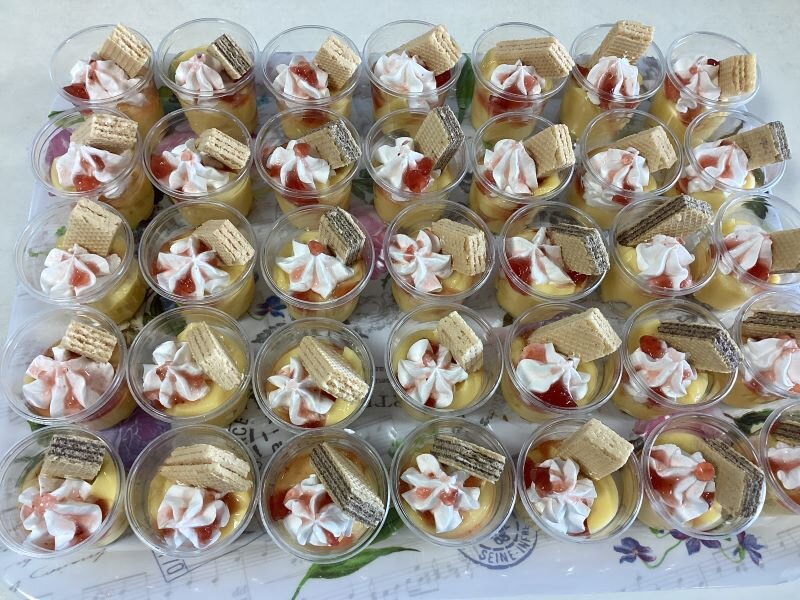 職員が手際よく、せっせと約60個の手作りプリンパフェを作ってくれました(^^♪