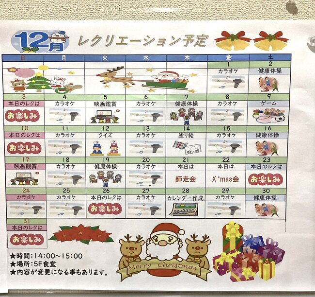 今回は12月に開催予定のレクリエーションのご紹介をさせていただきます♪