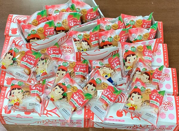 たくさん笑われた後は、施設近くの不二家さんで『ペコちゃんのほっぺ』をこれでもかというぐらい