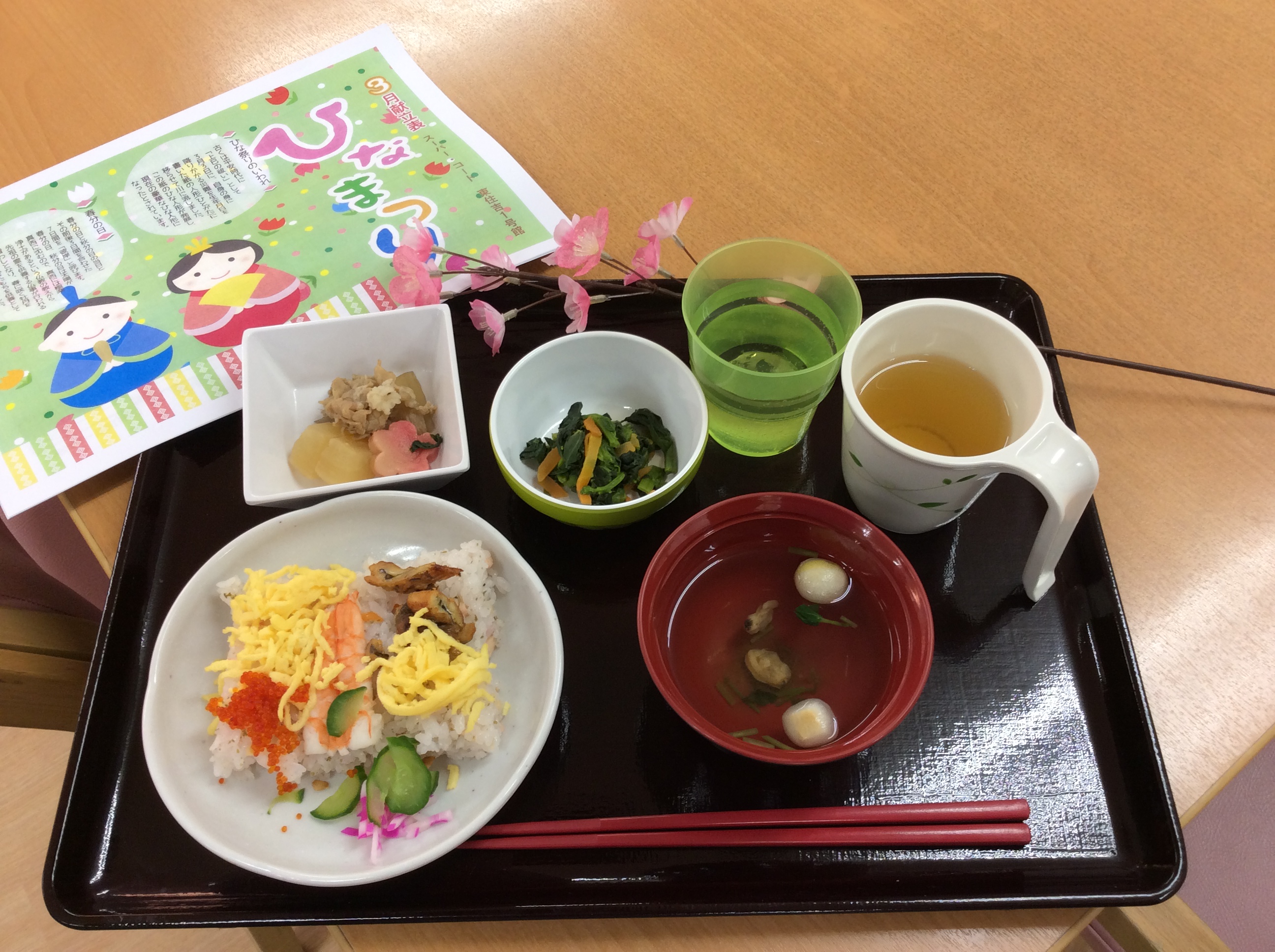 昼食のメニューは雛祭りと言う事でちらし寿司でした(^^)